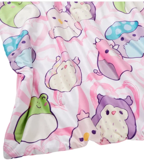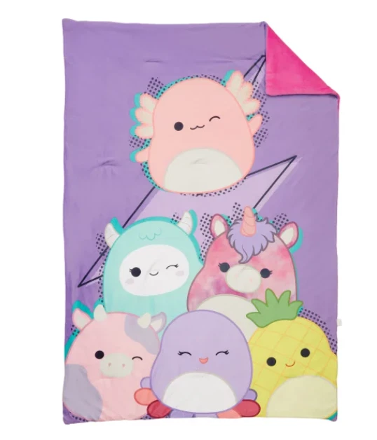 Our Snuggle™ throw was designed to have the super soft feel you get from the original Squishmallows plush. These Squishmallow throws feature patterns of iconic Squishmallows characters. They are super squishy and very snuggly. Enjoy the warmth and character they will bring to your home. Features : Super soft & squishy Vibrant printed designs of favorite characters Machine washable Made in : China Content : Shell: 95% Polyester / 5% Spandex Fill: 100% Polyester Dimensions : 50 in. x 70 in. (127 cm x 177 cm) Care Instructions : Machine wash cold separately, gentle cycle Use only non-chlorine bleach, when needed Tumble dry separately on low setting Remove promptly Do not iron. OUR POLICY We sell ONLY Authentic items. We do not sell fake or counterfeit. SHIPPING We ship your orders within 1-2 business days using standard shipping service. Delivery will take 1-5 business days (usually much faster), depending on the purchased item and location. RETURNS Returns are accepted within 30 days of the item being delivered. We must be notified of an incorrect, damaged, or defective shipment within three (3) business days from the date of delivery. Please contact us before any returns. ALL returns MUST include a Label provided by us! All returns are subject to a 20% restocking fee . The item must be returned in the same condition as it was received (including the original packaging).