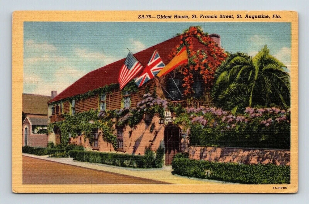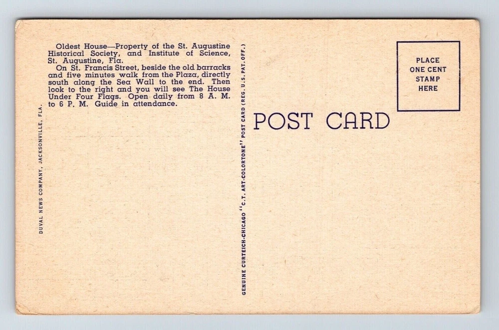 St Augustine Florida Oldest House Historic Landmark Front View Linen Postcard You will receive the exact postcard in the picture. We use a high quality scanner to capture pictures of the front and back for every postcard we have listed. Postcards will be in the condition as shown in the pictures. We ship Mon-Fri. We also offer combined shipping discounts or free shipping. If we have shipping on your listing you can buy as many additional postcards as you want and they will ship for free after the fist postage is paid. If you select first class shipping and pay the extra your postcard will be shipping as a package with extra protection. If you choose free shipping or $1.50 shipping your postcard will be shipped in a standard envelope with soft plastic sleeve and do not bend written on the envelope. Orders of 15 or more cards or with single cards over $20 in them will automatically be upgraded to first class and at least a photo mailer. If you have any questions feel free to ask. We are willing to consider reasonable offers and we offer discounts on orders of more than one card. Thank You _gsrx_vers_1436 (GS 9.0.5 (1436)) _gsrx_vers_1608 (GS 9.5 (1608)) _gsrx_vers_1653 (GS 9.7.5 (1653))
