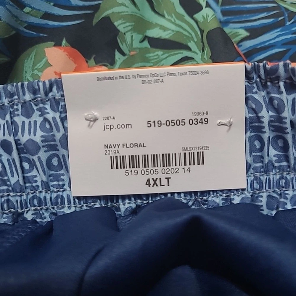 St. John's Bay Men Shorts Swim Trunks Floral Drawstring Elastic Waist 4XLT NWT MSRP $50 Shell: 100% Polyester Lining: 100% Polyester Waist: 50 Inches Rise: 14.5 Inches Inseam: 11 Inches