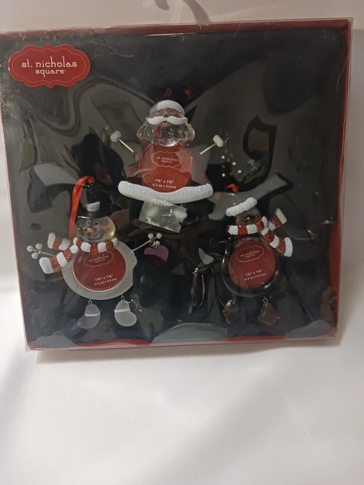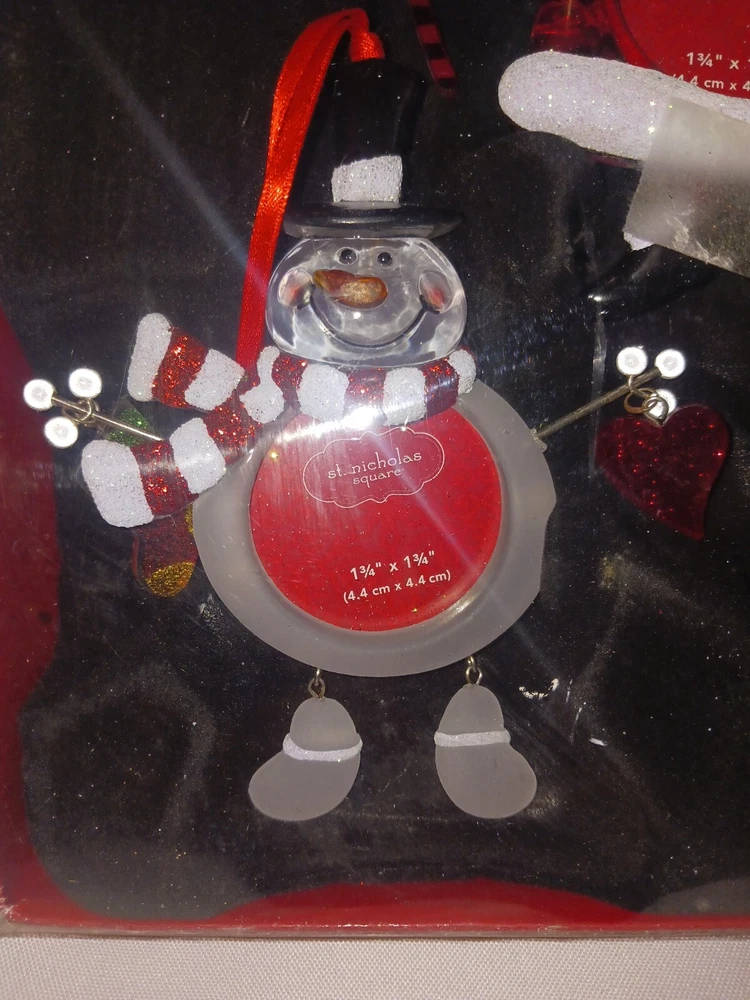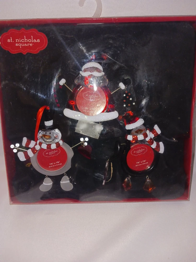 St. Nicholas Square Ornament Frames Set Of 3 Snowman Christmas Tree Mantle Decor