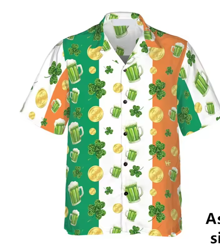 St. Patrick’s Day Hawaiian Shirt Shamrock Green Tropical Button Up