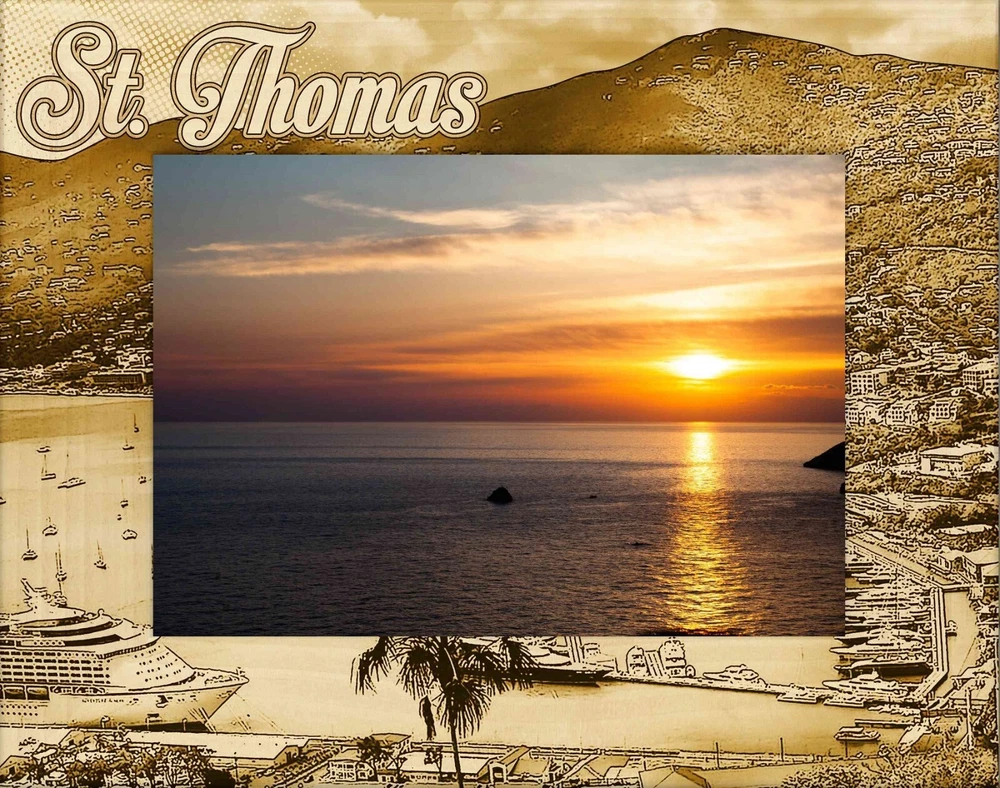 You are buying: St. Thomas Laser Engraved Wood Picture Frame Landscape (4 x 6) Picture Frame is made from Wood Picture Frame Measures 8.50 x 6.50 inches Picture Frame will hold a 4 x 6 Picture This item is Made in the USA Frames are new FREE SHIPPING to U.S. Customers Check out our ebay store where we have all the state magnets, plus lots of other items available. If you need larger quantities than what we have listed. Let us know and we will try to accommodate you.