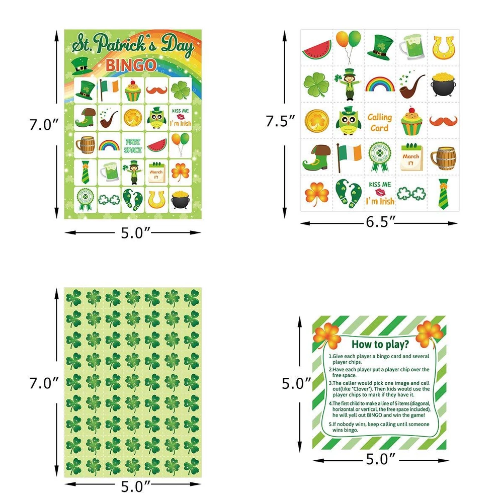 St.Patrick’s Day Bingo Game for Kids 24 Players Green Shamrock Party Game Sup...