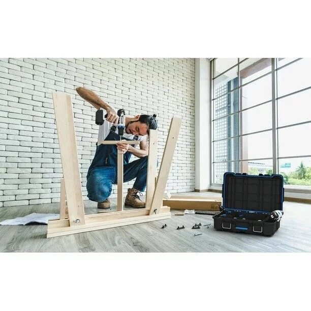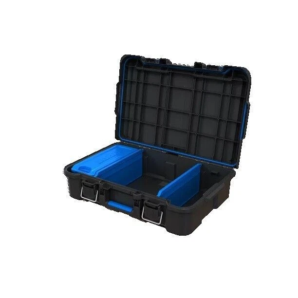 Welcome to My Stores, Happy Shopping. Hart Stack Modular Storage System Tool Box Blue Small Parts Case And Dividers Description Are you looking for a power tool case that offers custom protection for your power tools or hand tools: Hart knows better than anyone that power tools and hand tools come in all shapes and sizes. The Hart suitcase style tool box with the blue tool and parts organizer can be customized by adding foam filling inside the case to match the exact shape of your specific parts, tools, blades, markers, brushes, paints, or whatever else you want held in place (foam not included). Keeping your tools in great shape has never been more personal! Hart Stack System Power Tool Case with Small Tool Blue Internal Case with Blue Dividers, Mobile Tool Storage and Organization, Black with Blue Accents Features: Ideal case for weekend warriors, home DIY-ers and serious crafters Serves as a Power Tool Case, and allows you to customize foam filling for your specific power tools or accessories (Note: foam is not included in the product) Ergonomic carry handle for convenient portability IP54 seal protects your tools from dust, moisture, and accidental contact with water – making it ideal for outdoor use Durable plastic construction defends contents from dings and knocks Metal latches securely fasten the case at all times, especially when you're on the move The HART Power Tool Case has an opening for you to insert a padlock keeping your belongings safe from theft (lock not included) Internal blue small tool organizer case and dividers keep your hardware and small tools handy. Keep your small parts tidy & handy with a movable organizer case & 2 dividers included. The organizer can either be clipped inside for internal storage or stacked on top of the case for easy access. Can be easily stacked onto any of the storage units within the HART Stack System Load Capacity - 47.5 LBS Specifications Features Removable, removable_internal_compartments:_organizer_and_dividers Manufacturer Part Number 252719 Assembled Product Weight 4.167 lb Manufacturer Keter Color Black Assembled Product Dimensions (L x W x H) 20.67 x 13.50 x 5.79 Inches
