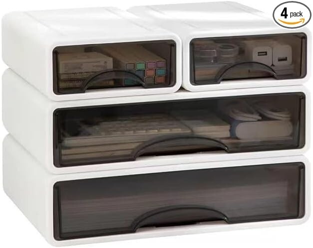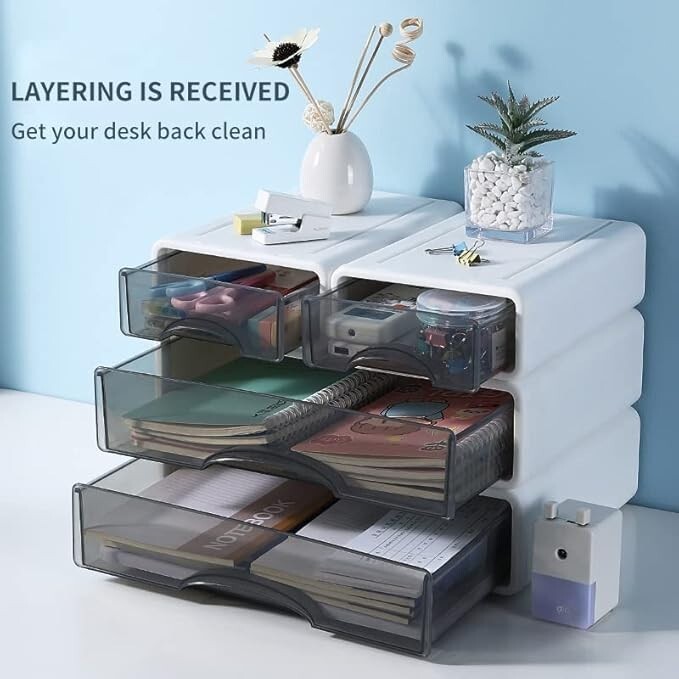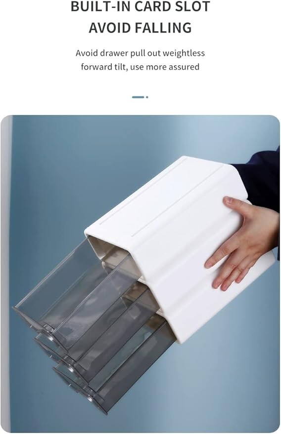 【Freely stackable】In order to fit different scenarios, we designed a card slot at the bottom of each box, you can mix and match according to your preferences 【Detailed description】We designed an anti-slip groove at the bottom of the box, and through the weight ratio design, the center is always kept in the middle, and a hook is designed at the end of the drawer to make the drawer have the function of preventing falling off. 【Multiple usage scenarios】Our products are suitable for appearing anywhere in your home and office, and can be used to store documents, office supplies, jewelry, remote controls, keys and all small items. 【Environmental awareness】We have always attached great importance to ecological environmental protection awareness, and use very environmentally friendly recycled materials for manufacturing. Compared with ordinary plastic materials, we are more solid. 【Design concept】Designed by the winner of the Red Dot Design Award, conveying the concept of minimalist life and improving the quality of life is the original intention we have always followed.