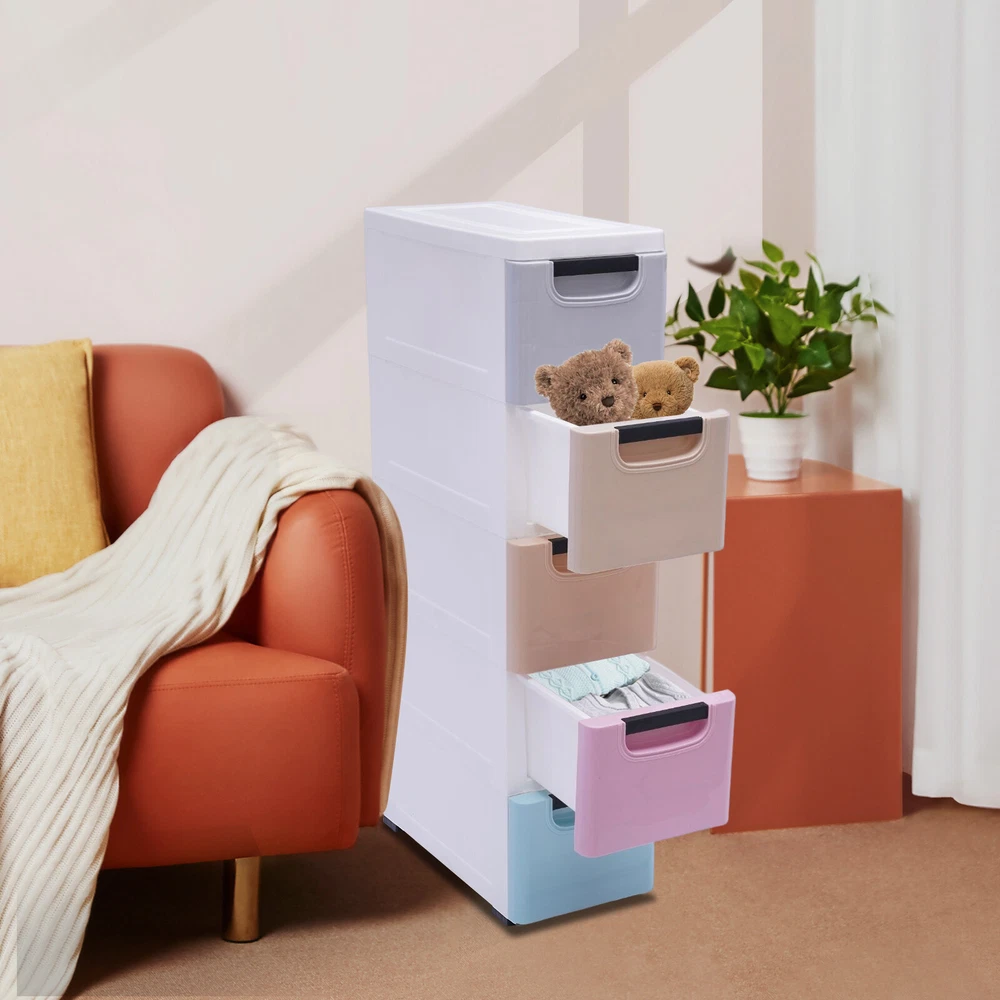 Description Beautiful living starts with organized storage. This storage cabinet with 5 drawers has more space at your disposal. It features a drawer design that can be pulled out smoothly. Different colors are designed to meet your girly heart and make it easier for you to remember and find, giving you a better storage experience. Application It is suitable for storing clothes, towels, toys and some other small items. Specification Material: PP Style: Modern Number of Layers: 5 Color: Orange, Grey, Yellow, Pink, Blue Each Layer Load-bearing Capacity: 7-10kg/15.43-22.05lbs Package Size: 41*40*27cm/16.14*15.75*10.63in Product Size: 20*40*84cm/7.87*15.75*33.07in Gross Weight: 4.12kg/9.08lbs Net Weight: 3.7kg/8.16lbs Stackable Vertical 5 Drawers Storage Cabinet Clothes Storage Box PP Plastic Stackable Plastic Storage Storage Cabinet w/5 Drawers &wheels Application It is suitable for storing clothes, towels, toys and some other small items. Specification Material: PP Style: Modern Number of Layers: 5 Color: Orange, Grey, Yellow, Pink, Blue Each Layer Load-bearing Capacity: 7-10kg/15.43-22.05lbs Package Size: 41*40*27cm/16.14*15.75*10.63in Product Size: 20*40*84cm/7.87*15.75*33.07in Gross Weight: 4.12kg/9.08lbs Net Weight: 3.7kg/8.16lbs Key Features High Stability: The storage cabinet with 5 drawers is designed with a dense frame, so they are more stable and sturdy and not easy to topple over. Large Capacity: It consists of five drawers and its size reaches 7.87*15.75*33.07in. It can meet almost all your personal belongings storage needs. Each drawer can carry 15.43-22.05lbs of weight . Space-saving: The storage cabinet with 5 drawers fit nicely into the corners of your walls and closets, sliding effortlessly into seemingly useless tight spaces next to cabinets or refrigerators. Selected Material: It is made of high-quality PP material , so it is odorless and safe to use even for babies or sensitive people. Its excellent impact resistance makes this product sturdy and durable. Compartmentalized Design: You can keep clothes, towels and other items in separate dedicated drawers to reduce cross-contamination. The different color partition design is more convenient and easier to find. Easy to Use: The storage cabinet with 5 drawers features a stacking design that allows you to combine and disassemble them as you need. Therefore, it is more convenient and applicable to a wider range than the one-piece type. Flexible Movement: The bottom of the 5-drawer chest is equipped with four wheels , so you can easily move it from the living room to the bedroom. Easy to Clean: It is made of stain-resistant PP material. When it has stains on its surface, you only need to rinse it with water and then wipe it with a soft cloth to make it look brand new. Details Thicker Top Plate: It has a thicker top plate, which gives it a stronger load-bearing capacity. Therefore, you can put cups, small potted plants and other miscellaneous things on the top plate. Snap: The bottom of each drawer is designed with snaps to prevent the drawer from slipping when you pull it, which is very thoughtful. Drawer Handle: Each drawer is designed with a recessed handle for easy access to items. The rounded handle protects hands from scratches and is more aesthetically pleasing. Smooth Wheels: The four wheels at the bottom are made of high-quality PP, so they are smooth and delicate. The smooth wheels run with little noise, providing you with a quiet experience. Rounded Corners: It has rounded edges, which can effectively prevent you from accidentally touching and hurting yourself. Package Included 1* Storage Cabinet 5* Drawers Notes Please allow the slight color difference caused by the shooting light and 1-3cm error due to manual measurement, and make sure you do not mind before you order. Payment Delivery details Terms of sales About us Contact us Payment We accept ebay payment 。 Fees such as import duties, taxes are not included in the item price or shipping costs. These charges are the buyer's responsibility. Delivery details Shipping: 2-9 working days to: USA Terms of sales We maintain high standards of excellence and strive for hundred percent customer satisfaction. Feedback is very important to us. We hope that you contact us immediately before you give neutral or negative feedback, so that we can address your concerns. It is impossible to address issues if we do not know about them! About us Your satis faction is our ultimate goal. We work hard to earn your trust and future business. Our certified technicians have tested each item before shipping. The unit comes with 1 year limited warranty on all manufacturing defects. a) If you receive a defective item, you may return it or ask for a discount. Please contact us within 14 days after you receive the package. b) What you returned must be intact and in its original packaging as re? u. Customer is responsible for shipping costs of the returned item. c) We will cover the cost of shipping back t with the shipping rate indicated in the registration page. We will send you a new unit or refund the full payment you paid. Thank you. Contact us Business Hour Business Hour: Monday To Friday: 8:30 AM to 5:00 PM (Beijing China time) Due to time zones, our reply to your questions may not be immediately. But within above working time, we will reply your email within 24 hours. If it's non-workdays, please kindly be patient and wait till Monday. Please contact us with ebay message. Please feel free to contact us if you have any questions. Monday To Friday: 8:30 AM to 5:00 PM (Beijing China time) Due to time zones, our reply to your questions may not be immediately. But within above working time, we will reply your email within 24 hours. If it's non-workdays, please kindly be patient and wait till Monday. Please contact us with ebay message. Please feel free to contact us if you have any questions. Brand Unbranded Item Height 33in Item Length 15in Item Width 7in Type Decorative Storage Box Mater
