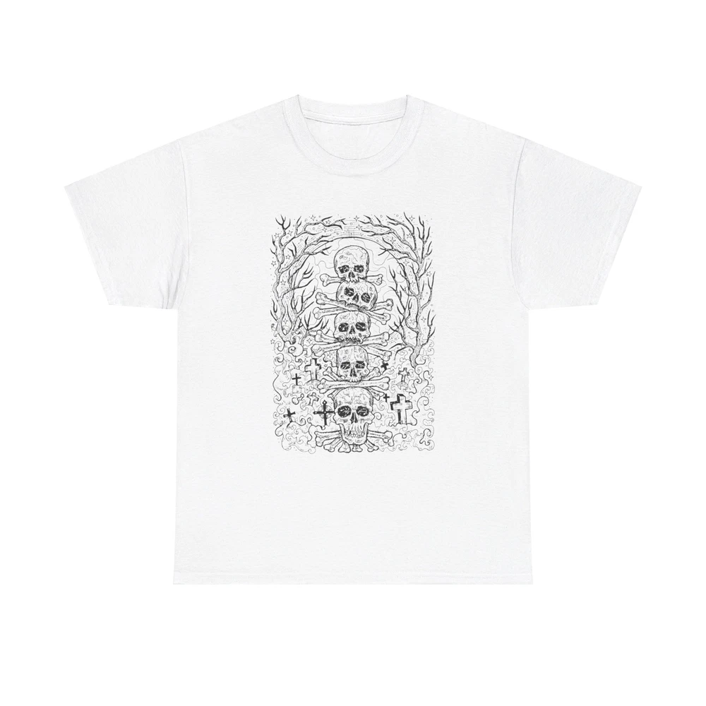 Stacked Skulls Gothic Graphic T-Shirt - cool vintage death morbid sinister dark