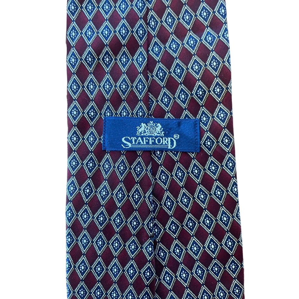 Stafford All Silk USA-Made Necktie in Red Blue Geometric Formal Pattern