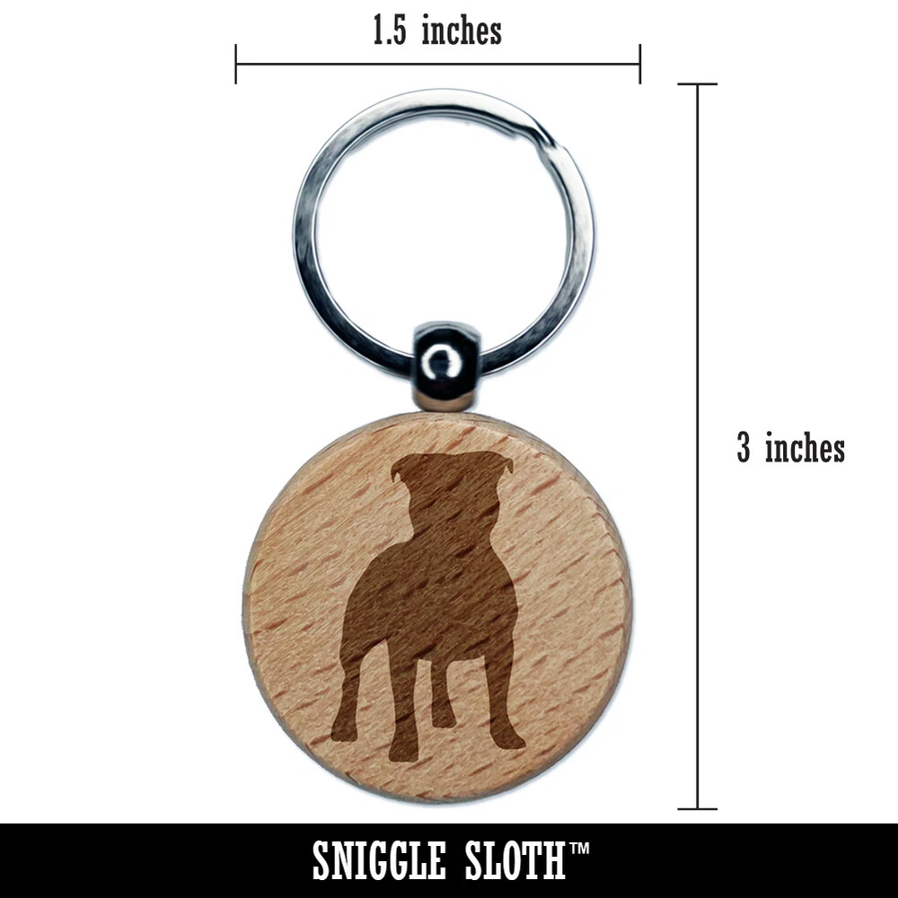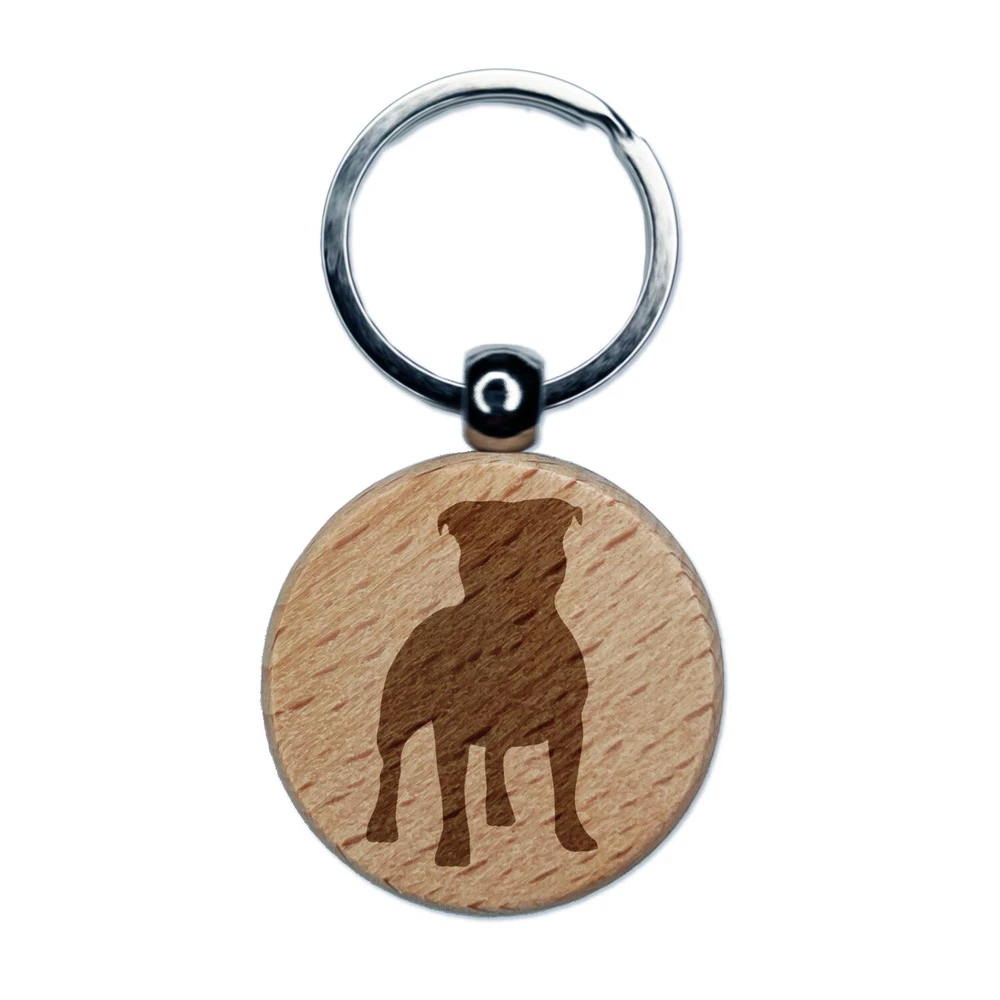 Staffordshire Bull Terrier Dog Solid Engraved Wood Round Keychain Tag Charm