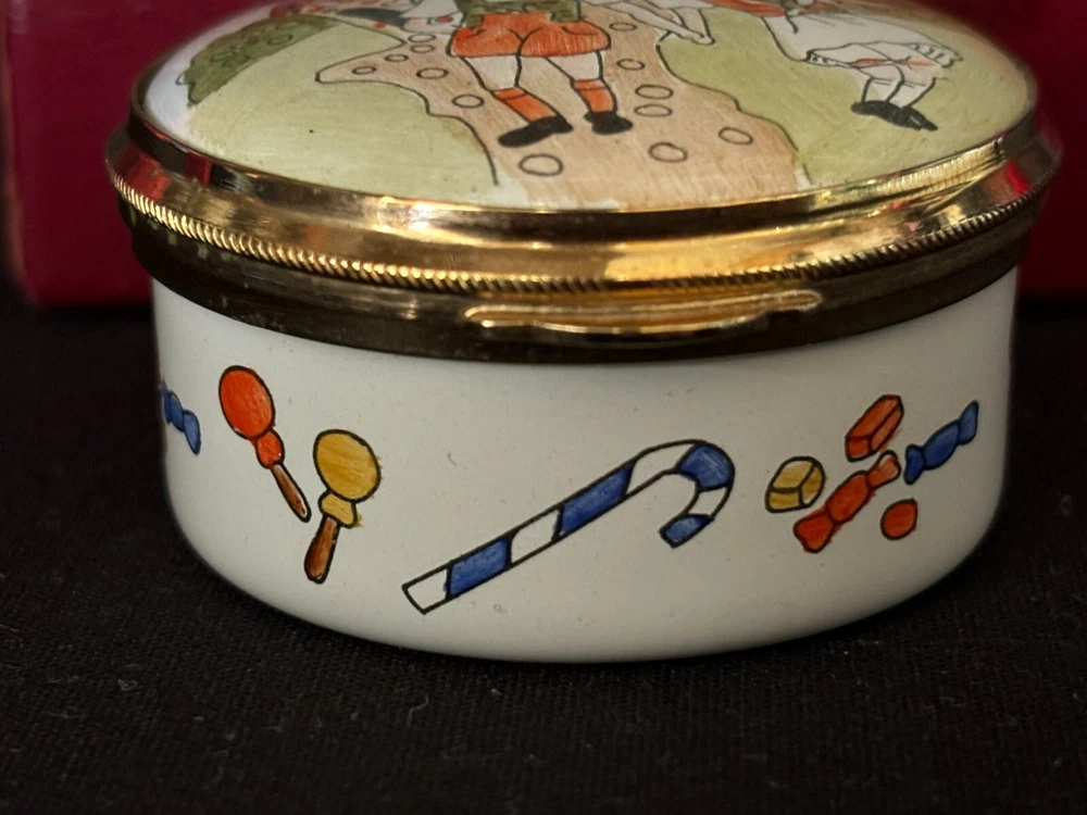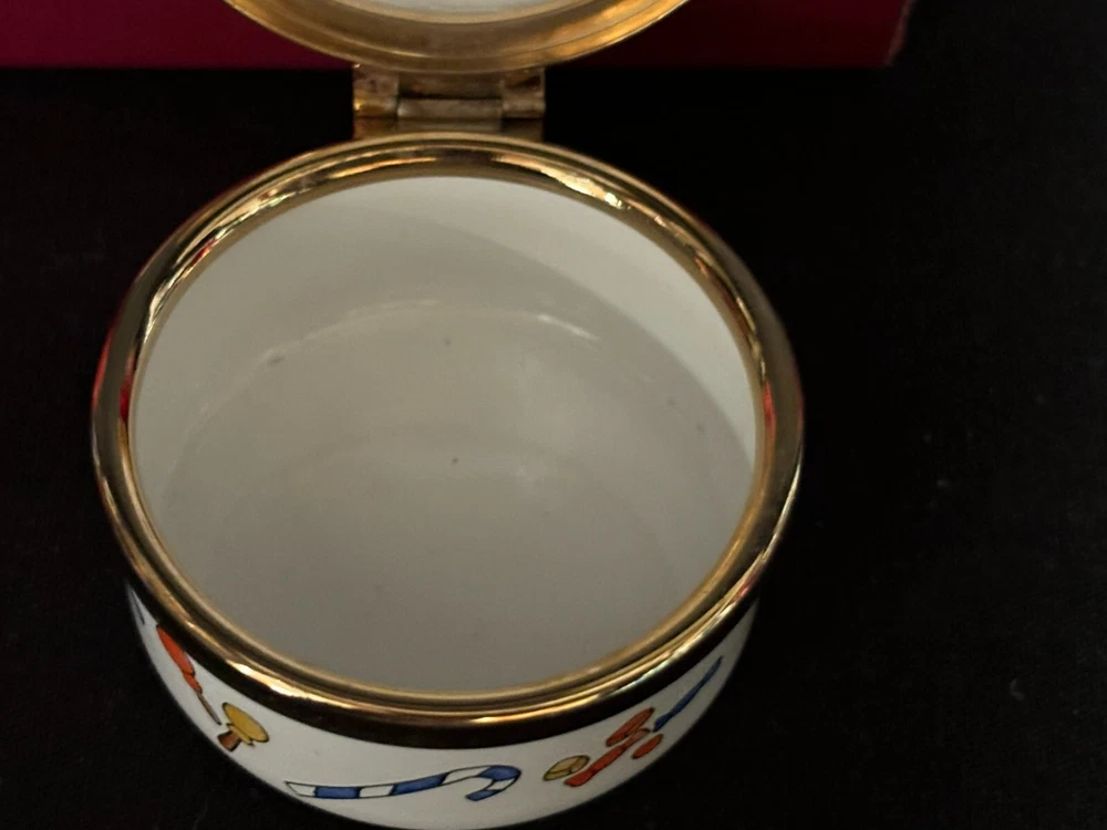Staffordshire Enamel Trinket Box "CHRISTMAS 1983 ~ SAKS FIFTH AVE." ~ w/Box L & M Landing Store Terms We make every attempt to show our listings as they truly are. If the pictures or descriptions are not clear, please contact me. Positive Feedback is very important to us. We strive to always have repeat customers that have a great experience shopping at our store. If for any reason you are not completely satisfied with your purchase, please contact me and we can resolve the issue together. Buy Now – Payment is due immediately ***PLEASE BE SURE YOUR SHIPPING ADDRESS IS UPDATED*** Auctions – Payment due within 3 Days We do offer combined shipping for multiple purchases. All overpaid shipping costs will be refunded at the time of shipping. We are a member of the Global Shipping Program in order to accommodate customers in other countries. SHIPPING TIME: Your item will be shipped the next business day after cleared payment has been received. You will receive shipping notification through eBay shipping or through PayPal shipping when your item is mailed. PLEASE be sure your shipping address is correct. Most of the items listed come from estate sales, auctions, garage sales, consignments and/or private sales. As such, I normally don't know the history of the item nor how it was stored.