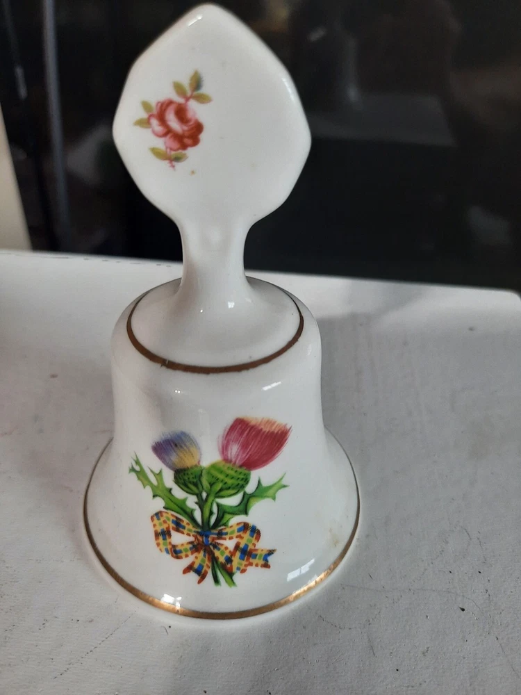 This beautiful Staffordshire bell features a stunning floral pattern with the iconic Scottish thistle design. Made from high-quality bone china, this vintage piece is a great addition to any collection. The bell's multicolor design adds a touch of elegance to any room's decor, making it perfect for display or as a decorative accent. The bell is classified under the categories of Pottery & Glass, Decorative Pottery & Glassware, and Bells, making it a unique and charming piece for any collector or enthusiast.
