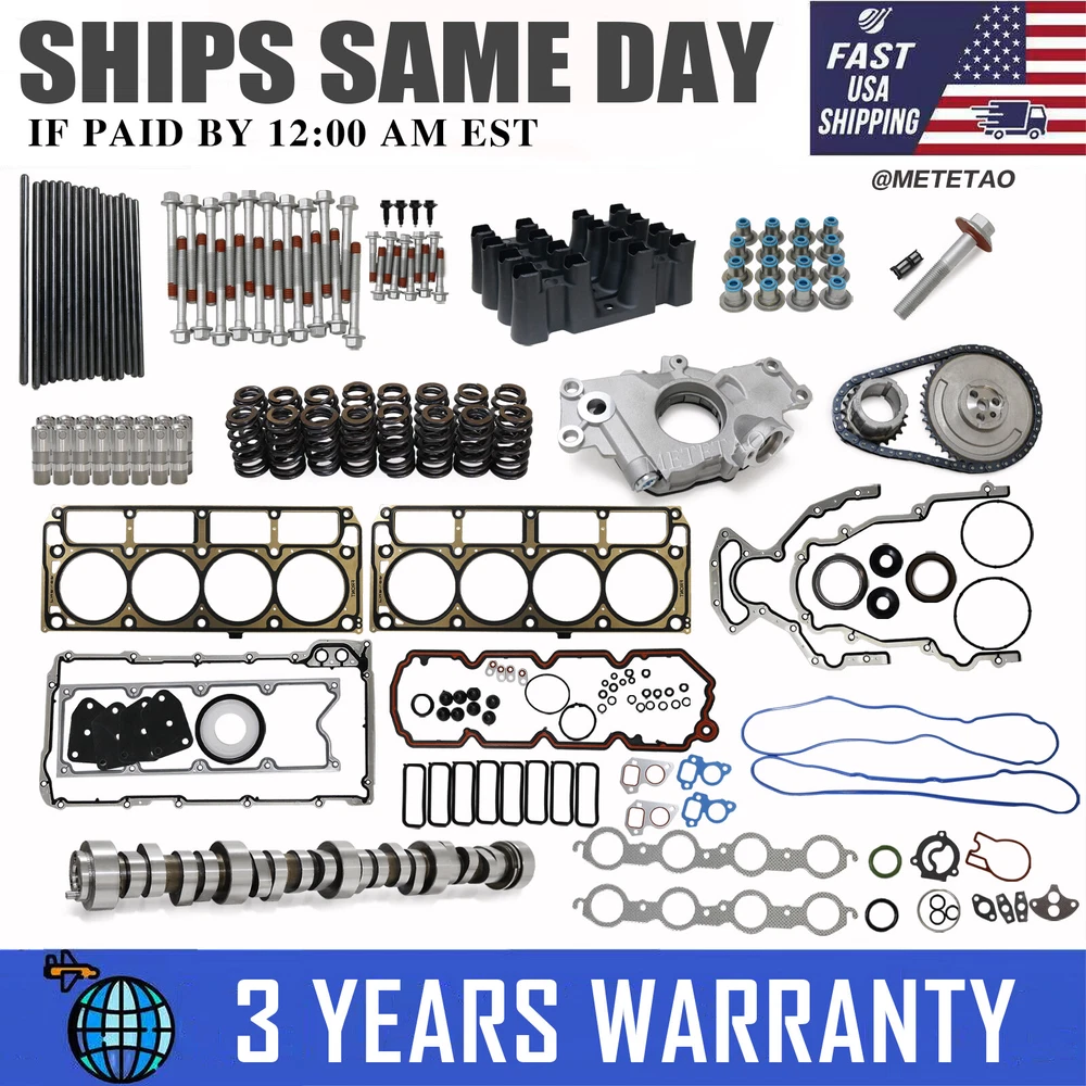 Stage 2 Cam Lifters Gasket Kit For 99-06 Chevy Silverado 1500 5.3L E1840P M295 Before Purchase Professional installation is highly recommended Please check the interchange part number before you purchase Please feel free to contact us by email at anytime if you have any questions Please refer to the listing pictures for an accurate description of the parts included in the kit Please kindly understand that the actual color and the size of the item may slightly vary from presented pictures OE NUMBER: 12482063,MS92467,MS96857,E-1840P,12557840 ,M295 ,1218,12499225,12646386,125529538,ES72220,1261350,12522033 Items include:(as the picture show) 1x Stage 2 Camshaft(E-1840-P) 16x Pushrods(7.4") 16x Springs(OE:1218) 1x oil pump(M295) 1x Timing Chain (12646386,12552953) 16x Valve Lifters with 4 trays(OE:12499225) 1x chevrolet Performance Parts Harmonic Balancer Bolt(12557840) 30x Bolts 【20 Long Bolts: 100mm(Without nuts), 10 Small Bolts: 45mm(Without nuts)】 16x Valve oil seals 2x oil pump Gasket 1x Front & Rear Timing Cover Gasket(12639249,12633904) 2x Cylinder Gasket(OE:12522033) 1x Exhaust Seal Set (MS92467) 1x Intake Seal Set(MS96857) 1x Oil Pan Gasket(OE:12612350) 1x Valley Cover Gasket other Gasket (You will get All parts show in the picture) Adaptation year:99-07!!! Compatible vehicles: GMC Sierra 2500 6.0 5.3 Chevrolet Silverado 2500 6.0 GMC Yukon XL 2500 6.0 GMC Yukon XL 1500 5.3 Chevrolet Suburban 2500 5.3 6.0 Chevrolet Silverado 2500 5.3 6.0 Chevrolet Silverado 1500 4.8 5.3 GMC Sierra 1500 4.8 5.3 Chevrolet Express 2500 4.8 5.3 Chevrolet Avalanche 1500 5.3 Specification: 1.Camshaft Compatibility: for Chevy LS-Series Engine 1997-Up Not for use with AFM/DOD Camshaft RPM Range: 2200 to 5400 RPM Camshaft Intake Valve Lift: .585" Camshaft Exhaust Valve Lift: .585" Camshaft Advertised Intake Duration: 283° Camshaft Advertised Exhaust Duration: 286° Camshaft Intake Duration at .050": 228° Camshaft Exhaust Duration at .050": 230° Camshaft Lobe Separation: 112° Camshaft Intake Centerline: 108° Camshaft Cam Gear Attachment: 3-Bolt 2. Number of Springs Per Valve: Single Outside Diameter of Outer Spring (in): 1.290 in. Spring Coil Bind Height (in): 1.140 in. Damper Spring Included: No Spring Install Load: 130lbs Spring Install Height: 1.800" Spring Open Height: 1.175" Spring Open Load: 318 lbs Spring Rate (lbs/in): 313 lbs./in. Inside Diameter of Outer Spring (in): 0.885 in. Valve Spring Style: Beehive 3. Set of 16 Elgin Roller Lifters for 1997-2015 Chevy/GM LS Series Factory Roller applications without Active Fuel Management. Lifters Fitment includes: 1999-2012 Trucks/SUVs 4.8L V-8 VIN-V,C,A 1999-2007 Trucks/SUVs 5.3L V-8 VIN-T,Z,B 1997-2004 5.7L LS1 V-8 2001-2005 5.7L LS6 V-8 1999-2010 Trucks/SUVs 6.0L V-8 VIN-U,K 2005-2009 6.0L LS2 V-8 2008-2013 6.2L LS3 V-8; without AFM 2006-2013 7.0L LS7 V-8 Also fit Factory Roller 93-97 LT1, and 305-350 Chevy Engines. 4. Putters 5/16" DIAMETER - 7.400" LENGTH - .080 WALL THICKNESS 5. M295(12586665) Oil Pump Timing chain CONTACT US: If you are satisfied with the item, please take a moment to reward our efforrs by leaving us a "POSITIVE FEEDBACK" and perfect "5 STAR" scores. If you have any question about the product, please contact us firstly, so that we can satisfactorily address your concerns and rectify any issues. Payment Shipping Returns Policy About us Contact us Payment We accept payment of Credit Card, Debit Card, Gift Card, Apple pay, Google pay, Paypal and Paypal credi Item will be shipped immediately on the same or next business day of receiving full payment. Shipping Shipping within the 24H Contiguous United States Large items we ship with UPS/FEDEX UPS/FEDEX Tracking Number will be uploaded automatically in the "VIEW ORDER DETAILS" Returns Policy All of our items are tested and are fully working unless otherwise stated in the Listing Actual Images of item are shown above All sales are final. If there is an issue with the item under your normal using, we will replace it within warranty time. Terms & Conditions It is the sole responsibility of the buyer to verify the above fitment recommendations and part number compatibility prior to purchasing. The above fitment specs are a result of an abundance of in depth research. I am confident that the information is very precise, but I do not guarantee them to be accurate. If you purchase an item that is not compatible with your specific application, there are no returns, all sales are final. Furthermore, I am not responsible for improper fit, or anything associated with it such as installation fees that the buyer incurs. We are not responsible for any return or exchange after the warranty period has expired. No exceptions. The return policy is a little different for different circumstances: If we send you the wrong item or the item is damaged the time you receive it, we will cover all the costs associated with return or exchange. But it is required that you provide a photo to show us the problem first. All the return/exchange items must be in original package. All NON-seller mistake returns for refund ,buyer should pay for the return costs. (E.g. purchases the wrong item by mistake and doesn’t like the item or no longer need the item ) About us We are US located Seller. We try our best to represent our items but are still humans and sometimes mistakes may happen. Please do not be quick to judge us through our feedback system but contact us via ebay, we will fix the issue right away. Our Feedback is very important to us and we strive for a 5 star from every buyer. Contact us Customer Service Hours: Monday-Sunday 9am-10 pm Manufacturer Warranty 3 Years OE/OEM Part Number 12482063, MS92467, MS96857, E-1840P, 12557840, M295, 1218, 12499225, 12646386, 125529538, ES72220, 1261350, 12522033 Fitment Type Direct Replacement Brand METETAO Type Hydraulic Roller Items Included Camshaft,Engine Lifters,Springs,valve seals,Pushrods Manufacturer Part Number 12482063, MS92467, MS96857, E-1840P, 12557840, M295, 1
