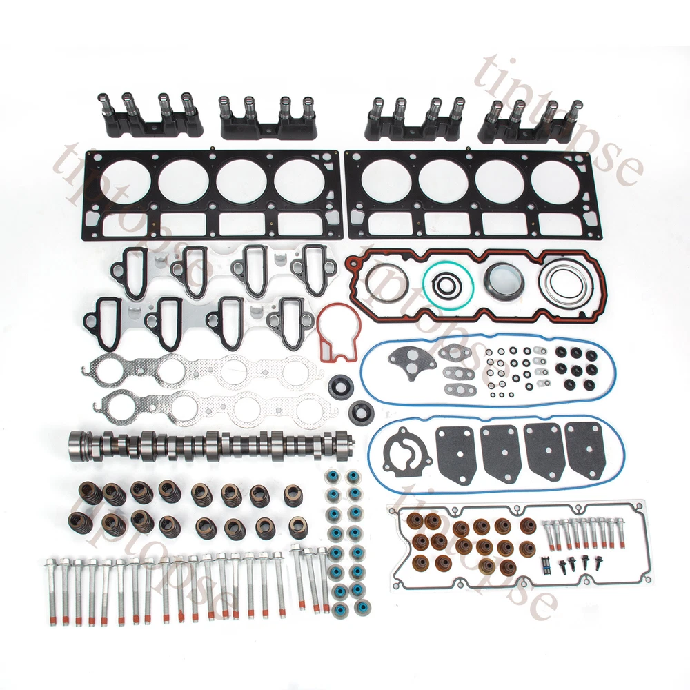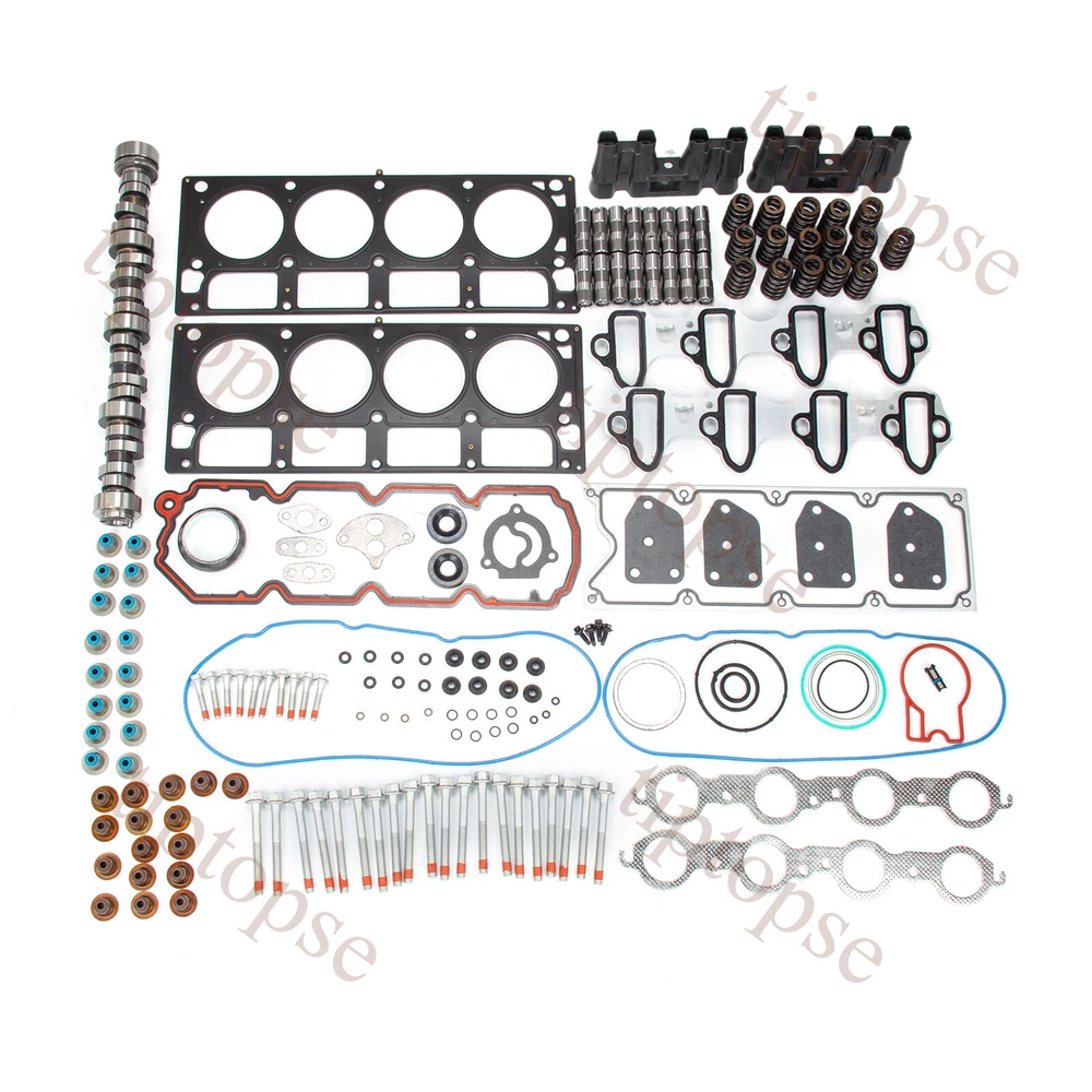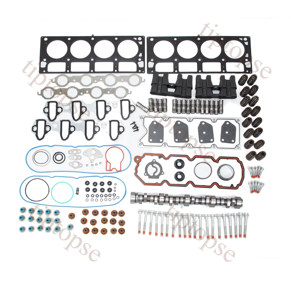 Product Description Stage 2 Cam Lifters Kit Springs For 1999-07 Cadillac Chevrolet GMC Buick 4.8 5.3 E1840P Sloppy Stage 2 Cam Lifters Head Gasket Kit for Chevy GMC LS 5.3 5.7 .585" Head Gasket Bolts Set Fit 2004-2014 Cadillac Chevrolet GMC Buick 4.8 & 5.3 OHV. Remark: The valley pan gasket in this does NOT fit on engines with Active Fuel Management (A.F.M.) system. These engines have two different designs for the head bolts. 1st design head bolts have 16 Long Bolts: 150mm, 4 Short Bolts: 100mm, 10 Small Bolts: 45mm. 2nd design head bolts have 20 Long Bolts: 100mm, 10 Small Bolts: 45mm. This kit ONLY FITS engine with 2ND DESIGN HEAD BOLTS (20 long bolts: 100mm, 10 small bolts: 46mm). Please double check your engine head bolts to make sure this kit will fit your engine before making the purchase. This is a 3-bolt cam (Gen III LS) , if you have a single bolt cam (Gen IV LS) you will need to purchase 3-bolt cam gear conversion kit.Not compatible with Active Fuel Management (AFM). Custom computer tuning required.Automatic's will perform best with a 2,600-2,800 Stall Converter. About: Camshaft Type: Hydraulic Roller RPM Range: 2200 to 5400 RPM Intake Valve Lift: .585" Exhaust Valve Lift: .585" Advertised Intake Duration: 283° Advertised Exhaust Duration: 286° Intake Duration @ .050": 228° Exhaust Duration @ .050": 230° Lobe Separation: 112° Intake Centerline: 108° Cam Gear Attachment: 3-Bolt Usage: Performance Notes: Not for use with AFM/DOD .560"Springs Set: 100 lbs @ 1.800" 285 lbs @ 1.240" Coil Bind @ 1.150” 560" Max Lift Beehive design Works with stock retainers & locks Valve Lifter Set: 16pcs HL-124 Valve Lifters About this set: The head gasket is the key component of the engine. It is compressed between the engine block and the cylinder head. The head gasket seals in the internal combustion process to make sure maximum compression is achieved and also keeps coolant and oil from mixing together as the two fluids travel from the engine block to the cylinder head. Time will come that your head gasket will leak or blow. The cylinder head bolts hold the cylinder head and cylinder head gasket in place and ensure that the cylinder head will continue to hold up despite the tremendous amounts of pressure in the combustion chamber. Therefore the cylinder head bolts, and cylinder head gasket are an important part of your engine. They should always be in perfect condition and should be maintained properly. So, if you notice that this part is showing signs of excessive wear, have them replaced immediately. Be sure to have your engine gaskets, and head bolts replace with replacement head gasket bolts set as soon as it starts to give you trouble. Package includes Pls see the pics as reference! Cam Camshaft For Chevy x1 Bee Hive Valve Springs x16 valve seals x16 Guides x4 Lifters x16 Bolts x4 Filter x1 Multiple Layers Steel (MLS) Head Gasket Valve Cover Gasket Valve Stem Seals Intake Manifold Gasket Metal Upgraded) Exhaust Manifold Gasket Front Camshaft Seal O-rings Other Small Gaskets 30 Cylinder Head Bolts (20 Long Bolts: 100mm, 10 Small Bolts: 45mm) Contact US - tiptopse 1.If you have some inquires or problems, Please feel free to contact us. 2.If you are not satisfied with your purchase, simply contact us via eBay message and your interests will be protected. 3.Please don't open a dispute or leave neutral/negative feedback without communication,I will reply within 12 hours of receiving the message.Thanks.
