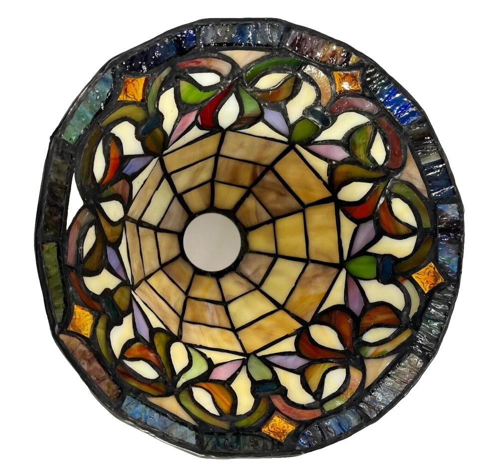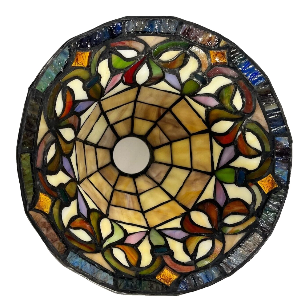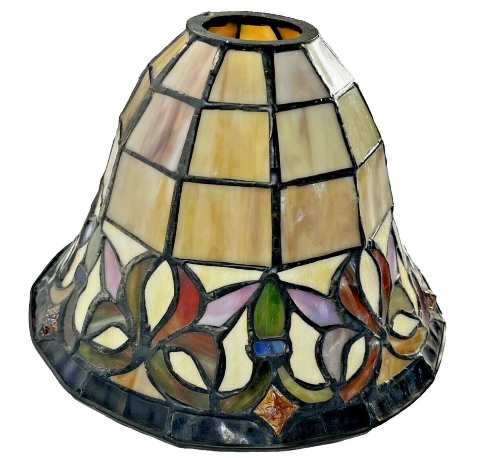 Mid Century Modern Stained Glass Tiffany Style Turtleback Bell Shade Lamp Chandelier Pendant Light Cover Beautiful mini-pendant cover, featuring a stained glass victorian shade. This pendant would be perfect to hang along a bar area or even over a lamp for every day use in the living room. Each shade is hand crafted, using the same methods developed by Louis Comfort Tiffany in the early 1900's. This process entails using hand cut stained art glass pieces and crystals, each wrapped in fine copper foil and soldered together at extremely high temperatures to form each unique piece. Pre-Owned with minimal to no signs of wear, comes without sales tags, dust bag, or brand box. Please refer to the detailed photos for the most accurate description and estimation of the item's condition.Please don't hesitate to reach out with any questions or if you require additional photos.All items are sold as is and we try or very best to note any issues with condition. Looking at the photos is very important as they are part of the description. Please remember that colors can look different across different devices and monitors.For vintage items the very nature of them means there are probably some flaws, wear, etc that add to their vintage charm. So please carefully review all photos and reach out with any questions prior to purchase.