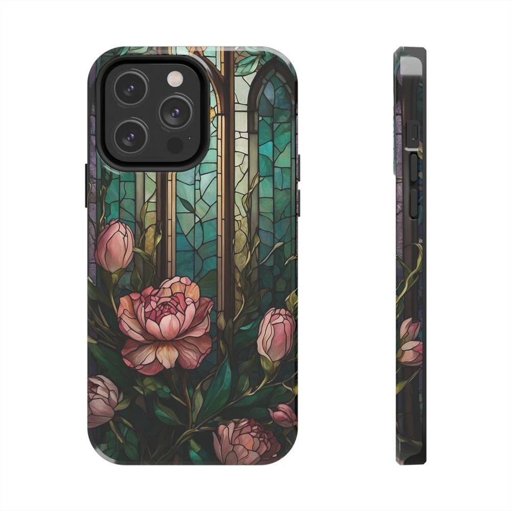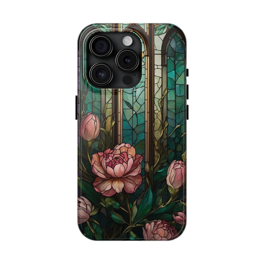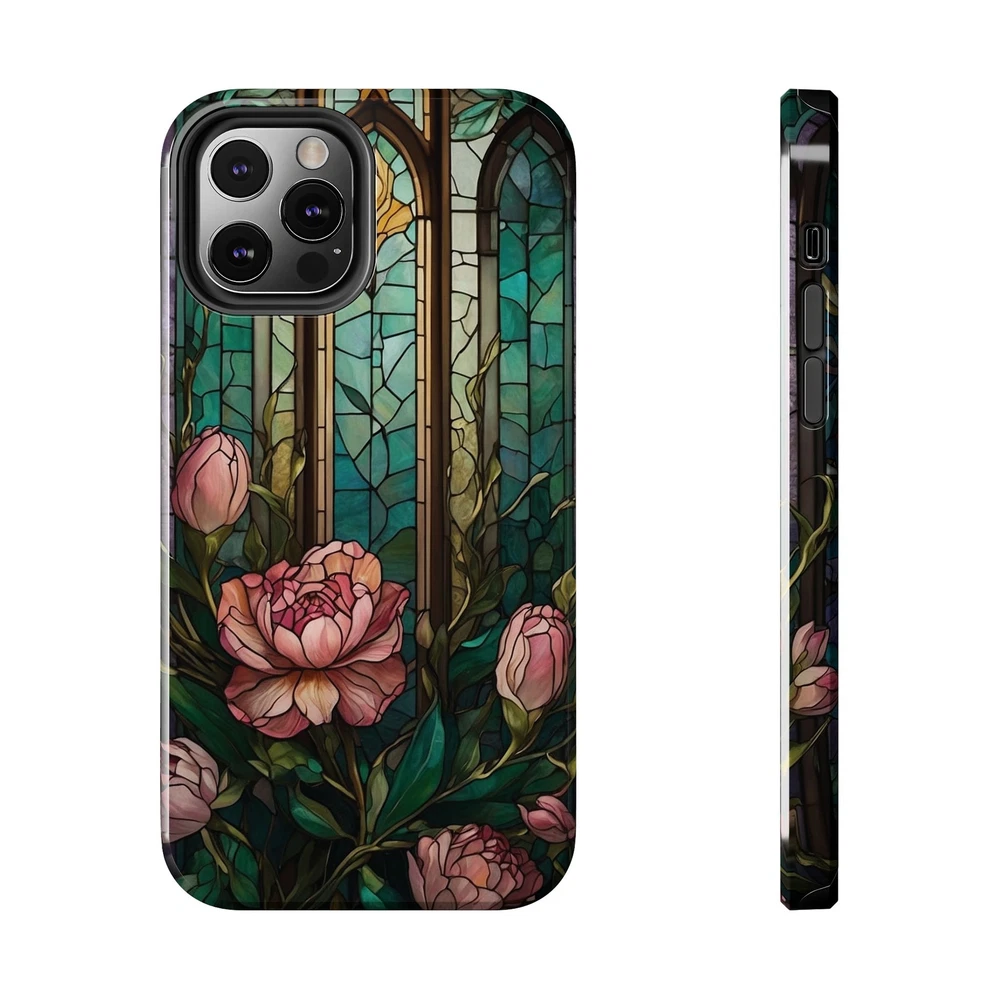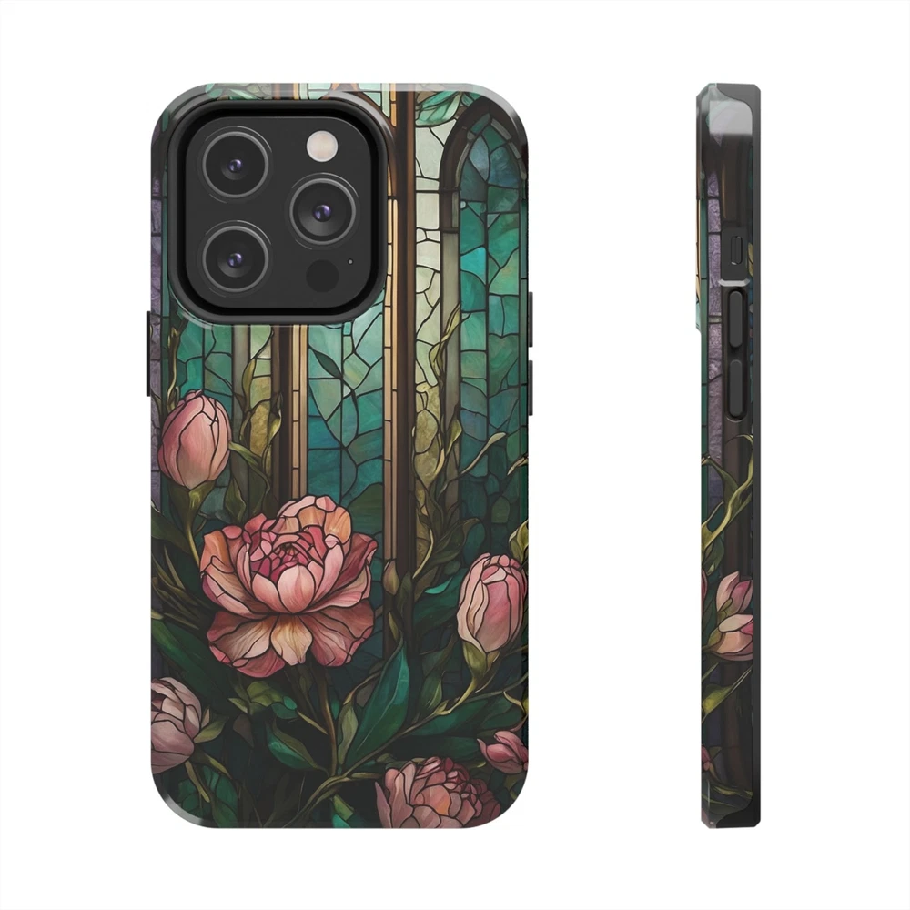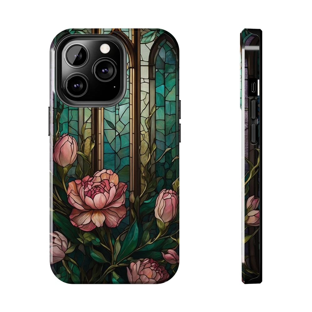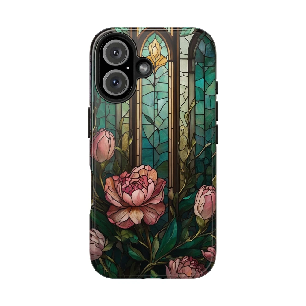 This Phone Case features a stained glass design with soft pink roses and intricate arches, creating a serene and majestic look. Perfect for those who appreciate elegant and spiritual aesthetics. Ideal for gifting on birthdays, Mother's Day, or as a thoughtful thank you gesture. Product features - Extremely strong and impact resistant Lexan plastic material - Lay-flat bezel for screen protection - Flexible rubber liner for shock absorption - Glossy finish with UV protection for long-lasting color - Supports wireless charging Care instructions - Clean with damp cotton or microfiber cloth. Add a drop of dish soap to the cloth if needed.