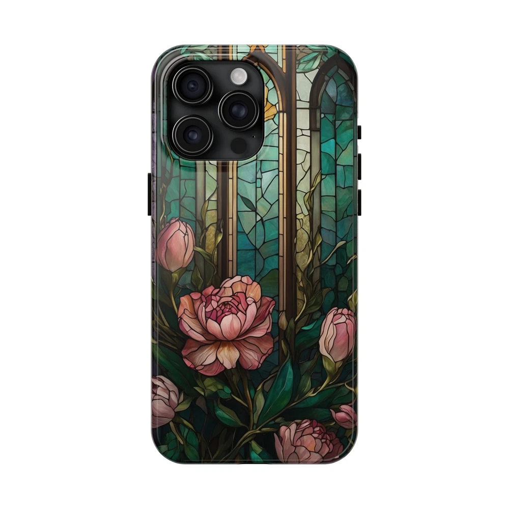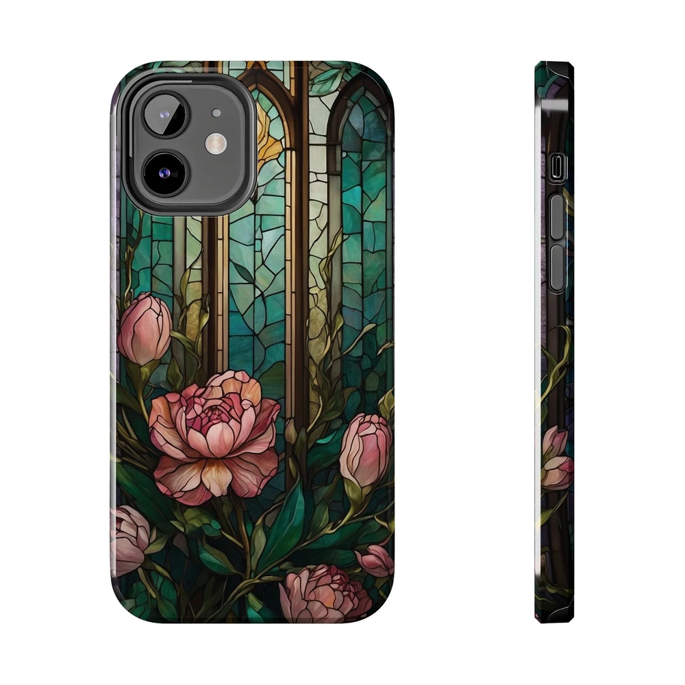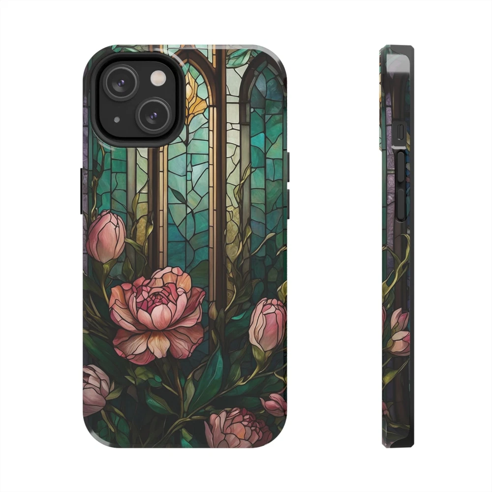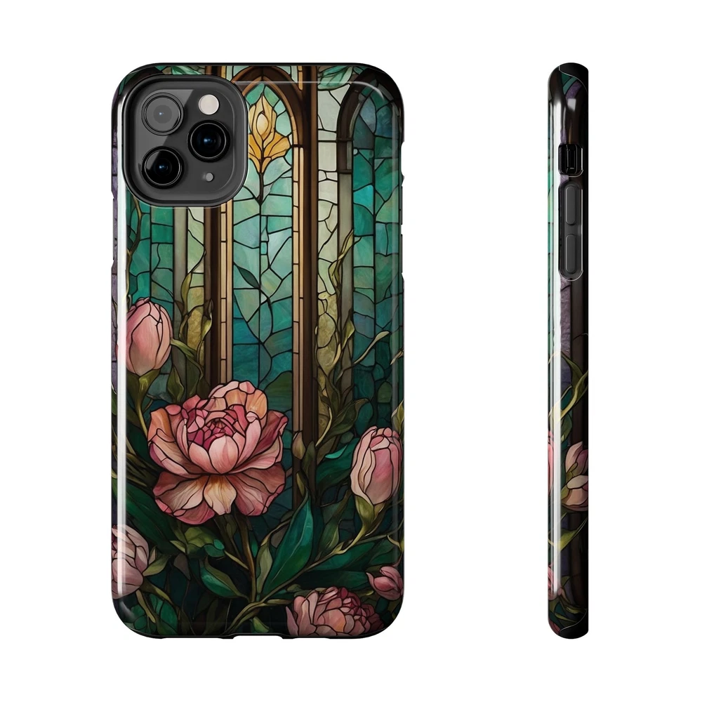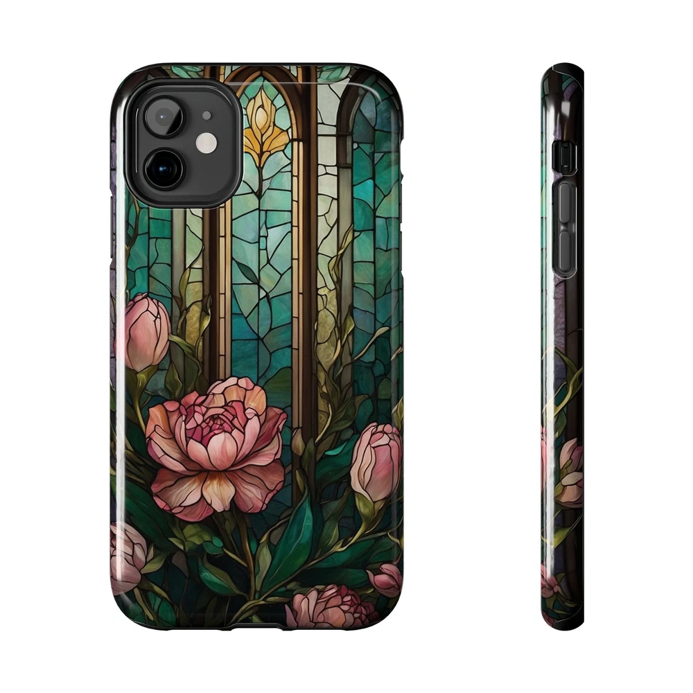 This Phone Case features a stained glass design with soft pink roses and intricate arches, creating a serene and majestic look. Perfect for those who appreciate elegant and spiritual aesthetics. Ideal for gifting on birthdays, Mother's Day, or as a thoughtful thank you gesture. Product features - Extremely strong and impact resistant Lexan plastic material - Lay-flat bezel for screen protection - Flexible rubber liner for shock absorption - Glossy finish with UV protection for long-lasting color - Supports wireless charging Care instructions - Clean with damp cotton or microfiber cloth. Add a drop of dish soap to the cloth if needed.