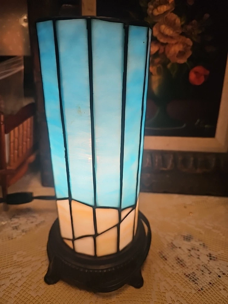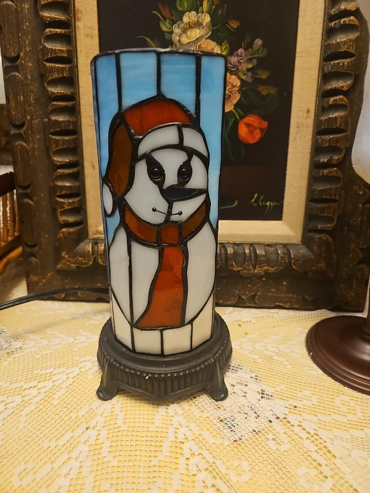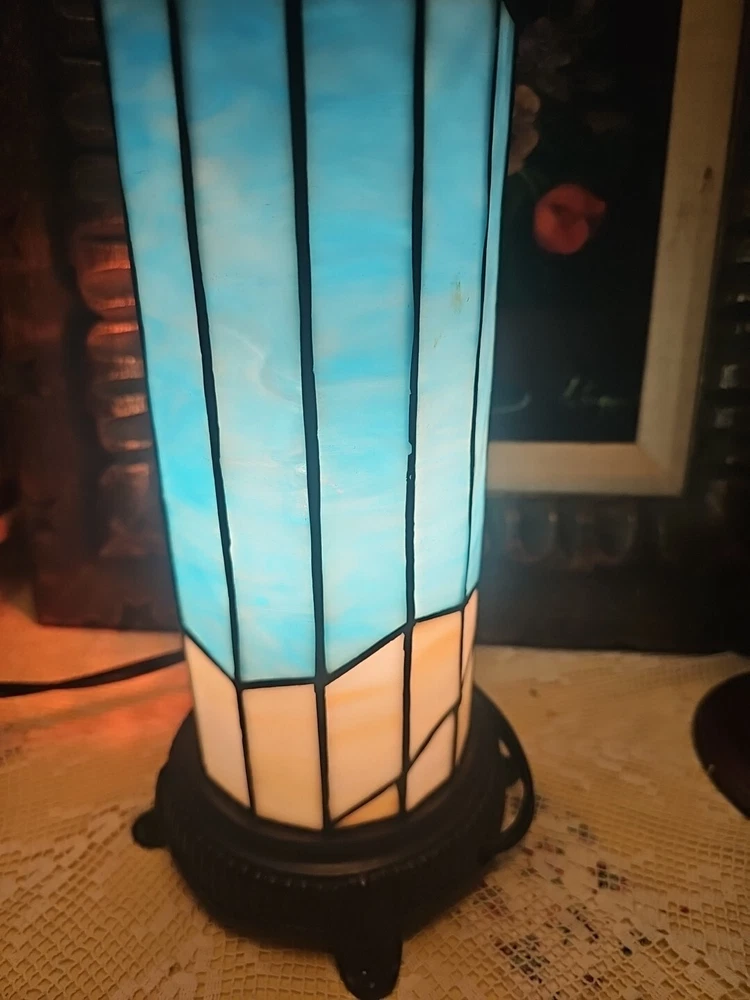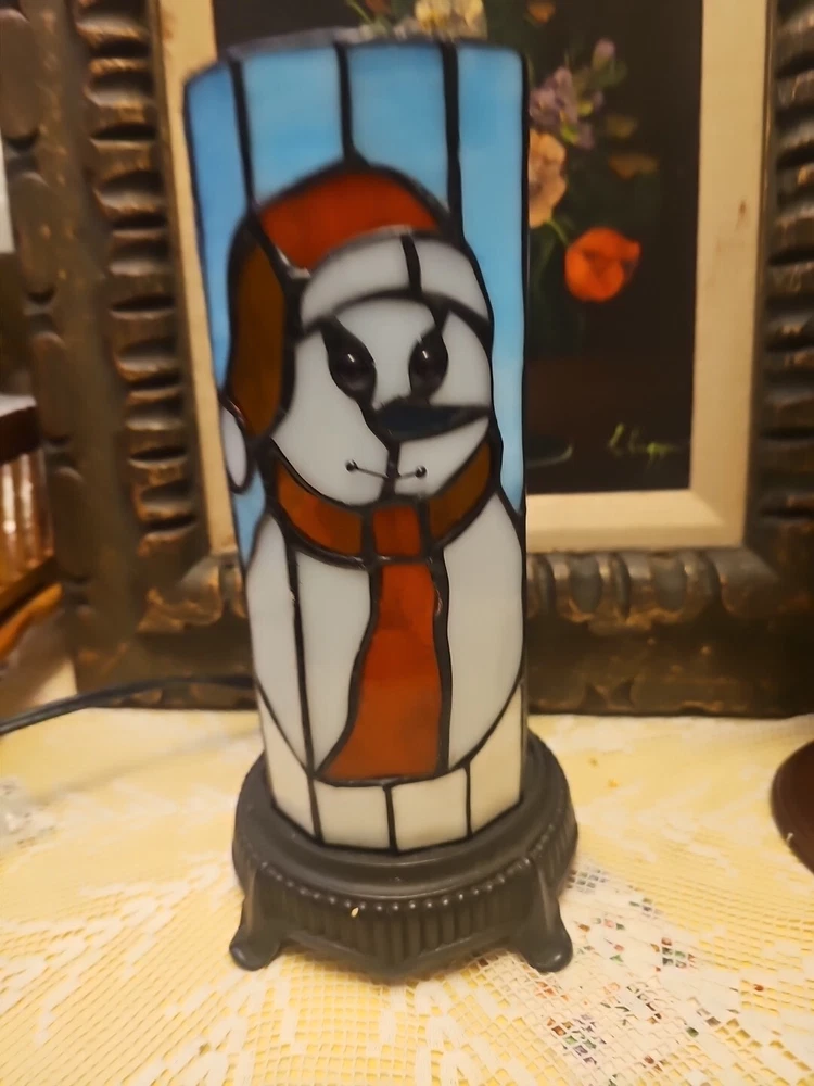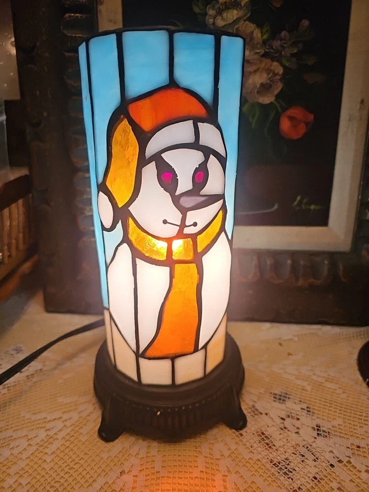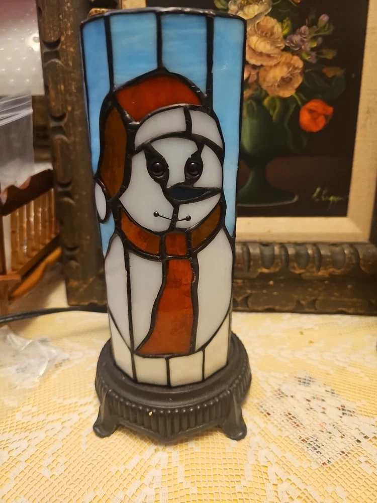 Stained Glass Snowman Column Accent Lamp 10" Christmas Holiday Red Eyes. Condition is Used. Shipped with USPS Ground Advantage.