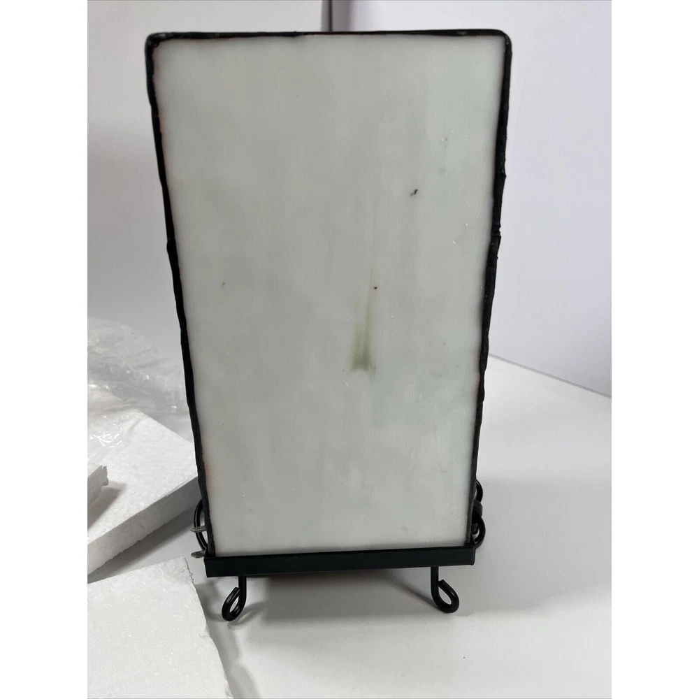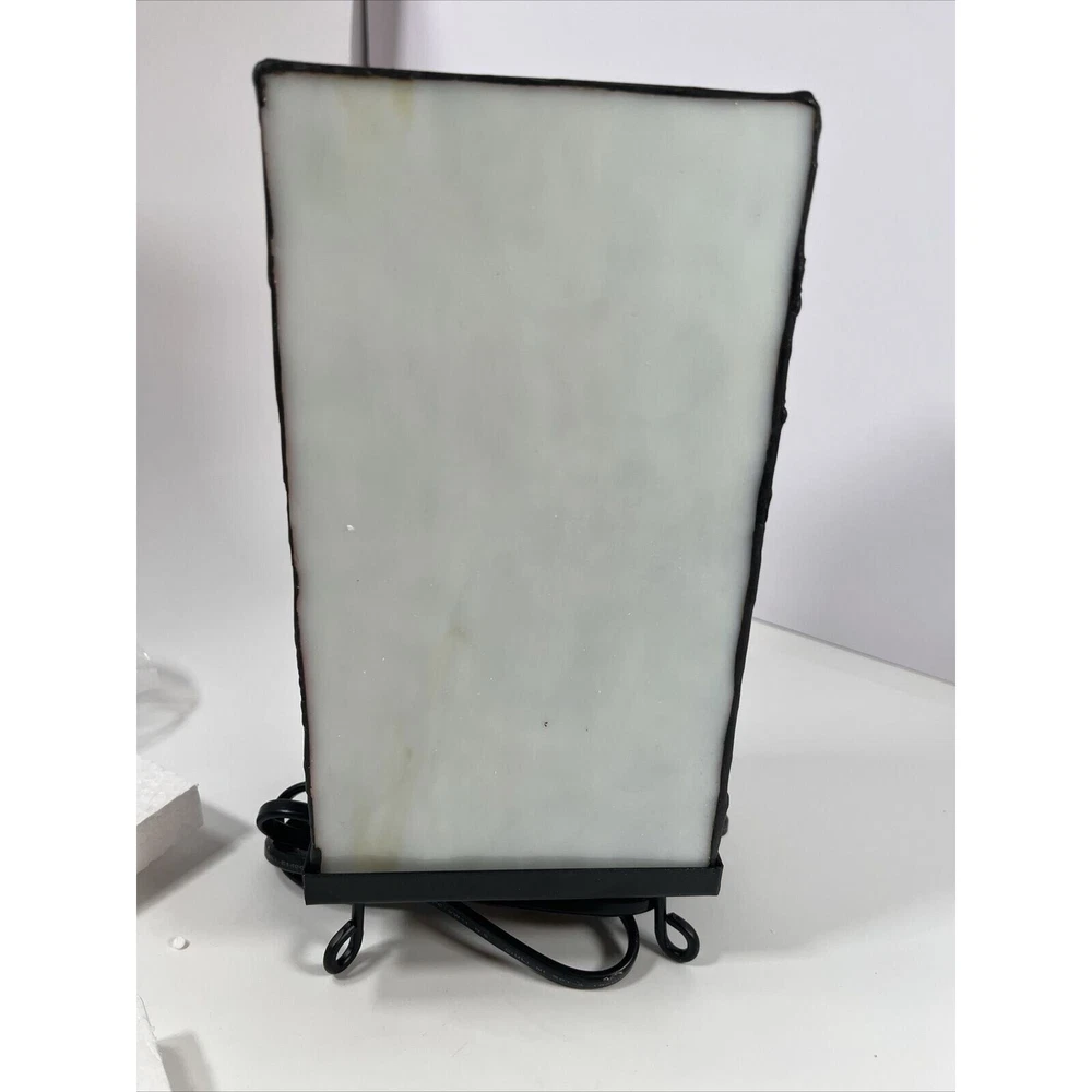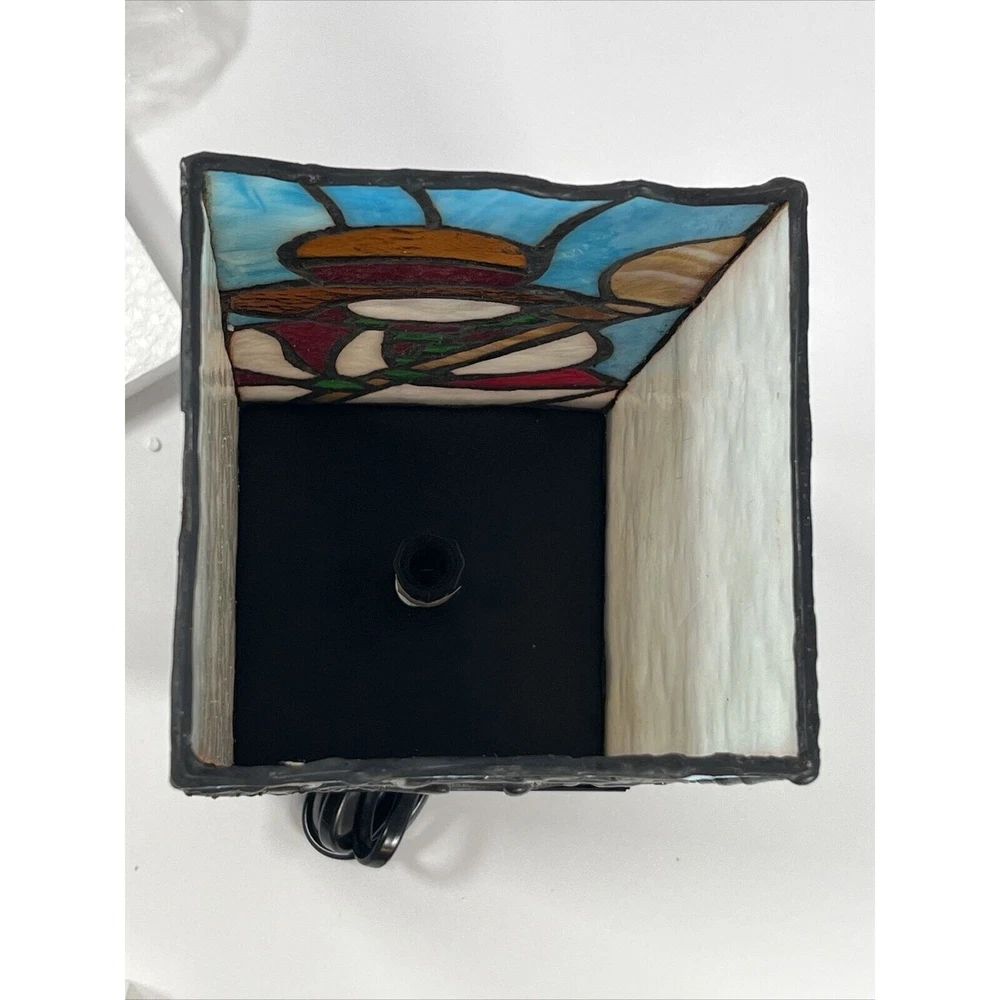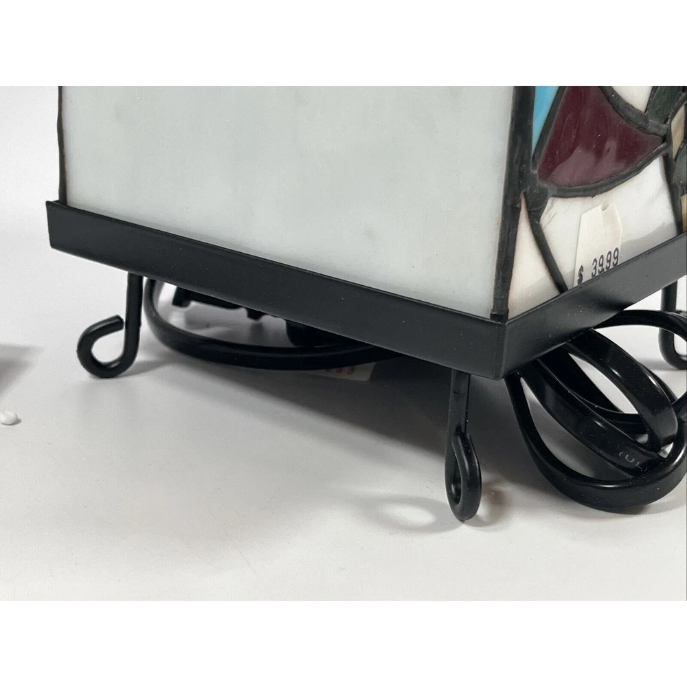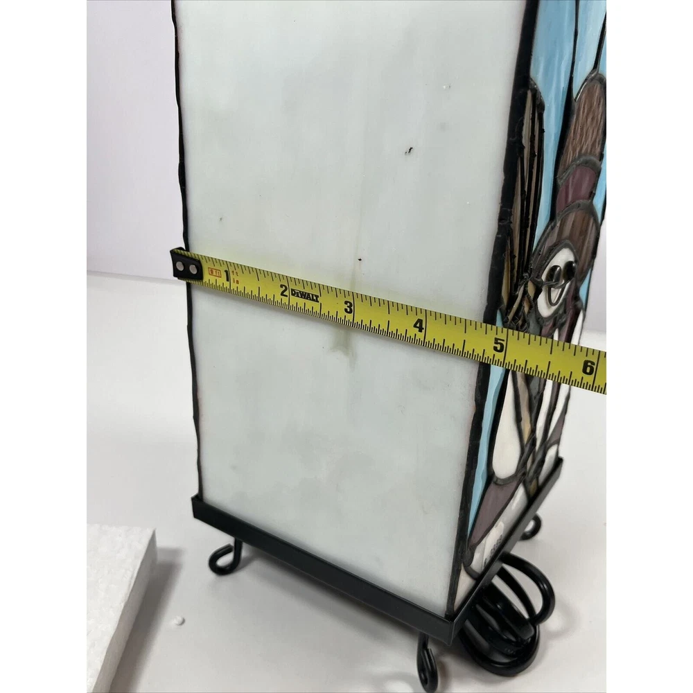 This unique accent lamp is the perfect addition to your holiday decor. Featuring a beautiful snowman design made of stained glass and metal, this lamp is sure to brighten up any room with its multicolor lighting technology. Measuring 4.5 inches in length, 5 inches in width, and 10 inches in height, this medium-sized lamp is corded electric and comes with a black cord color. The lamp is an original design from Kurt Adler, a reputable manufacturer in the industry. It has a stained finish and a column-shaped shade, giving it a vintage Americana style. This seasonal-themed lamp is perfect for both unisex adults and collectors alike. Beautiful lamp with a fun design! Opened for the first time for these photos. One side of the lamp has a crack within the hat piece of brown glass. See photos!