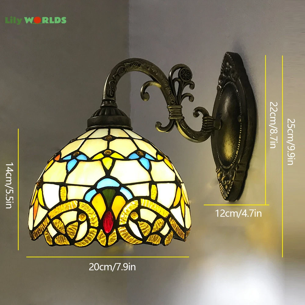 Stained Glass Wall Lamp Tiffany Style Bathroom Wall Sconce Light Retro Fixture Description: Tiffany Light Will Look Different With Different Light Bulbs Light Information Category: Sconce Lightings Shape: Dome Dimensions Fixture Height: 9.8" (25 cm) Shade Height: 5.5" (14 cm) Shade Width: 8" (20 cm) Bulb Information Bulb Base: E27 Number Of Lights: 1 Light Bulb Included Or Not: Bulb Not Included Wattage Per Bulb: 6-10W Bulb Type: LED/Incandescent/Fluorescent Others Colors: Beige Materials: Glass,Metal Lighting Styles: Victorian Setting: Living Room Lighting,Bedroom Lighting Lighting Types: General Lighting,LED Lighting Note: This light does not have a plug, and you need to wire it and install the wall switch by yourself. Payment Delivery details Terms of sales About us Contact us Payment We accept ebay payment 。 Fees such as import duties, taxes are not included in the item price or shipping costs. These charges are the buyer's responsibility. Delivery details Shipping: 2-9 working days to: USA Terms of sales We maintain high standards of excellence and strive for hundred percent customer satisfaction. Feedback is very important to us. We hope that you contact us immediately before you give neutral or negative feedback, so that we can address your concerns. It is impossible to address issues if we do not know about them! About us Your satis faction is our ultimate goal. We work hard to earn your trust and future business. Our certified technicians have tested each item before shipping. The unit comes with 1 year limited warranty on all manufacturing defects. a) If you receive a defective item, you may return it or ask for a discount. Please contact us within 14 days after you receive the package. b) What you returned must be intact and in its original packaging as re? u. Customer is responsible for shipping costs of the returned item. c) We will cover the cost of shipping back t with the shipping rate indicated in the registration page. We will send you a new unit or refund the full payment you paid. Thank you. Contact us Business Hour Business Hour: Monday To Friday: 8:30 AM to 5:00 PM (Beijing China time) Due to time zones, our reply to your questions may not be immediately. But within above working time, we will reply your email within 24 hours. If it's non-workdays, please kindly be patient and wait till Monday. Please contact us with ebay message. Please feel free to contact us if you have any questions. Monday To Friday: 8:30 AM to 5:00 PM (Beijing China time) Due to time zones, our reply to your questions may not be immediately. But within above working time, we will reply your email within 24 hours. If it's non-workdays, please kindly be patient and wait till Monday. Please contact us with ebay message. Please feel free to contact us if you have any questions. Feature 1 Nice and Practical, High Quality Packaging * Feature * Fast shipping from US Warehouse Features: High quality W/ warranty! Mounting In Cabinet Number of Settings N/A Control Style Wall Switch Cord Color N/A LED String/Strip Type WS2812 Finish N/A Character Family N/A Brand Unbranded Type Wall Lamp Sensor Type Light Style Tiffany Lighting Technology LED Room Bathroom, Bedroom, Dining Room, Garage, Hallway, Home Office/Study, Kitchen, Living Room, Porch, Utility/Laundry Room Installation Area Indoor Material Glass,Metal Power Source Corded Color Beige Voltage 110 V Shade Shape Dome Department Adults MPN Does Not Apply