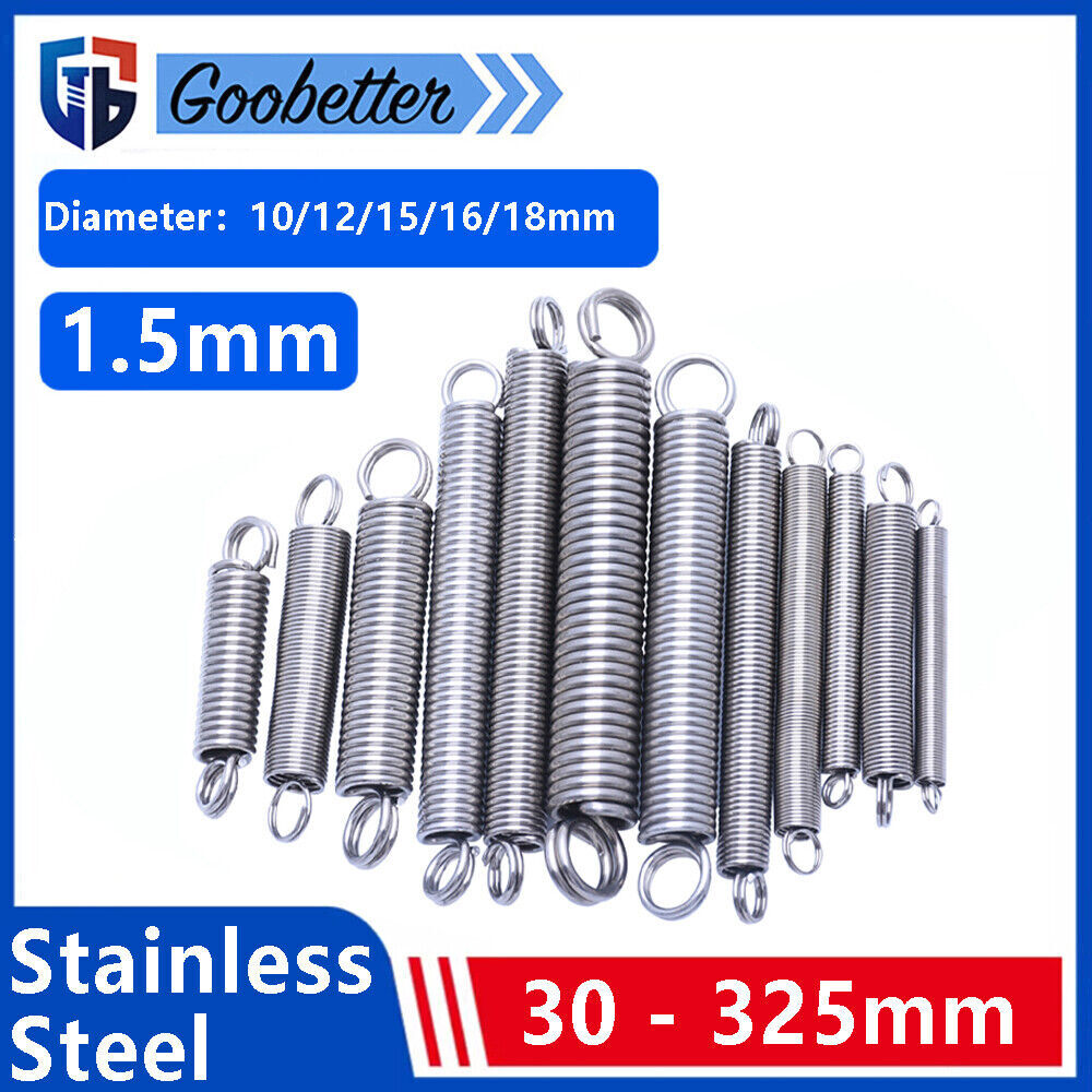 Specifications: 【Features】- Springs occupy an important position in various markets. Stainless steel spiral compression spring, waterproof, rust-proof, durable. 【Application】- Widely used in shipbuilding, computer, electronics, automobile, chemical industry, aerospace, railway, wind power, thermal power, construction machinery, mining machinery, construction machinery, elevators and other fields. Wire diameter:1.5mm Diameter:10/12/15/16/18mm Length:30 - 320mm Material:304 Stainless Steel