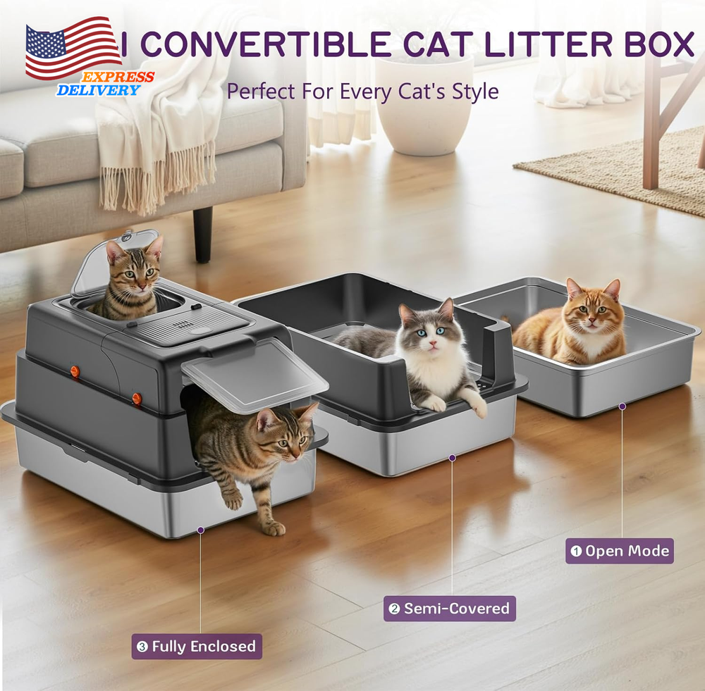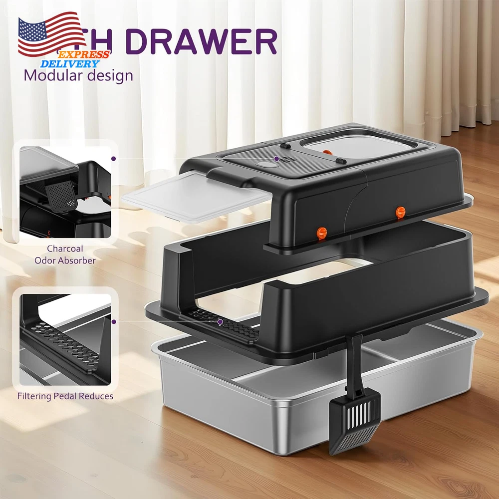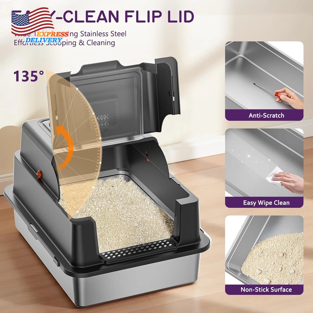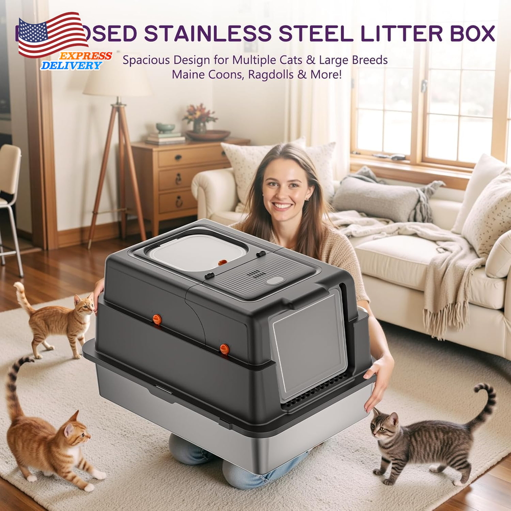 Store New Arrivals Add to Favorite View Feedback Contact Stainless Steel 28" XXXL Large Litter Box with Lid for Multiple Cats Description Item model number 000 Warranty Description 12 Month Warranty Item Dimensions LxWxH 27.9 x 20 x 17 inches Color Black Product Dimensions 27.9"L x 20"W x 17"H Material Stainless Steel Style Morden Specific Uses for Product Indoor Item Weight 12 Pounds With Lid Yes Number of Items 1 Target Audience Keyword house-cats Model Name 000 Size XX-Large Litter Box Type Covered Litter Box Item Package Dimensions L x W x H 28.6 x 21.4 x 7.8 inches Included Components 1* Cat little box 【PREMIUM STAINLESS STEEL LITTER BOX】 YIZEFERN's metal litter box with lid features a premium stainless steel interior. Its non-porous, smooth surface resists stains and odors permanently, eliminating the bacteria and stubborn smells that plague scratched plastic boxes. Cleaning is effortless—just wipe it clean in seconds. This stainless steel litter box with lid is the ultimate, permanent solution for a sanitary cat litter box enclosure 【DUAL-ACCESS COVERED LITTER BOX】 YIZEFERN's covered litter box boasts an exclusive 135° wide-open top lid. You never need to remove the entire top for scooping or refilling, making daily maintenance incredibly easy and hassle-free. This innovative covered cat litter box design significantly upgrades your routine. It offers flexible entry options, functioning as both a top-entry or front-entry litter box enclosure to suit your cat's preference 【SPACIOUS XXXL DESIGN FOR LARGE CAT】 As a superior cat litter box covered, its sealed structure powerfully contains odors inside. Internal urine guards prevent side leaks, even from standing sprays. Both front and top doors feature secure locks, preventing accidental openings and escape attempts, ensuring safety and peace of mind. This large litter box enclosure is the perfect barrier for protecting your home 【HIGH SIDED DESIGN PREVENTS LEAKS & SCATTER】 As a superior cat litter box enclosure, its sealed structure powerfully contains odors inside. Internal urine guards prevent side leaks, even from standing sprays. Both front and top doors feature secure locks, preventing accidental openings and escape attempts, ensuring safety and peace of mind. This large litter box enclosure is the perfect barrier for protecting your home 【NON-SLIP PADS FOR ULTIMATE STABILITY & SAFETY】 We include complimentary non-slip pads for this high sided stainless steel litter box. Apply them to the bottom of the base and the filter mat to significantly increase grip on your floor. This prevents the stainless steel litter box with lid from sliding during energetic digging or entry/exit, ensuring complete stability. It provides a secure and comfortable covered cat litter box experience for your pet. Product description The video showcases the product in use. The video guides you through product setup. The video compares multiple products. The video shows the product being unpacked. Enclosed Stainless Steel Litter Box with Lid Merchant Video ABOUT US We offer the best prices around on high quality products. Our E-store includes media such as books, movies, music and games while offering electronics, toys, sporting apparel, clothing, tools, general home, garden items and more. SHIPPING We are always working hard to ensure your package arrives as soon as possible. Please understand that some factors like weather, high postal traffic, and the performance of shipping companies are outside of our control. We offer free shipping to the lower 48 states and ship within 2 business days of payment, usually sooner. We do not accept P.O. Boxes. Please provide a physical address. For shipping outside of the continental USA, we only use eBay's Global Shipping Program.The item is shipped to KY and then sent to the rest of the world. International customers are responsible for all duties and taxes. Continue to check out in order to calculate costs for shipping the item to your country. Messages regarding eBay's Global Shipping Program MUST be directed at eBay EXCLUSIVELY. RETURNS We offer a 30-Day Return Policy on items which you are not completely satisfied with. You have the option for a full-refund or an exchange of the item. No returns are available on items shipped outside of the USA. PAYMENT We accept PayPal. CONTACT US This page content is yet to come Please ad us to your favorite seller and visit again later Thank You CUSTOMER SATISFACTION We try our very best to make sure every customer is completely satisfied. If there's a problem, message us! We're happy to help. WE ACCEPT Copyright © 2021 AutoDS. | All Rights Reserved