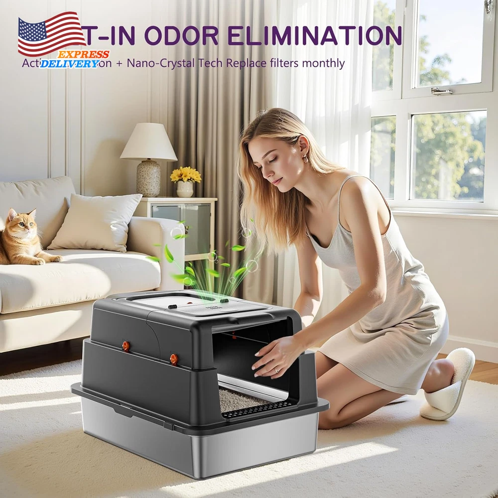 $ 68.63Self-Cleaning، Cat Litter Box Open-Top Design with Safety Sensors large capacity