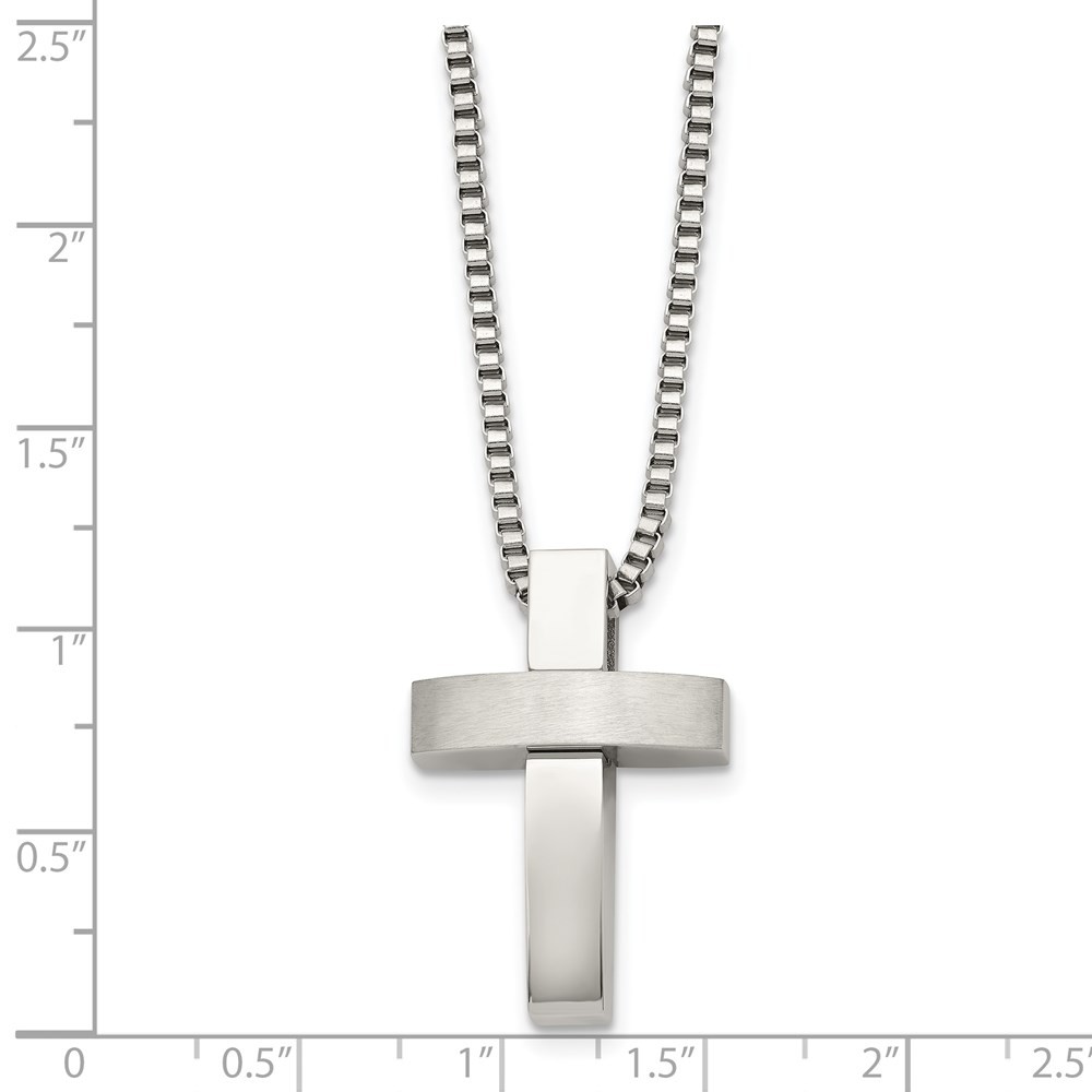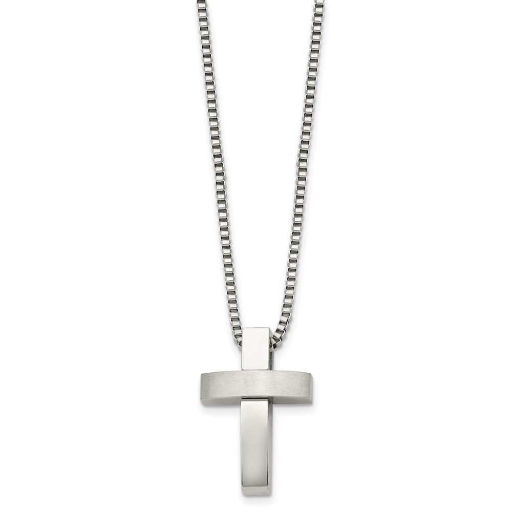 Stainless Steel Polished Crystal Cross Pendant Necklace with 22in Cable Chain 6.99g