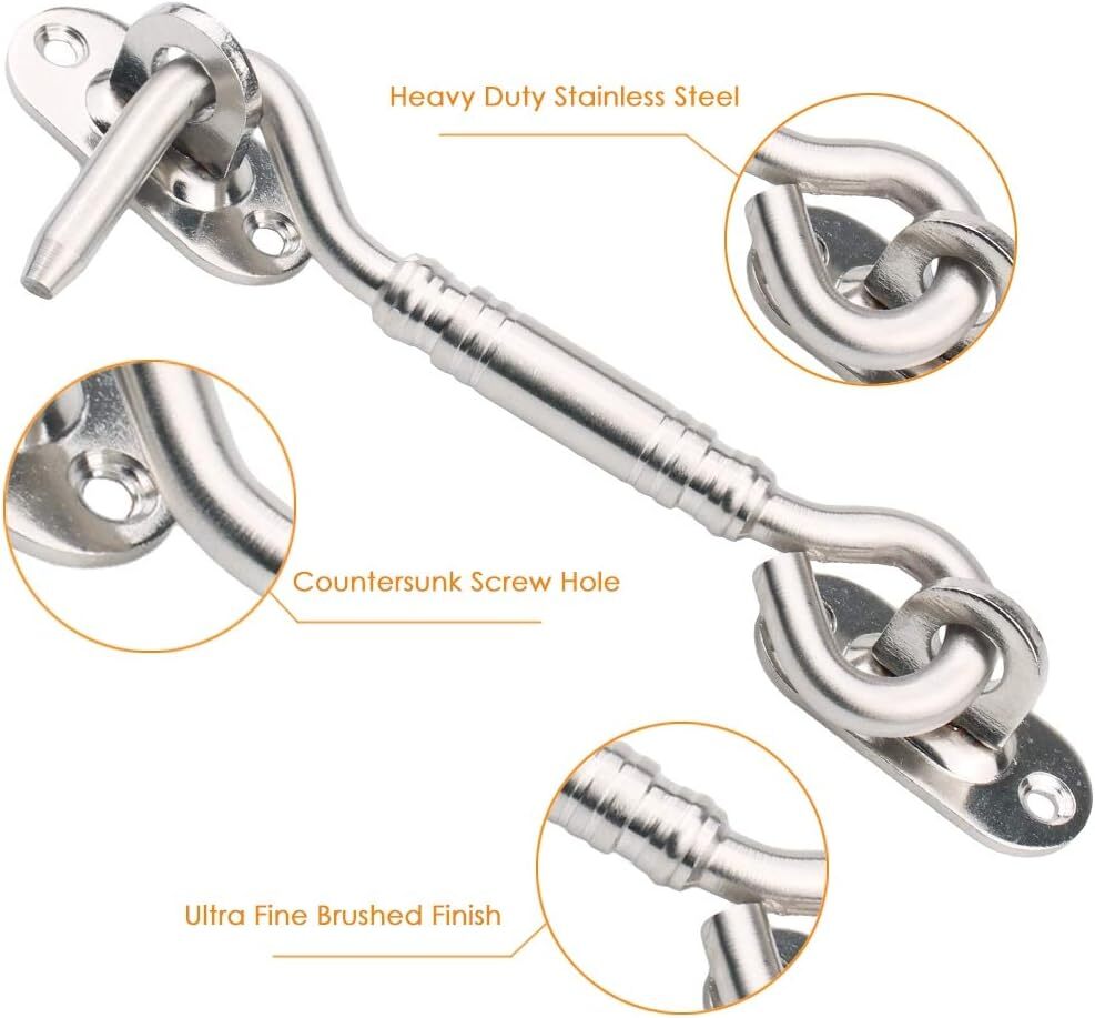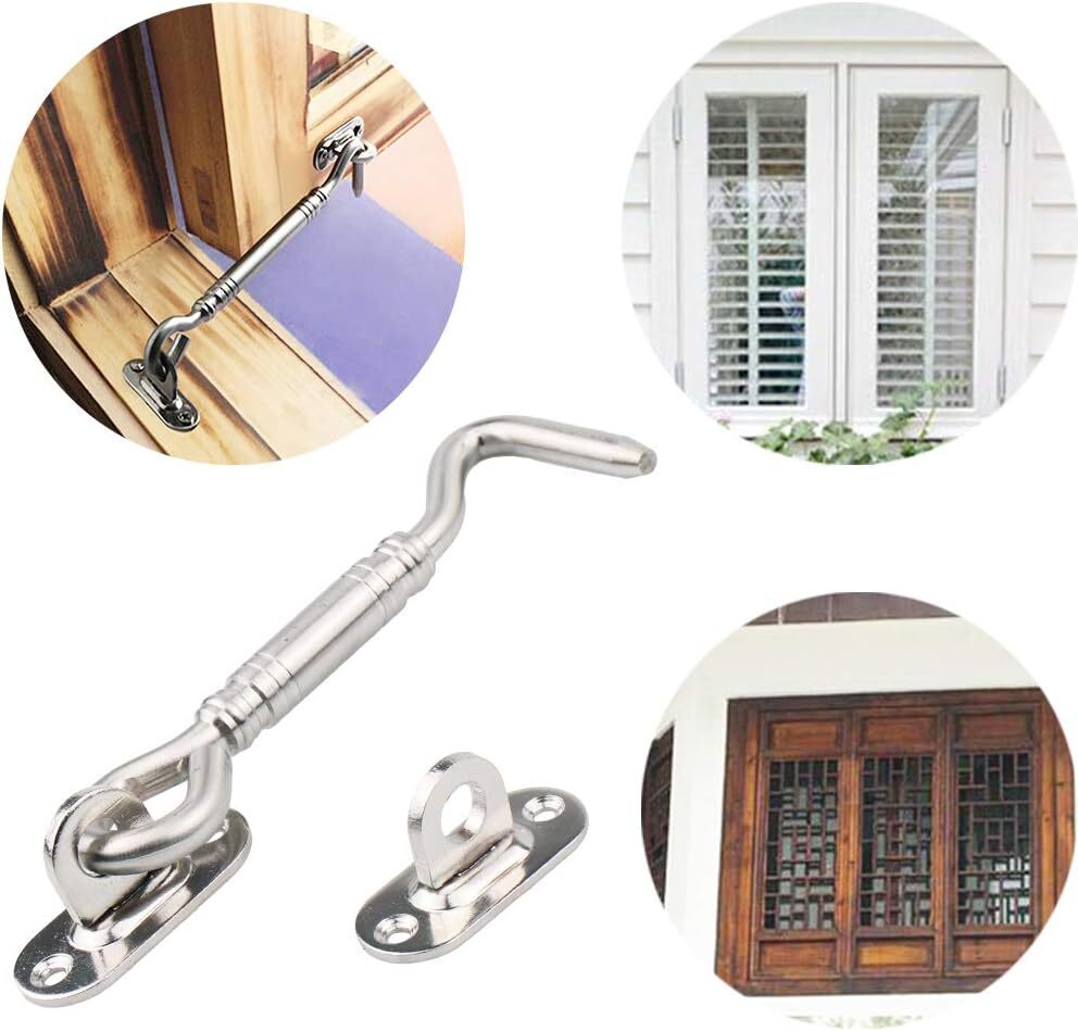 Stainless Steel Cabin Hook, Heavy Duty Eye Latch Lock, Swivel Gate Door Shed Ca STURDY AND DURABLE: Made of heavy duty stainless steel with maximum corrosion resistance and durability, the cabin hook and eye latches are made to provide easy additional security for years to come WIDE APPLICATIONS: The eye and hook locks are suitable for locking windows, shutters, barns, sliding and double doors, gates, garages and shed doors. The gate hook latch can also be used as a door stopper or make a great addition to kid proofing your house PRACTICAL AND CONVENIENT: Delicate design with smooth latching action allows you to open and close the latch easily. You can put it on the doors or windows and it will works wonderfully for keeping them from blowing open in wind or storms EASY INSTALLALTION: The sleek design with countersunk and symmetrical screw holes allows for quick and easy installation. Measuring 105 mm/4.1 inch in length, the installation position of the cabin hook eye latches can be adjusted according to your needs Shipping We offer FREE shipping on all orders! We ship within Three business days of payment, usually sooner. We use a selection of shipping services such as UPS, FedEx, USPS etc. We only ship to the lower 48 states, no APO/FPO addresses or PO Boxes allowed. Local pickups and combined shipping options are not provided at this time. Return You can return a product for up to 30 days from the date you purchased it. Any product you return must be in the same condition you received it and in the original packaging. Please keep the receipt. Customer satisfaction is very important to us. If you have any problem with your order, please contact us and we will do our best to make you satisfied. Contact Us If you have any queries, please contact us via ebay. We usually respond within 24 hours on weekdays. Please visit our eBay store to check out other items for sale! Thank you for shopping at our store.