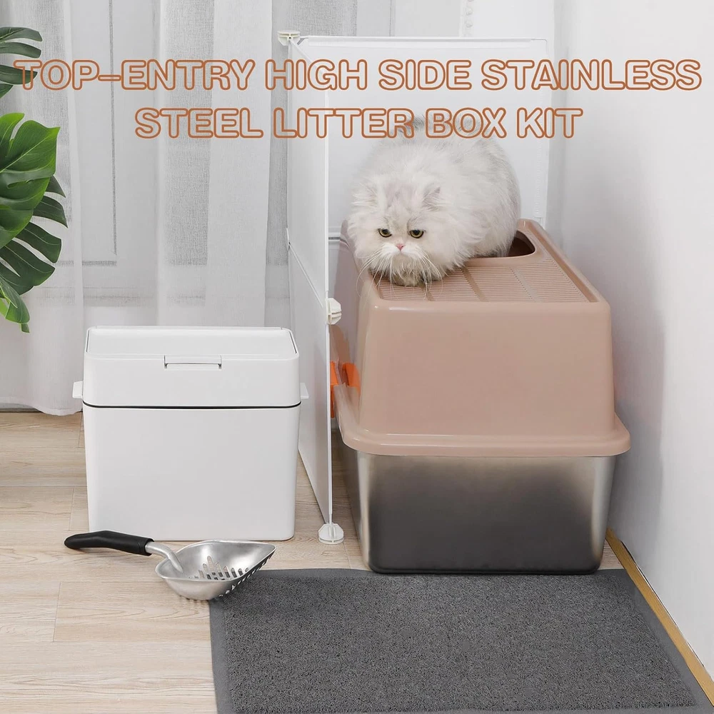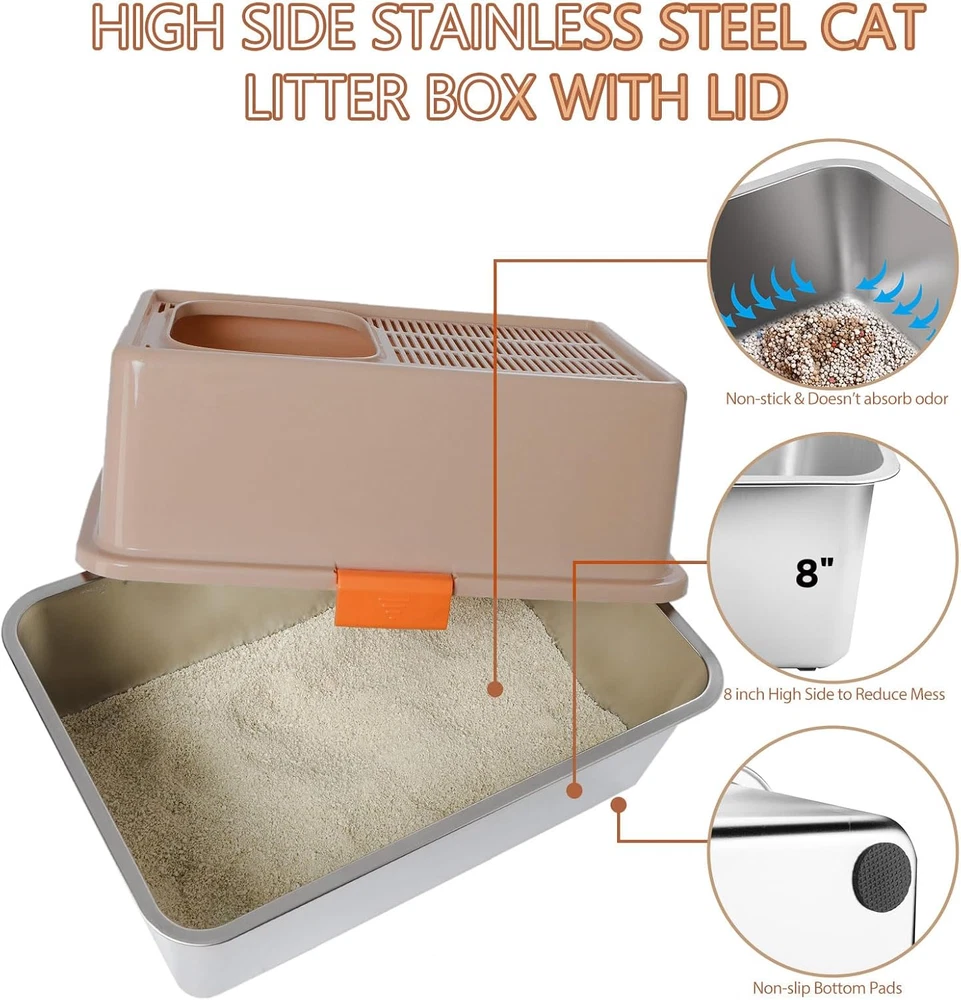 Store New Arrivals Add to Favorite View Feedback Contact Stainless Steel Cat Litter Box Top Entry XL with Lid Kit, 8'' High Side Metal Cat Litter Box for Big Cats with High Litter Box Enclosure, Litter Mat, Scoop & Trash Can, Non-Sticky, Easy Clean Description Item model number MP-CLB-LID Age Range Description All Life Stages Warranty Description 2 years Item Dimensions LxWxH 24.4 x 16.5 x 16.5 inches Color Silver Product Dimensions 24.4"L x 16.5"W x 16.5"H Material Stainless Steel, Plastic Country of Origin China Style Stylish Specific Uses for Product Indoor Item Weight 12 Pounds Target Species Cat Target Audience Keyword house-cats Model Name MP-CLB-LID Directions Cat Size X-Large Item Package Dimensions L x W x H 24.75 x 17 x 9.5 inches Included Components Sturdy Metal Cat Litter Scoop, Litter Box Enclosure, Litter Trash Can with Sealing Strips, Cat Litter Mat, Cat stainless steel litter box with lid 【Top Entry】The top entry cat litter box stainless steel means more privacy for your cat and less litter spillage. It also functions to keep other pets out of your cat's business. Attention : It’s ideal for cats under 12 lbs 【8" Deep Stainless Steel Litter Box for High Peeing Cat 】The stainless steel litter box high sides and totally 16" high can solve the problems that the cats urine and litter leaks to the floor. It never absorbs odors and stains, not rusting, non-sticky bottom 【Slot Design for Filtering Litter】The lid with many slots and grooves, acts as a litter mat on the top, will filter any litter of your cat's paws, just help the rest litter fall back into the litter box where it belongs 【Cat Litter Box Enclosure High Wall】The enclosure lead your cats to enter and exit from the passage with gaps for preventing cat litter from spilling on the floor, save litter and keep clean 【Sturdy Metal Cat Litter Scoop & Litter Trash Can with Sealing Strips】Large and heavy duty , a worthwhile metal scoop to have. The trash cans with seals strips can better hide odors and make your home fresher 【Cat Litter Mat】23.6 x 15.7 inches, help trap the litter better Product Description MEEXPAWS Extra Large Top Entry Litter Box with High Sides for Big Cats Top Entry : means more privacy for your cat and less litter spillage 8" Deep Stainless Steel Litter Box for High Peeing Cat Slot Design for Filtering Litter Special Buckle Design : make the top lid and stainless steel litter box connection more stable Cat Litter Box Enclosure High Wall Sturdy Metal Cat Litter Scoop & Litter Trash Can with Sealing Strips Easy to clean and non stick Large Top Entry Cat Litter Box KIT Package List : Stainless Steel Cat Litter Box with Lid Metal Cat litter scoop Cat litter mat Cat Litter Trash Can with Sealing Strips Cat Litter Box Enclosure High Wall Slot Design for Filtering Litter Filter any litter of your cat's paws Special Buckle Design MEEXPAWS top entry stainless steel litter box with lid equiped the buckle to make the top lid and stainless steel litter box connection more stable Large Space Non-slip Pads at the Bottom Non-Stick ABOUT US We offer the best prices around on high quality products. Our E-store includes media such as books, movies, music and games while offering electronics, toys, sporting apparel, clothing, tools, general home, garden items and more. SHIPPING We are always working hard to ensure your package arrives as soon as possible. Please understand that some factors like weather, high postal traffic, and the performance of shipping companies are outside of our control. We offer free shipping to the lower 48 states and ship within 2 business days of payment, usually sooner. We do not accept P.O. Boxes. Please provide a physical address. For shipping outside of the continental USA, we only use eBay's Global Shipping Program.The item is shipped to KY and then sent to the rest of the world. International customers are responsible for all duties and taxes. Continue to check out in order to calculate costs for shipping the item to your country. Messages regarding eBay's Global Shipping Program MUST be directed at eBay EXCLUSIVELY. RETURNS We offer a 30-Day Return Policy on items which you are not completely satisfied with. You have the option for a full-refund or an exchange of the item. No returns are available on items shipped outside of the USA. PAYMENT We accept PayPal. CONTACT US This page content is yet to come Please ad us to your favorite seller and visit again later Thank You CUSTOMER SATISFACTION We try our very best to make sure every customer is completely satisfied. If there's a problem, message us! We're happy to help. WE ACCEPT Copyright © 2021 AutoDS. | All Rights Reserved