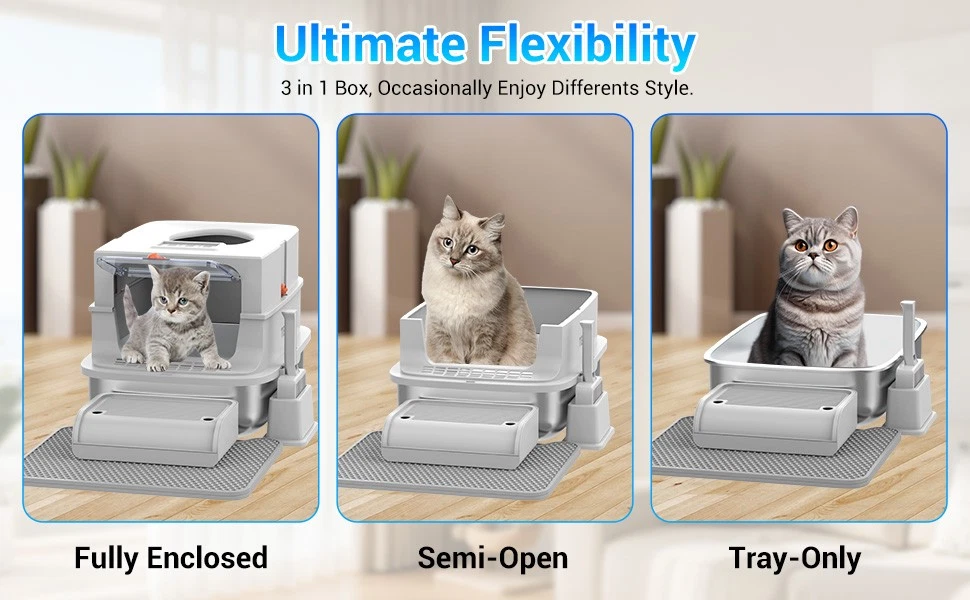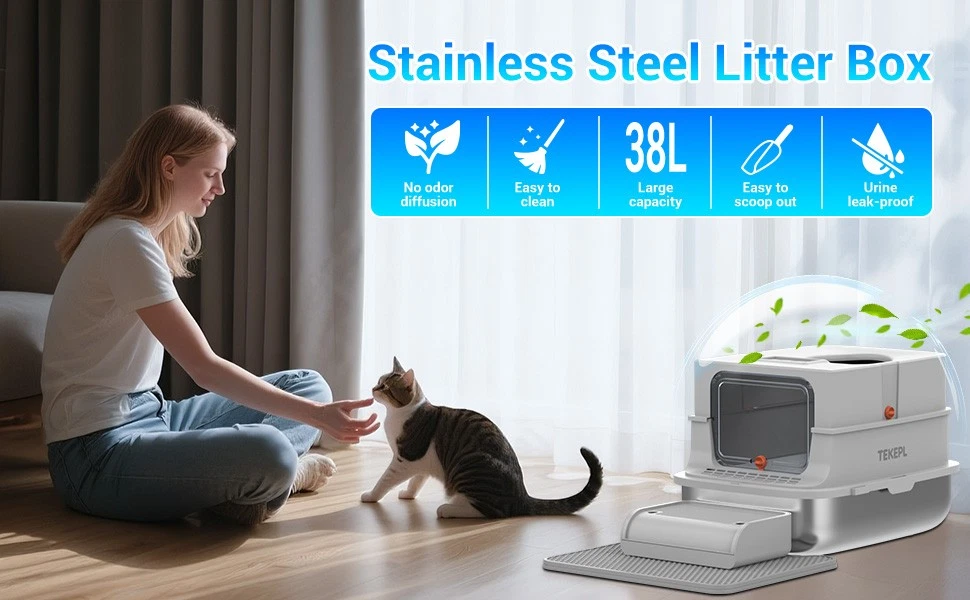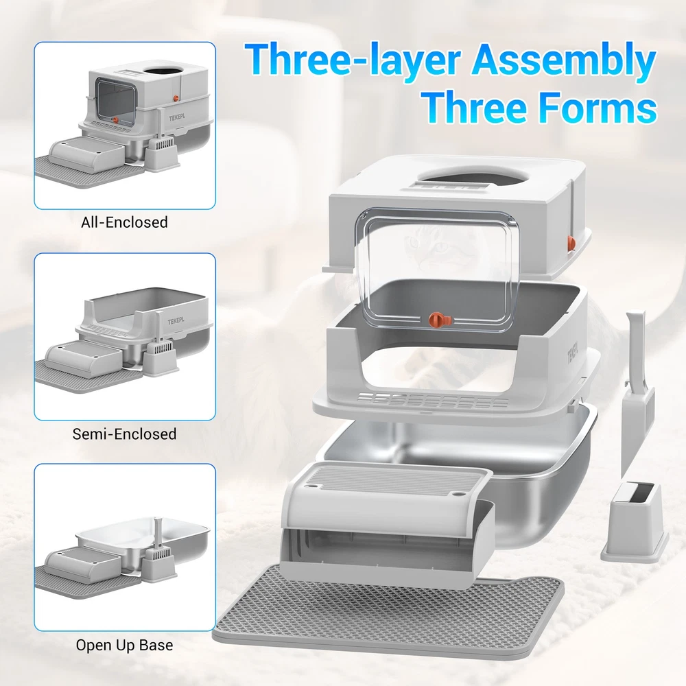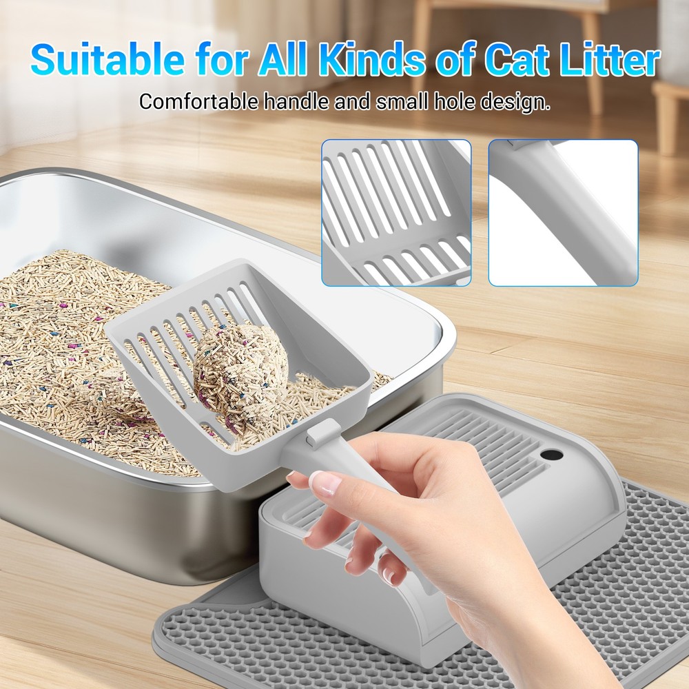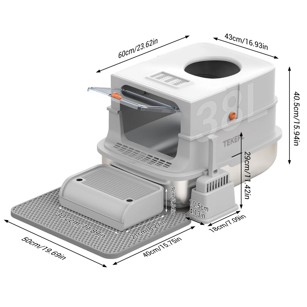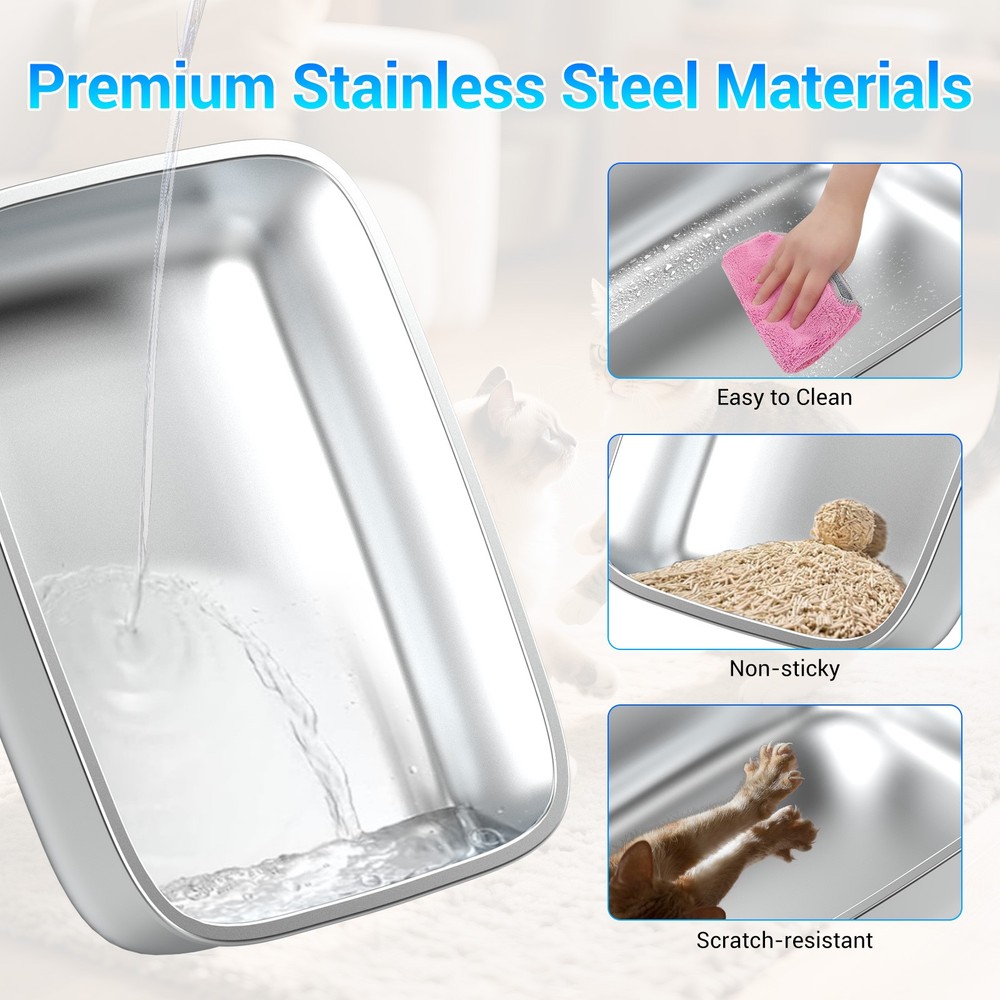 Stainless Steel Cat Litter Box XXL with Lid Enclosed High Sided Extra Litter Box Feature: Material: Stainless steel +PP+ABS Colour: Grey Maximum cat litter capacity: 20L Stainless steel basin dimensions: 58 x 42 x 15cm / 22.83 x 16.54 x 5.91in Middle shell dimensions: 59 x 42 x 13cm / 23.23 x 16.54 x 5.12in Top cover dimensions: 48 x 38 x 13.5cm / 18.9 x 14.96 x 5.31in Footboard step dimensions: 30.2 x 20 x 8.5cm / 11.89 x 7.87 x 3.35in Pad Dimensions: 50 x 40 x 0.5cm / 19.69 x 15.75 x 0.2in Door Dimensions: 27.6 x 20.7 x 1cm / 10.87 x 8.15 x 0.39in Assembled Dimensions: 58 x 42 x 40cm / 22.83 x 16.54 x 15.75in Installation Instructions: ① Attach the four non-slip mats to the bottom of the stainless steel basin. ② Install the door onto the top lid of the litter box. ③ Place the medium shell into the litter box. ④ Place the top lid on top of the medium shell. ⑤ Place the scoop into the designated litter scoop holder and insert it into the litter box. ⑥ Place the step and mat in front of the litter box. To install the bamboo charcoal bag (not included): Open the lid of the box by flipping it open, place the charcoal bag in the box, and secure the lid. Note : The cat litter replacement cycle is 30 days for one cat and 15 days for two cats. The optimal amount of cat litter is about 1.5 inches thick when spread evenly. Package Include: 1×Cat Litter Box 1×Cat Litter Scoop Shipping Payment Return and Refund Policy Feedback Help - Customer Support - Contac Shipping FREE SAME BUSINESS DAY MONDAY- FRIDAY SHIPPING FROM USA. No shipping on Weekends or US Public Holidays. No responsibility for any custom duty We will ship your order to your PayPal Verified address provided. Please verify your address and make sure that it is your current address before making your payment. Any address change requests after your payment CANNOT be guaranteed. Shipping information will be updated when available. All of our products can be shipped internationally. To confirm the shipping rates to your country please refer to eBay's Shipping Tab above. Any brokerage, customs, and duty fees associated with international shipments are the customer's responsibility and are not included in our shipping fee. A phone number is required for the customs documents. Failure to provide one will result in delays. We do not include an invoice or any advertising materials with our shipments. Payment Immediate payment is required. Shipping will be arranged within 1 business day once payment is cleared. To uphold a shipping speed, your order will be processed almost immediately. If you change your mind after your payment is confirmed, we will do our best to cancel the order, however, we CANNOT guarantee the cancellation. Return and Refund Policy 1. We stand behind our items and offer 30 days warranty . All items are in new and working condition unless specified otherwise elsewhere in the description. 2. All Returns - defective or otherwise - MUST BE PREAUTHORIZED to guarantee refund or exchange. Please contact us to get an authorization and return address. 3. Buyer agrees to pay for the cost of re-shipment for undeliverable or wrong addresses. 4. Buyer is responsible for Return Postage as well as a 20% restocking fee if return/replacement is not a result of our mistake such as wrong item. 5. Replacement or Refund will be made upon receipt of the returned item. Please include tracking number so we can process ASAP. If you do not wish to wait for a replacement, please repurchase the item. 6. ALL REFUNDS will be processed via PayPal. Please double check via PayPal history and transaction for confirmation. PayPal will send it back to whatever you used to pay within 3-5 days. Feedback We strive to provide the best products and services. Your positive feedback 5 stars DSR help us do better. If anything about your transaction did not meet expectations, please CONTACT US and give us the opportunity to make things right. We are always here to help. Help - Customer Support - Contac Please do not hesitate to CONTACT US . You can message 24/7 on eBay for all questions and inquiries. We will get back to you within 1-2 business days at the latest.