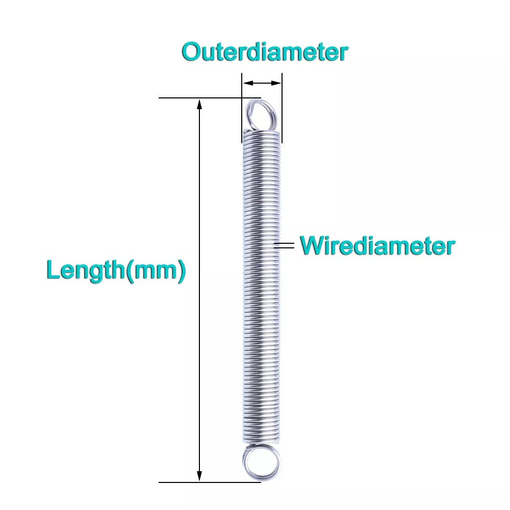Description: Size:Wire Diameter x Outer Diameter x Length Wire Diameter : 1mm Outer Diameter: 6mm - 12mm Length : 20mm - 300mm Material: Stainless Steel Color: Stainless steel color 【 High-quality material】 Our Extension Spring are made from high quality Stainless Steel which offers an excellent combination of properties. The high plasticity and fatigue resistance of this material ensures that our springs maintain their shape and performance even under the most demanding conditions. 【 High quality manufacturing】 Our Extension Springs are manufactured with precision and expertise to provide superior performance and reliability. They are designed to handle heavy loads and withstand repeated compression, making them ideal for various industries including automotive, aerospace, machinery and more. 【 Versatile Use】 Designed for various applications, our spring is mainly used for small springs or less critical larger springs operating at moderate temperatures. It is an ideal choice for automotive, agricultural and general machinery applications. 【 Customer Satisfaction】 We take customer satisfaction very seriously. Our dedicated customer service team is ready to assist you with any enquiries or concerns about our product. Rest assured that our product comes with reliable after-sales support. Package including: According to your choice.