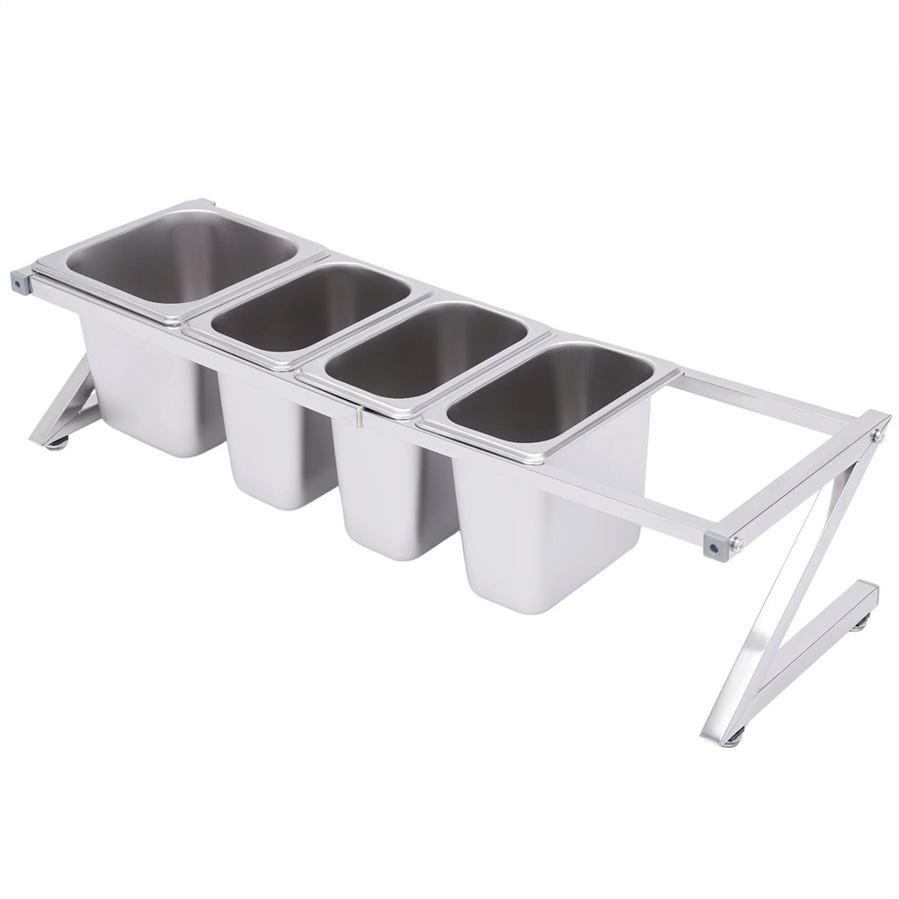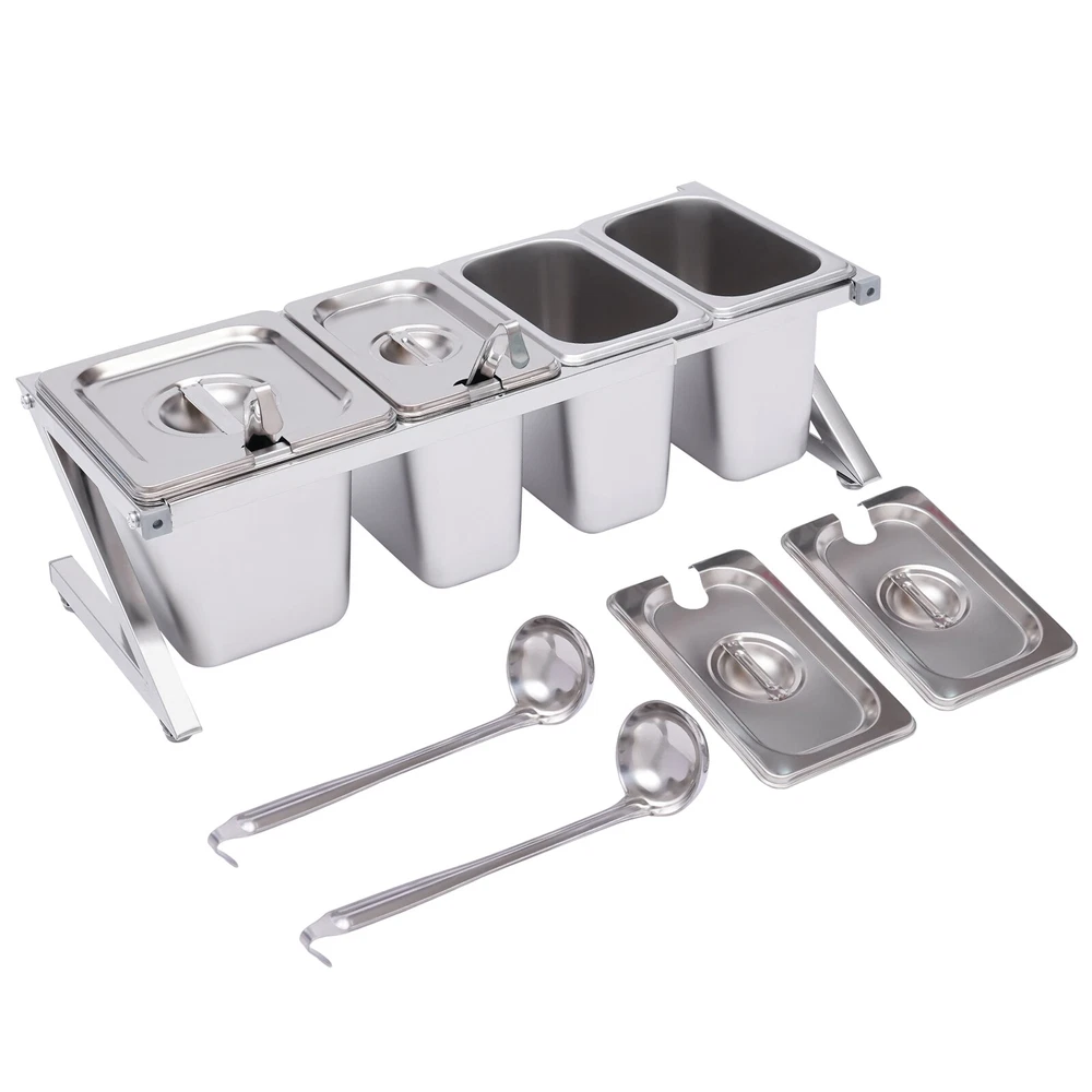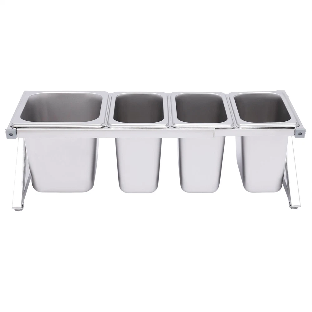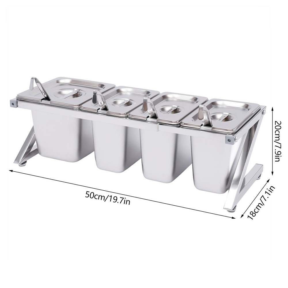 Commercial Seasoning Spice Rack Organizer Shelf for Restaurant Stainless Steel Welcom to alwaytty03 Description A neat, clean, and stylish kitchen need a user-friendly spice rack to store and organize your abundant spices for you. This sturdy and stable shelf not only effectively uses the vertical space of the countertop, but also easily avoids the embarrassment of tipping over the spice pan. This countertop inclined spice rack will give you a neat and comfortable kitchen to enjoy your cooking! Key Features High-quality Material: The shelf is made of high-quality 304 stainless steel, and the pans are made of 201 stainless steel, both of which are strong, wear-resistant, rust-resistant, and corrosion-resistant to ensure long service life. Wide Application: The stable performance of stainless steel is resistant to acids and alkalis, making it suitable for a variety of seasonings and safe for use in dishwashers, ovens, and freezers. Large Capacity: With a total of one 1/6 pans (2.32 Qt) and three 1/9 pans (1.69 Qt), this countertop spice rack set can be used not only for everyday household needs but also in restaurants and canteens. The large capacity also eliminates the need for frequent refilling. Telescoping Shelf: The support telescoping tube is adjustable in length (14.17-23.6in), allowing you to choose the number of pans to hold depending on your needs, as well as slide the pans to the left or right for easy access as you wish. Space Saving: It makes good use of the vertical space of the countertop to organize your kitchen spices or sauces in an orderly manner, keeping your kitchen neat and tidy High Load-bearing Capacity: Compared with directly placing the food pans on the tabletop, which tends to be knocked over or overturned, this frame adopts durable stainless steel and provides firm support. It ensures a good load-bearing capacity and can stably accommodate multiple filled pans. Easy to Install: Its simple structure and complete screw accessories allow you to easily complete the installation. All you have to do is attach and tighten the shelf with the screws provided, saving you time and effort. Easy to Clean: The removable pans and the electrolytic processed stainless steel, make cleaning a breeze. You can clean it directly with water without taking too much time. Easy to Store: The detachable shelf and stackable pans will easily fit in any wall cabinet without taking up too much space. Customer Service: We aim to provide quality products and services. If you have any problems, please feel free to contact us. We will reply and solve the problem for you as soon as possible. Details Practical Lid: Each pan comes with a lid to protect the spices from dust and moisture, maintaining the hygiene and quality of the spices. A recess on the lid ensures that the spoon is securely placed without affecting the seal of the lid. In addition, the top of the lid is designed with a handle for your convenience. Adjustable Foot Pad: The adjustable non-slip feet at the bottom adapt well to uneven countertops, making placement stable without tilting or slipping. It also protects the countertop from scratching. Rounded Corners: The rounded corners and smooth polished edges without burrs protect your hands from scratches and scrapes, making them more secure to use. Practical Ladles : Each pan is equipped with a ladle to avoid mixing spices. The ladle also makes it easier to control the number of spices precisely for a delicious meal. Application It is widely used in the home or commercial kitchens, canteens, pantries, cafes, beverage stores, and restaurants to store condiments, spices, sauces, jams, sweet soups, coffee beans, sugar, nuts, grains, etc. Specification Shelf Material: 304 Stainless Steel Pan Material: 201 Stainless Steel Color: Silver Installation Type: Freestanding Process: Polished, Electrolysis Special Feature: Expandable Spice Rack Number of Shelves: 1 Food Pan Quantity: 3 x 1/9 Pans + 1 x 1/6 Pan 1/9 Pan Dimensions: 17.5*11*15cm/6.88*4.33*5.9in 1/9 Pan Capacity: 1.6L/1.69Qt 1/6 Pan Dimensions: 17.5*16.5*15cm/6.88*6.49*5.9in 1/6 Pan Capacity: 2.2L/2.32Qt Shelf Dimension: 50*18*20cm/19.7*7.1*7.9in Shelf Length Range: 36-60cm/14.17-23.6in Packing Size: 43*32*22cm/17*12.6*8.7in Gross Weight: 3.5kg/7.7lbs Net Weight: 3.1kg/6.8lbs Package Included 2 x Side Support Frames 2* Telescopic Tubes 3 x 1/9 Pans 1 x 1/6 Pan 4 x Ladles 4 x Lids 4 x Adjustable Foot Pads All Accessories Required for Installation Notes Please note that the shelf can only be adjusted to a maximum of 60cm/23.6in. Please allow the slight color difference caused by the shooting light and 1-3cm error due to manual measurement, and make sure you do not mind before you order. Payment Delivery details Terms of sales About us Contact us Payment We accept ebay payment 。 Fees such as import duties, taxes are not included in the item price or shipping costs. These charges are the buyer's responsibility. Delivery details Shipping: 2-9 working days to: USA Terms of sales We maintain high standards of excellence and strive for hundred percent customer satisfaction. Feedback is very important to us. We hope that you contact us immediately before you give neutral or negative feedback, so that we can address your concerns. It is impossible to address issues if we do not know about them! About us Your satis faction is our ultimate goal. We work hard to earn your trust and future business. Our certified technicians have tested each item before shipping. The unit comes with 1 year limited warranty on all manufacturing defects. a) If you receive a defective item, you may return it or ask for a discount. Please contact us within 14 days after you receive the package. b) What you returned must be intact and in its original packaging as re? u. Customer is responsible for shipping costs of the returned item. c) We will cover the cost of shipping back t with the shipping rate indicated in the registration page. We will send you a new unit or r