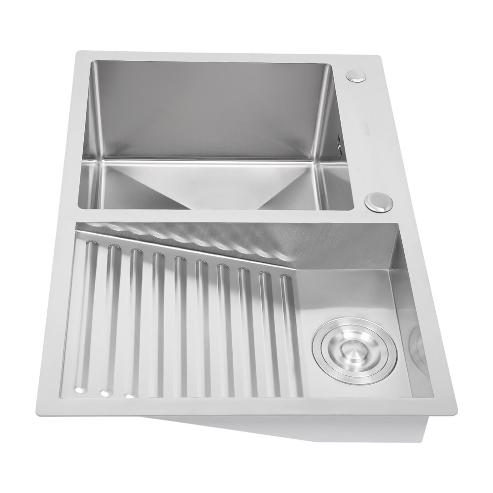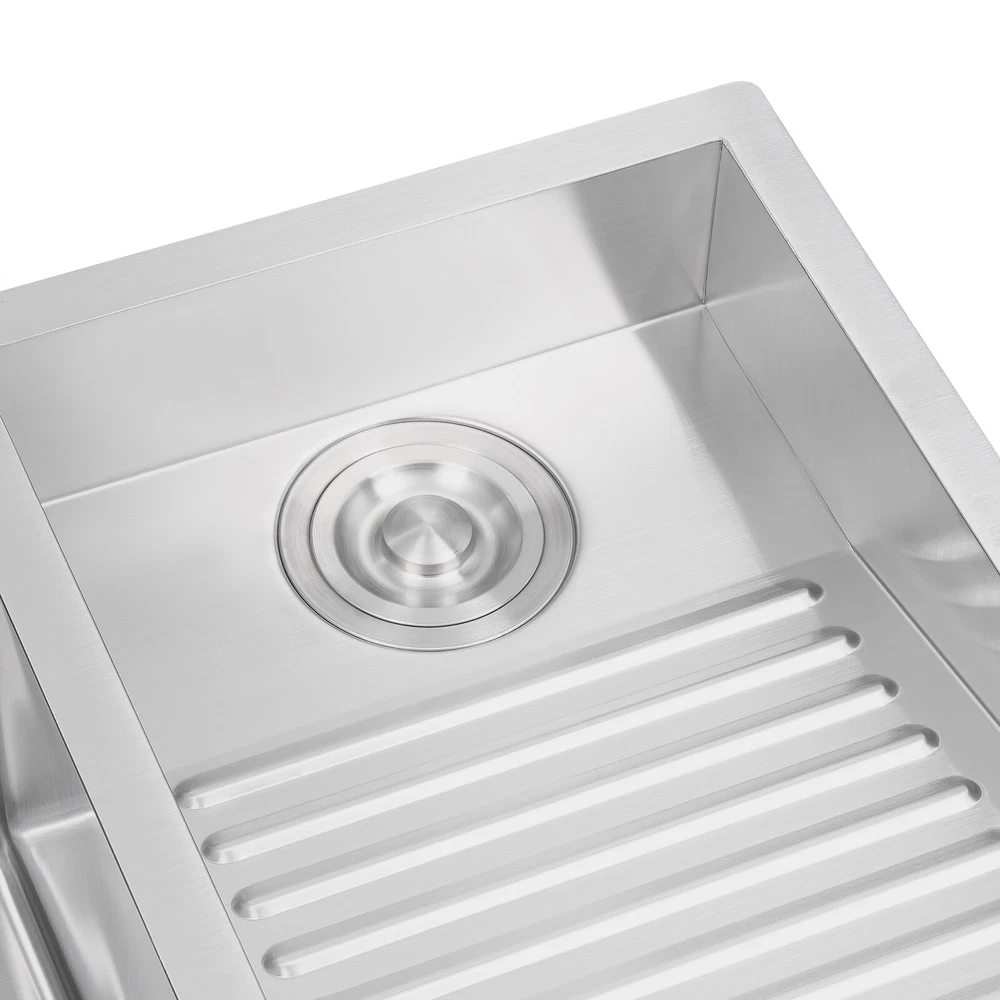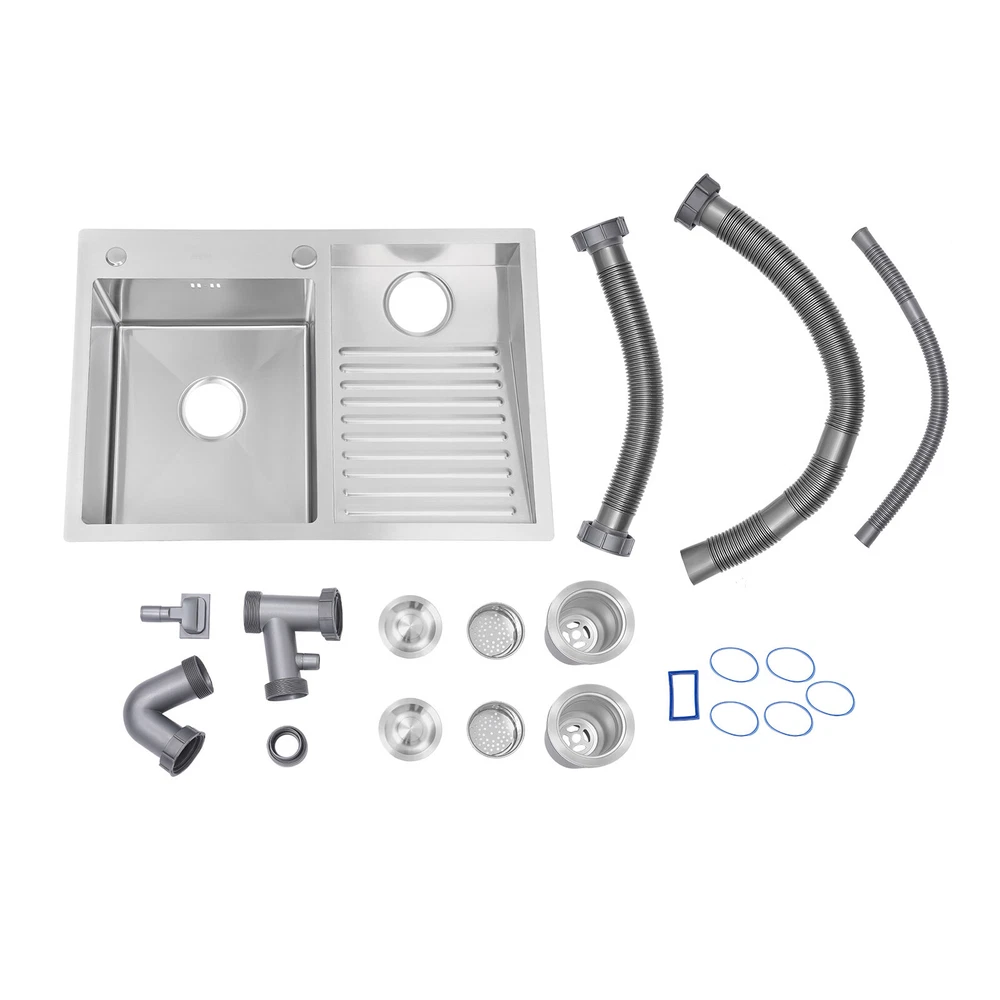 Double Laundry Sink Stainless Steel Laundry Sink W/ X-shaped Water Guiding Line Description This laundry sink is made of high-quality materials that are sturdy and durable. It features double basins including a large capacity wash basin and washboard basin, which can meet your various needs such as soaking, scrubbing, and so on. It adopts X-shaped water guiding lines, anti-overflow holes, and other thoughtful designs to give it excellent drainage performance, making it a good helper for your cleaning. With it, you can enjoy a more convenient life. Key Features Build to Last: The 304 stainless steel and the wire drawing process make this product wear-resistant, corrosion-resistant , sturdy, and less prone to rusting, so it can be used in wet environments such as the kitchen and laundry room. Multifunctional: The product is designed with double basins. The left side features an 8.7-in deep wash basin allowing you to soak, rinse, and scrub bulky clothes with ease, while the right side tilting wave washboard (tilting angle: 14°) effectively removes stubborn stains and helps you to wash your clothes quickly. Whether you're doing laundry or housework, this product will meet your needs and save you time and energy by easily completing tough cleaning tasks. Thoughtful Design : The anti-condensation coating can prevent the kitchen cabinet from getting wet and moldy. The sound insulation layer can effectively reduce noise. Carefully Designed: The anti-spill holes can reduce the risk of overflowing water. Even if you forget to turn off the water, you don't have to worry. The X-shaped water guiding lines can guide water flow and form vortices to achieve rapid drainage. Excellent Sealing Performance: These sealing rings can make the connection tighter, effectively reducing water leakage and saving you costs. Excellent Odor-resistance Performance: The drainage strainer intercepts food and debris for easy disposal and prevents clogging. The special V-shaped drain pipe drains faster and the standing water in it forms a natural barrier against insects and odors. You don't have to worry about being troubled by the unpleasant smell. Stylish Appearance: The sleek silver finish makes it look modern and stylish to blend in with different decor styles and adds a touch of decor to your space. Assembly in a Breeze: Complete installation accessories and a simple structure allow you to complete the assembly in a short time. Effortless Cleaning: The smooth stainless steel surface can be kept clean by wiping it with a soft cloth and neutral soap. The R-shaped round corner of the basin eliminates the dead corner of dirt accumulation for easy cleaning. Protective Package: To prevent the product from being damaged during transportation, we packed it with foam to protect your products to the maximum extent possible. Details Pre-drilled Holes: With two pre-drilled holes, you can easily install the faucet and soap dispenser (both not included). Flexible PP Drainpipe: Made of PP, it is wear- resistant and durable. Depending on the installation position, you can also freely bend it for your convenience. Application It is suitable for laundry rooms, utility rooms, kitchens, balconies, or outdoor use. Specifications Material: 304 Stainless Steel, PP Process: Wire Drawing Color: Silver Style: Modern Shape: Rectangular Installation Type: Topmount, Undermount, Flushmount Assembly Required: Yes Number of Basins: 2 Washboard Titling Angle: 14° Wash Basin Depth: 22cm/8.7in Gross Weight: 9kg/19.84lbs Overall Product Size: 70*48cm/27.5*18.9in Wash Basin Size: 37.6*33.8cm/14.8*13.3in Washboard Basin Size: 43.2*29cm/17*11.4in Package Size: 76*53.5*27cm/30*21.06*10.63in Package Included 1* Laundry Sink All Accessories for Installation Notes Please note that this package does not include the faucet. Please do not use strong acids or alkalis to clean items in the sink, and do not put hard objects or rusty metal in contact with the sink for a long time, keep the sink clean by cleaning the tank and drying it with a rag after each use. To increase the life of the sink, please do not scratch its surface with sharp objects. Please allow the slight color difference caused by the shooting light and 1-3cm error due to manual measurement, and make sure you do not mind before you order. Payment Delivery details Terms of sales About us Contact us Payment We accept ebay payment 。 Fees such as import duties, taxes are not included in the item price or shipping costs. These charges are the buyer's responsibility. Delivery details Shipping: 2-9 working days to: USA Terms of sales We maintain high standards of excellence and strive for hundred percent customer satisfaction. Feedback is very important to us. We hope that you contact us immediately before you give neutral or negative feedback, so that we can address your concerns. It is impossible to address issues if we do not know about them! About us Your satis faction is our ultimate goal. We work hard to earn your trust and future business. Our certified technicians have tested each item before shipping. The unit comes with 1 year limited warranty on all manufacturing defects. a) If you receive a defective item, you may return it or ask for a discount. Please contact us within 14 days after you receive the package. b) What you returned must be intact and in its original packaging as re? u. Customer is responsible for shipping costs of the returned item. c) We will cover the cost of shipping back t with the shipping rate indicated in the registration page. We will send you a new unit or refund the full payment you paid. Thank you. Contact us Business Hour Business Hour: Monday To Friday: 8:30 AM to 5:00 PM (Beijing China time) Due to time zones, our reply to your questions may not be immediately. But within above working time, we will reply your email within 24 hours. If it's non-workdays, please kindly be patient and wait till Monday. Please contact us with ebay message. Please feel free to contac