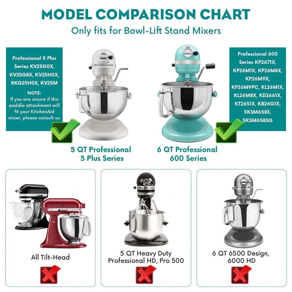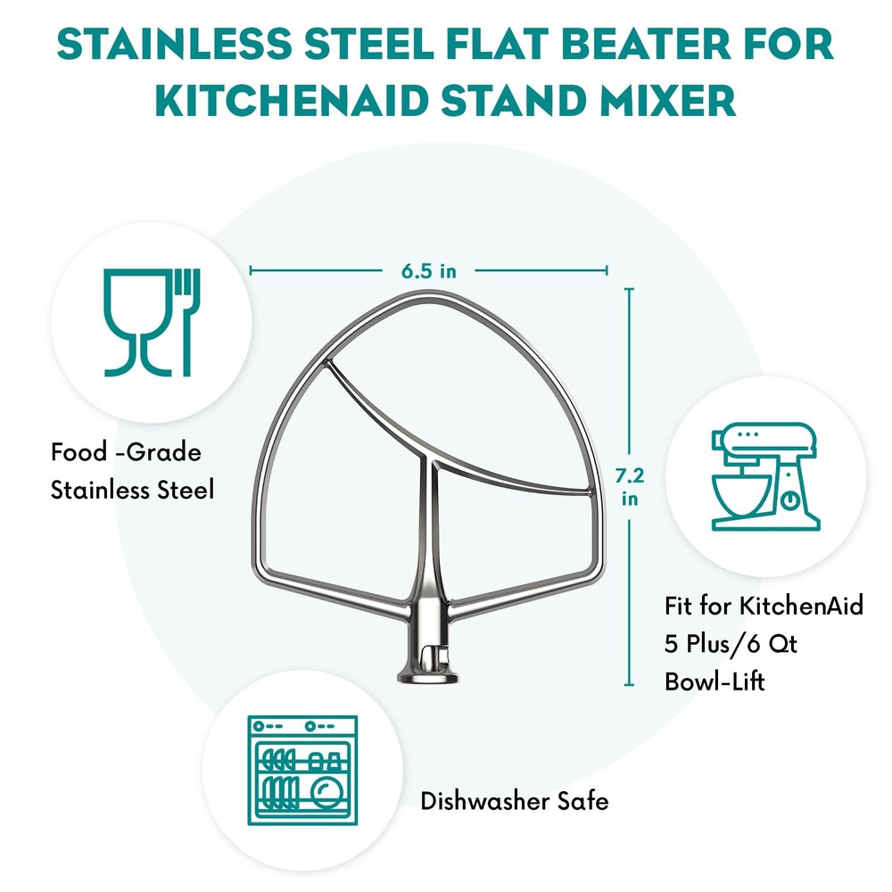 Upgrade Your Baking with stainless steel paddle attachment for kitchenAid mixers. Premium 304 Stainless Steel – Made from food-grade, rust-resistant 304 stainless steel, this paddle attachment is stronger and more durable than plastic beaters. No peeling, no cracking—just safe, healthy mixing for perfect results every time. Faster, Smarter Mixing – Designed to scrape, blend, and knead with precision, this attachment reduces mixing time by up to 50% while ensuring even consistency. Perfect for buttercream, cookie dough, bread, pizza, and pasta—no more hand fatigue. Flex edge beater for kitchenaid mixer perfect Fit for your kitchen – Compatible with 5-qt & 6-qt Bowl-Lift Mixers(Professional 600, 5 Plus, and 6-Quart models). Not sure if it fits? Just ask—we’re happy to help. Bakery-Quality Results– Whether you're whipping up fluffy cakes, silky frostings, or sturdy pasta dough, this paddle delivers smoother, faster, and more efficient mixing than standard beaters. Kitchen aid paddle for mixer easy to clean & dishwasher Safe – Polished stainless steel wipes clean effortlessly, or simply toss it in the dishwasher for hassle-free cleanup. The kitchen aid mixers accessories 1-Year Warranty & Reliable Support – We stand by our product! If you have any questions, our customer service team is ready to assist 【High quality stainless steel material】 The paddle attachment for kitchenaid mixer is made of food-grade 304 stainless steel, the material is stronger and more durable than plastic. And you don't have to worry about cracking and peeling of the paint coating when using attachment for kitchenaid mixers for a long period of time, which ensures the health of the mixing and brings you a better baking experience 【Strong compatibility】The Stainless Steel Kitchenaid Attachments fits Professional 5 Plus Series and 6 quart Professional 600 Series mixers. Professional 5 Plus Series: KV25G0X, KV25G8X, KV25H0X, RKG25H0X, KV25M. Professional 600 Series: KP2671X, KP26M1X, KP26M8X, KP26M9X, KP26M9PC, KL26M1X, KL26M8X, KD2661X, KT2651X, KB26G1X, 5KSM6583, 5KSM6585G. If you are unsure this kitchen aid paddle matches your Kitchen Aid mixer, please contact us 【New upgraded design】This paddle attachment for kitchenaid mixer easy to install, stable operation, safety clasp design allows it to mix in the mixing bowl without wobbling, ensuring thorough mixing without scratching the mixing bowl. Polished surface makes attachment for kitchenaid mixers easy to clean and dishwasher safe 【Save time】For kitchenaid paddle attachment is a great helper for baking, which can help you make bread, cakes, cookies, pizzas and all kinds of baked goods easily. This flex edge beater kitchenaid mixes the dough quickly and efficiently, relaxing your hands and saving time. The kitchen aid mixers accessories makes your cooking process easier and more enjoyable 【After-Sales Service】The stainless steel flex edge beater for kitchenaid mixer is designed for the baking enthusiast, so that every mixing is precise and efficient. With a 1-year service guarantee, if you have any problems about using paddle attachment for kitchenaid mixer,you can ask us for advice