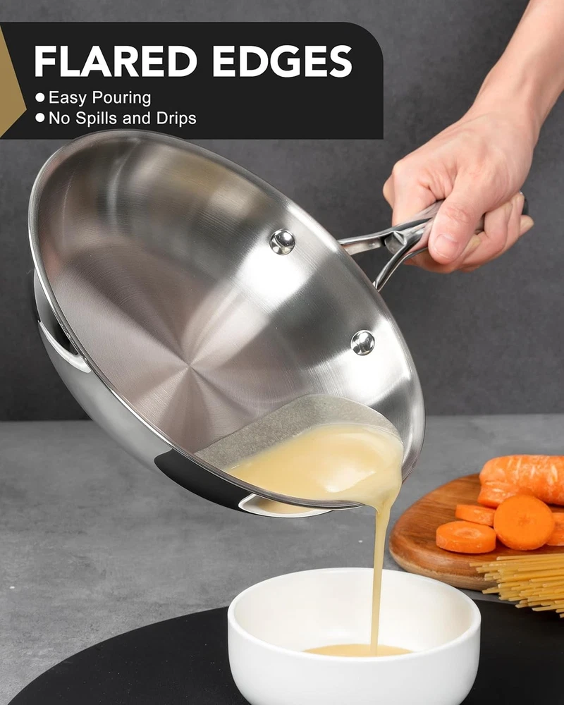 MICHELANGELO Stainless Steel Frying Pan Set with Lid, 8" 10" 8-10 Inch+Lid Product Details Material: Stainless Steel Brand: MICHELANGELO Size: 8-10 Inch+Lid Handle Material: Stainless Steel Is Dishwasher Safe: Yes Is Oven Safe: Yes With Lid: Yes Special Feature: Non Toxic Product Dimensions: 17.72 x 10.24 x 1.77 inches Item Weight: 6.34 pounds Country of Origin: China From Searing to Simmering in One Set – The 8 inch stainless steel pan handles quick tasks, while the 10 inch frying pan with lid excels at braising, steaming, and saucy dishes. Durable Construction: Crafted from high-quality 18/10 stainless steel, this frying pan set is built to last. Resistant to rust and corrosion, these pans ensure long-term performance for all your cooking needs. Healthy Cooking Made Easy: The 10 inch skillet with lid locks in moisture for perfect veggies, chicken, or rice—ideal for health-conscious cooks. Even Heat Distribution: Enjoy consistent cooking results with our stainless steel pans, designed for even heat distribution. Eliminate hot spots and enhance your culinary creations with perfectly cooked meals every time. Comfortable Handling: Featuring ergonomic, heat-resistant handles, these pans offer a secure grip for safe and comfortable cooking. Cook with confidence and ease, no matter the task. Effortless Cleanup: Cleaning is a breeze with our smooth, dishwasher-safe surface. Spend less time scrubbing and more time enjoying your meals, making it ideal for busy home cooks.