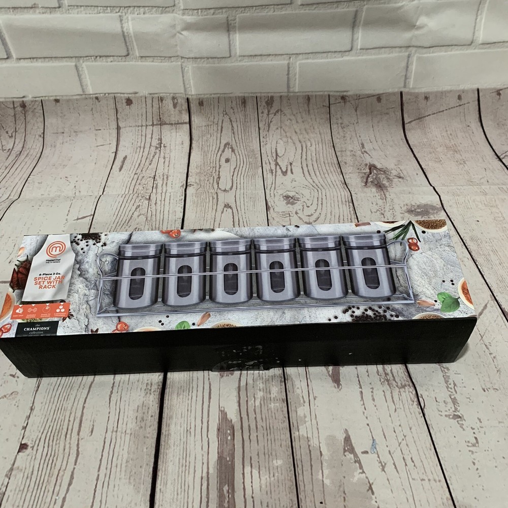 Master Chef Stainless Steel & Glass Spice Jar Set with Rack New Set Of 6