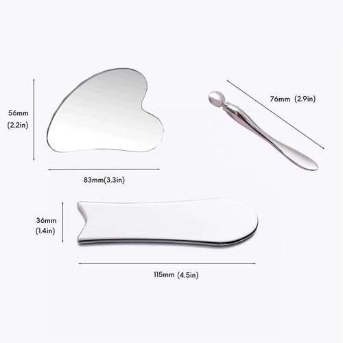 Stainless Steel Gua Sha Facial Tools 3 in 1 with Pouch,Facial Massage Tool Kit for Women’s Skincare Routine, Brighten and Sculpt Your Skin,Reduce Inflammation and Puffiness, Silver Product Features Quality & Durability: MOKIUER Gua Sha facial tool kit are made from high-quality 100% stainless steel and are durable and long-lasting. Unlike traditional Gua Sha stone, jade, and buffalo horn tools, No need to worry about breakage. tainless steel Gua Sha tool is polished to a high shine, smooth, and effortless to clean, making it a more hygienic option for skincare. Simply wash it with soap and water to keep it spotlessly clean and ensure a long lifespan. Wide range of applications: Gua Sha metal set for the whole body, can be used on the face, legs, fingers, arms, neck, etc.relieves muscle tension and improves lymphatic drainage with the Gua Sha massage ritual; effective in promoting blood circulation and treating soft tissue injuries. Enjoy the pleasure of different temperatures: experience the cool sensation of Guasha steel scrapers that instantly calm your body and mind,or gently warm them to enjoy personalized heat therapy. The perfect gift: This facial scraping tool is the ideal gift for those who love life and are always striving for good health.Whether it's a Christmas gift or a Valentine's Day gift, it's an excellent choice. Shipping: Shipping is complimentary within the lower 48 US States. We Do Not Ship to PO/APO Boxes, HI or Alaska We Do Not Ship Outside of the Continental US All items ship within 24-72 hours of Payment For large items that require Freight shipping a valid phone number is required to call and schedule your delivery Terms of Sale and Feedback: Feedback is extremely important to us and eBay If you are satisfied with our transaction, please take a moment to leave Positive Feedback. YOUR Satisfaction is our #1 Priority! If there are any issues, PLEASE contact us BEFORE leaving a neutral or negative rating so that we may resolve any concerns. We PROMISE we can make you happy if you give us a fair chance. Returns / Concerns: All items qualify for returns within 14 - 30 days of receipt. Buyer is responsible for return shipping on any item that is not damaged Please be sure this is an item you want before making your purchase. Customer Satisfaction is our TOP priority! All items are IN STOCK at time of listing. Inventory on eBay changes constantly and it is impossible to maintain a perfectly accurate count of all items. Please do not penalize us if we have to issue you a refund! Thank You For Your Business!