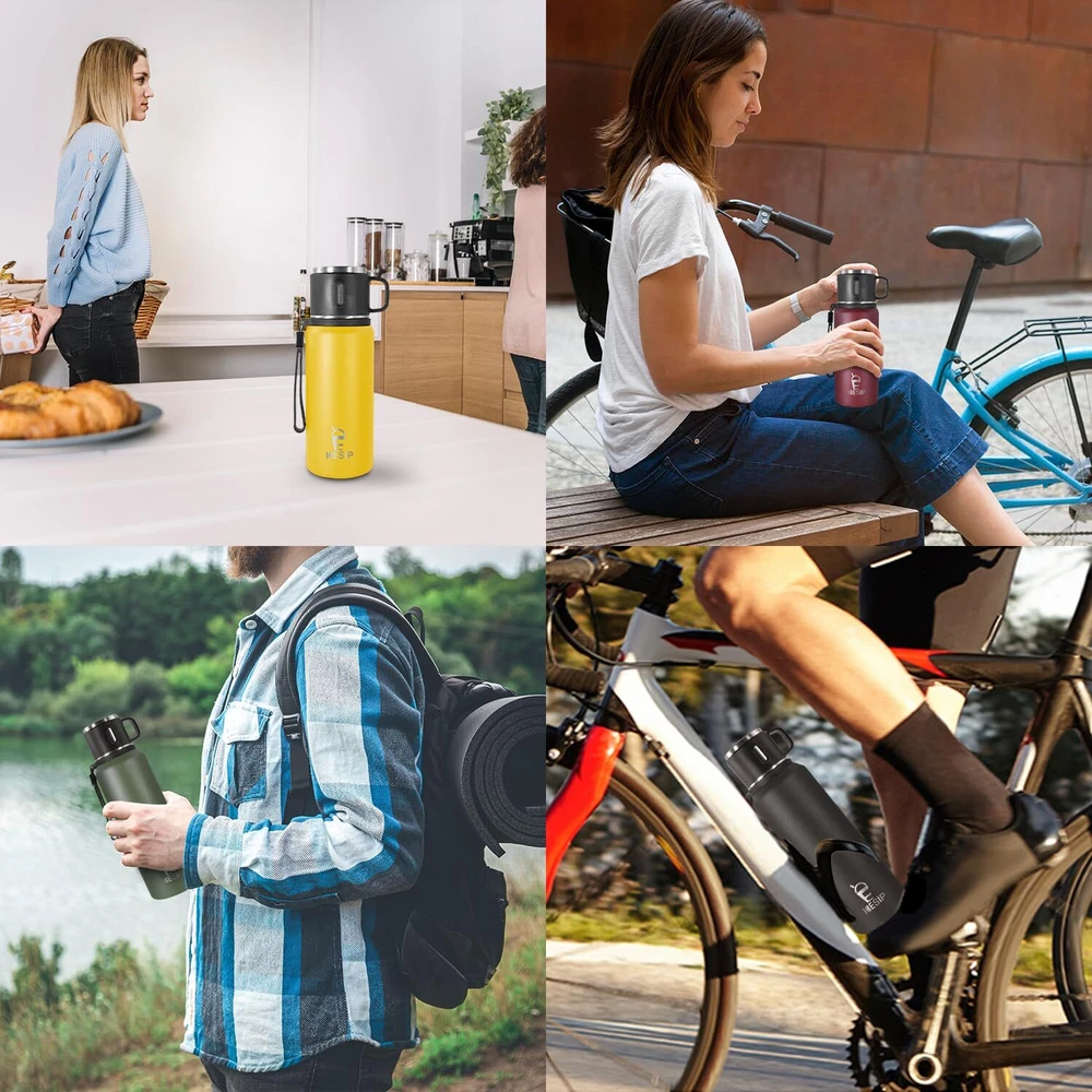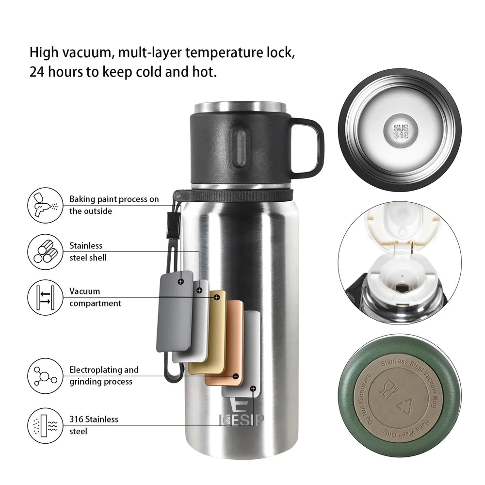 ☕【HOT AND COLD WATER BOTTLE】: Our Vacuum Insulated Water Bottle is the perfect everyday travel mug for your hot & cold beverages. Designed with high-quality 316 stainless steel, this tea & coffee bottle will maintain your beverage's temperature for up to 12 HOURS! Additionally, Thermos hot drinks comes with a cup for easy drinking, adding to its versatility. 🍵【Leak-Proof Worry Free】: The thermos bottle mouth has a food-grade silicone seals, that effectively prevent the insulated cup from leaking, so worry free about the insulated bottle will spill to wet your bag, desk, car, etc. 🧊【Hot-Proof Protect Hands】: The travel thermos owns high effect on insulation & hot-proof - stainless steel vacuum double-wall liner for best insulation, bottle body adopts matte non-slip coating for well grip hold and hot-proof to protect your hands. ☕【Easy to carry】:Our stainless steel water bottle is very suitable for daily use and can be taken with you,SuchasHiking,Biking,Beach,Camping,Travel,School or company,Put the portable hot drink cup in the side pocket of your backpack or as a daily companion to help you stay healthy and hydrated. 🍵【Perfect Gifts】:It is a good choice to express your care for friends and family with beautiful and practical gifts,Perfect gift for birthday,Christmas, Anniversary or other celebrations.