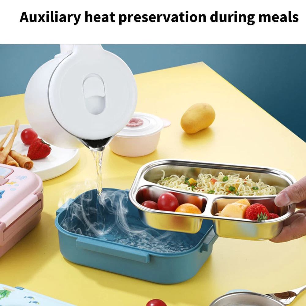 Feature: 1. Our lunch box is lined with a sealed silicone , and the compartment is designed so each compartment is independent, which can ensure that the food does not leak or smell. 2. Good heat preservation effect, please heat the bottom with hot water before putting hot food. After the food is put in, it can keep warm for a long time without cooling down quickly. 3. Easy to clean, the lunch box can be placed in the dishwasher for cleaning. The cover with rubber sealing is recommended to be cleaned separately to extend the sealing performance of the gasket. 4. Made of 304 stainless steel, this is the best snack container for packaging healthy food. Food‑safe materials, reliable and durable, can ensure the health of you and your family. 5. Comes with a portable handle box cover, easy to carry. Upgrade the spoon slot cover to store the spoon for easy carrying. Specification: Item Type: Lunch Box Weight: Approx. 663g / 23.3oz Material: Stainless Steel Package List: 1 x Lunch Box 2 x Lid (1 x Large Lid + 1 x Small Lid) 1 x Spoon 1 x Inner Compartment