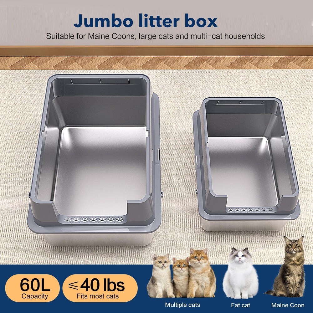 Tap here to read more about Stainless Steel Litter Box , 28L*20W*12H XXL Extra Large Litter Boxes with li... BUY WITH CONFIDENCE 100K+ Satisfied Buyers as your satisfaction is our top priority with easy returns, and dedicated support. FAST & RELIABLE SHIPPING All orders are processed quickly with reliable shipping partners. Most items ship within 24 hours. 20+ YEARS OF EXPERIENCE We pride ourselves on serving customers worldwide for over 20 years at lowest Possible Prices. Stainless Steel Litter Box , 28L*20W*12H XXL Extra Large Litter Boxes with li... Tap here to read more about Stainless Steel Litter Box , 28L*20W*12H XXL Extra Large Litter Boxes with li... 【Extra Large Stainless Steel Cat Litter Box】: This XXXL metal cat litter box with lid measures 28"L*20"W*12"H, which is much larger than the cat litter boxes on the market. It is specially designed for Maine Coons, Ragdoll cats, large cats and multi-cat households. The spacious space allows cats to move comfortably and can hold 60 liters of cat litter, which is enough for adult cats to use for 60 days. You no longer need to worry about changing the cat litter when you work or travel 【XXL Extra Large Size】: The extra large stainless steel cat litter box measures 28"L*20"W*12"H. It is specially designed for Maine Coons, Ragdolls, large cats and multi-cat families. The spacious space allows cats to move comfortably. It can hold 60 liters of cat litter, which is enough for adult cats to use for 60 days. You no longer need to worry about changing the cat litter when you work or travel 【12IN high side to prevent urine leakage】: The metal cat litter box adopts a leak-proof design, 12IN high, and the overlapping design can prevent urine from leaking without seeping from the seams. It is very suitable for cats who pee high or like to dig holes. There is no need to worry about splashing and getting dirty, and there will be no odor leakage. It is an ideal choice for the family 【SAFE & NON-SLIP & NON-SCRATCH】: Stainless steel litter box is designed with rounded corners and thickened edges, easy to grip, no sharp edges. You can easily pick it up without hurting your hands, safe for you and your cat. The steel litter pan is tightly connected to the high wall enclosure by upgraded buckle, the connection is more stable and you don't need to worry about the enclosure falling off. The bottom of the steel litter box is also attached with six rubber mats, which protects your floors from scratches 【Upgraded foot pedal, easy to clean】: Kitcaty large cat litter box is equipped with a carefully crafted upgraded foot pedal, which is very suitable for elderly cats and short-legged cats to easily enter and exit, and can also effectively filter the cat litter left by cat claws. The stainless steel cat litter box will not absorb any residue or odor, and the smooth surface is non-stick. It can be cleaned by simply wiping and rinsing, providing a more comfortable living environment for your beloved cat 【Worry-free After-sales Service】: KITCATY is a company integrating R&D, production and sales. Customer satisfaction is our driving force. If you are not satisfied with the product, you can contact us at any time. We have professional after-sales customer service to serve you Item Specifics Included Components: Cat Litter Box, Cat Litter Scoop, Rubber Mat, Foot Pedal Model Name: Stainless Steel Cat Litter Box Brand: KITCATY Size: Extra Large Part Number: Calb-301Lg Specific Uses For Product: Cat Litter Box Style: Modern Style Color: Grey Number Of Boxes: 1 Litter Box Type: Covered Litter Box Model Number: Calb-301Lg Has Lid: Yes About Us Payment Shipping Returns Welcome to Bixlife ! We are committed to providing high-quality products at competitive prices with exceptional customer service. Our mission is to make your shopping experience smooth, reliable, and worry-free. Every item we offer is carefully selected and shipped with care. Shop with confidence knowing your satisfaction is our top priority. Shop Smart. Shop Secure. Shop Bixlife! We only accept eBay Managed Payments . This allows you to securely pay with your preferred method, including major credit and debit cards, PayPal, Apple Pay, and Google Pay (where available). Payment is required at checkout to ensure fast and smooth order processing. Domestic Shipping Only We ship exclusively within the United States . No International Shipping We do not ship outside the USA at this time. Orders are processed and shipped promptly after payment is received. Tracking information will be provided once your order has been dispatched. We offer a 30-day return policy from the date of delivery. Items must be returned in their original condition and packaging . Buyers Remorse Returns : A 15% restocking fee will be applied. Return shipping costs are the responsibility of the buyer unless the item is defective or not as described. Refunds will be issued back to your original payment method once the return is processed. We hope you will love your purchase, however if you need to return it, we have a 60 day return policy. We hope you will love your purchase, however if you need to return it, we have a 60 day return policy. We hope you will love your purchase, however if you need to return it, we have a 60 day return policy. We hope you will love your purchase, however if you need to return it, we have a 60 day return policy. Other Deals 40L XXL Stainless Steel Litter Box with High Sides,No Sharp Edges for Big Cat... $190.83 L7 Ultra-Stainless Steel Litter Box with Smart Odor Control System, XXL Extra... $177.22 2 Pack 8 Deep Stainless Steel Litter Box with Lid, Extra Large Deep Stainles... $177.22 Jotesnew 2 Pack 28 Extra Large XXL Stainless Steel Cat Litter Boxes with Lid ... $223.83 Homagico Cat Litter Box with Litter Mat, Foldable Extra Large Free in and Out... $67.02 TRZZ XXL Extra Large Cat Litter Mat, Silicone Litter Box Mat for Floor, Water... $54.78 Add suggested items to your listings - Check i