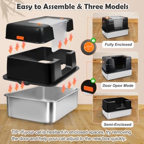 $ 18.88Premium Stainless Steel Cat Litter Box with Lid - Non-Stick Easy-Clean Design