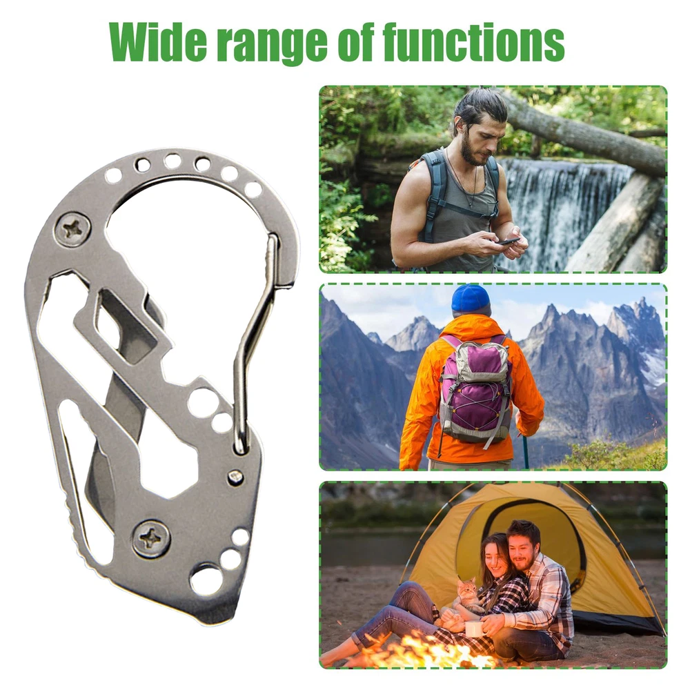 Bullet Points: Multiple Functions: Integrates a variety of practical tools like bottle openers and serrating cutters, alongside screwdrivers and wrenches, making it indispensable for outdoor activities and daily life as a portable keychain Brilliant Design: Experience the unique, multi-eye carabiner design ensuring safety and convenience, featuring a rope fixing point, seamlessly used as a buckle High-Hardness and Wear Resistant: Built with excellent quality and high-hardness 304 stainless steel, this Multi Tool Carabiner provides dependable and long-lasting performance, making it the perfect gear for harsh environments Carried Conveniently: Without taking up space, this multi tool carabiner is small enough to fit in your pocket, offering easy portability and a convenient outdoors must-have. Whether you need it for everyday use or outdoor adventures, take it with you anywhere Effortless Retrieval: Maximise your space and store all your necessary small tools and keys in 1 place, reducing clutter and streamlining efficiency in finding and using your must-haves Our Carabiner Tool is the ideal accessory! It comes with bottle openers, serrating cutters, and can be used as a buckle. Experience good performance with this lightweight and sturdy tool. Put it in your pocket for convenient and easy access to all its features. Specification: Name: Multi Tool Carabiner Material: Stainless steel Product Size: about 88 x 50 x 2.5mm/3.46 x 1.97 x 0.10in Scope of Application: Outdoor, camping, gift box Packing List: 1* Multi Tool Carabiner Notes: 1. Due to the different monitor and light effects, the actual color of the item might be slightly different from the color which is showed in the pictures. 2. Please forgive a slight measuring deviation due to manual measurement.
