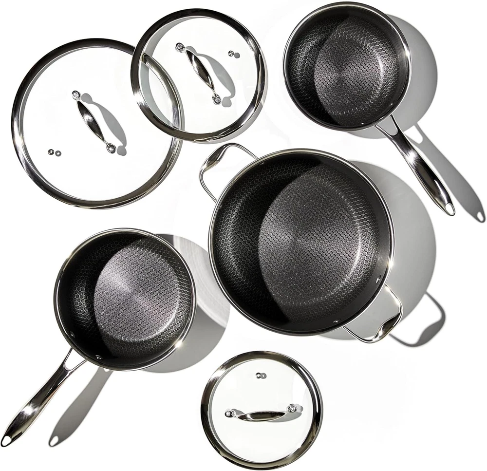 Stainless Steel Nonstick Pot Set with Glass Lids & Silicone Trivets - 8-Piece ‹ › ‹ › ‹ › ‹ › ‹ › ‹ › ‹ › Stainless Steel Nonstick Pot Set with Glass Lids & Silicone Trivets Elevate your culinary experience with our exquisite 8-Piece Pot Set, designed for discerning chefs and home cooks alike. Features: Patented hybrid technology featuring tri-ply construction: aluminum sandwiched between two robust layers of stainless steel. Laser-etched hexagonal nonstick surface offers the searing power of stainless steel, the durability of cast iron, and effortless cleanup. Versatile size options: Includes a 2-Quart pot, a 3-Quart pot, and an expansive 8-Quart pot to meet all your cooking needs. Compatible with all stovetops, including induction—making it perfect for any kitchen setup. Dishwasher-safe and oven-safe up to 500°F (lids are oven-safe up to 400°F), ensuring low maintenance for a busy lifestyle. Set includes two Silicone Trivets (approx. 8 x 7 inches) to protect your countertops and surfaces from heat damage. Lifetime warranty against manufacturer’s defects for your peace of mind. Benefits: Experience the superior cooking capabilities—boiling, braising, steaming, and simmering. Indulge in easy cleanup, allowing you to spend more time enjoying your creations and less time scrubbing. Enjoy the longevity and quality of craftsmanship designed for both everyday cooking and special occasions. Outfit your kitchen with elegant cookware that looks as good on your stovetop as it performs. Why choose our Stainless Steel Nonstick Pot Set? Transform your culinary adventures with a pot set that embodies durability and elegance. Our meticulously engineered Stainless Steel Nonstick Pot Set combines the best of all worlds—functionality, versatility, and style. The trifecta of tri-ply construction, reliable nonstick technology, and thoughtful design ensures that you can tackle any recipe with confidence and ease. Your dream kitchen awaits. Indulge yourself in the art of cooking—order the Stainless Steel Nonstick Pot Set today and revolutionize your culinary journey! Shipping Free & Fast Shipping - We offer free shipping to most of the USA with a normal delivery time of 3-7 days. However, due to the current situation, additional delivery time (up to 3 weeks) may be required for some items. Alternative Carriers - We may use alternative carriers (e.g. USPS, FedEx, UPS, etc.) to ensure your package arrives safely and on time. Due to the use of multiple carriers, we are unable to provide a tracking number automatically. Handling Time - Orders are processed and shipped within 1-2 business days of receiving cleared payment. Shipping Restrictions - Shipping to Alaska, Hawaii, Puerto Rico, Guam, and other US territories may incur shipping charges or delivery restrictions. Please contact us before ordering, or your order can be refunded/cancelled. State Restrictions - There may be restrictions based on your state of purchase. For example, certain items may not be shipped to California due to state regulations. Contact for Tracking Updates - If you require tracking updates or have any concerns about the delivery of your order, please feel free to contact us, and we will be happy to assist you. Return 30-Day Hassle-Free Returns - We want you to be completely satisfied with your purchase. If you are not, you can return the item within 30 days of receiving it for a full refund or exchange. Easy Return Process - To start a return, simply contact us and we will provide you with a prepaid return shipping label and detailed instructions. Restocking Fee - There are no restocking fees for returns. However, the buyer is responsible for return shipping costs if the return is not due to a seller's error. Refund Processing Time - Refunds will be processed within 5 business days of receiving the returned item in its original condition. Payment We accept all major credit cards, PayPal, and Apple Pay for your convenience. Your payment information is secure and encrypted to ensure a safe and seamless transaction. Please complete your payment within 3 days of purchase to avoid any delays in shipping. Feedback Your feedback is extremely important to us. We strive to provide the best products and customer service possible. If you are satisfied with your purchase, please take a moment to leave us a positive review. If you have any concerns or issues with your order, please contact us before leaving negative feedback. We are committed to resolving any problems and ensuring your satisfaction. Contact Us If you have any questions or concerns, please feel free to reach out to our customer support team. You can contact us through the eBay messaging system. We are available Monday to Friday, 9:00 am to 5:00 pm EST, and we will do our best to respond to your inquiry within 24 hours. Thank you for supporting our small family business! UPC: Not Set Unit Quantity: 18.41 lb Stove Type Compatibility: Electric,Gas,Induction,Oven Material: Aluminum,Glass,Silicone,Stainless Steel Features: Dishwasher Safe,Easy to Clean,Non-Stick,Oven-Safe,Scratch-Resistant Set Includes: Lid,2 Quart Pot with Lid,3 Quart Pot with Lid,8 Quart Pot with Lids,Silicone Trivets Type of Oven: Electric,Gas,Induction,Oven Brand: Unbranded Surface Coating: Non-Stick Color: Silver Type: Pot Set Item Diameter: 8 in Item Width: Not Set Item Length: Not Set MPN: Not Set Country/Region of Manufacture: Not Set Manufacturer Warranty: Not Set Shape: Round Item Height: Not Set Number of Items in Set: Six-Piece Item Depth: 8 in Heat Resistance: 500°F Model: Not Set Item Weight: 18.41 lb Unit Type: lb