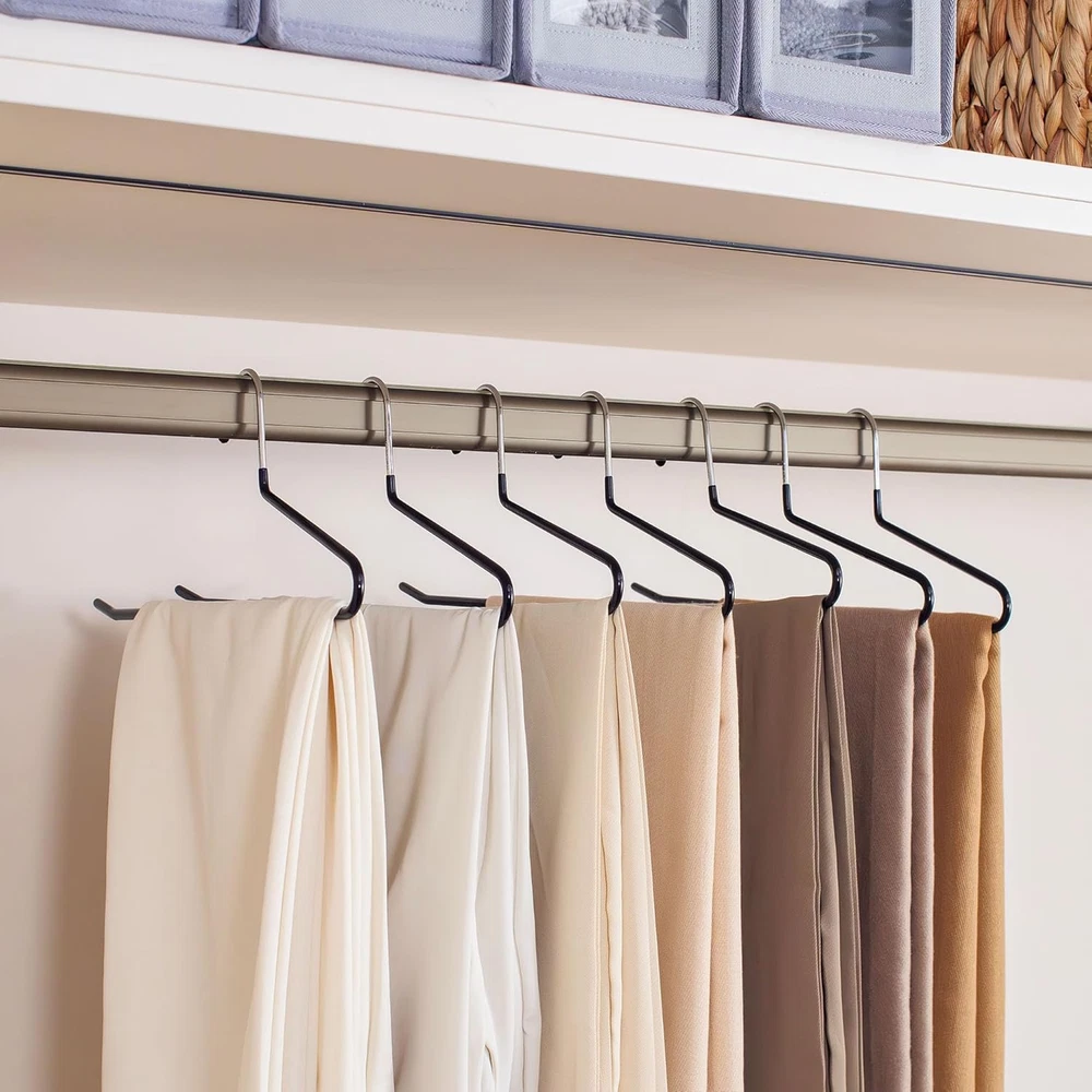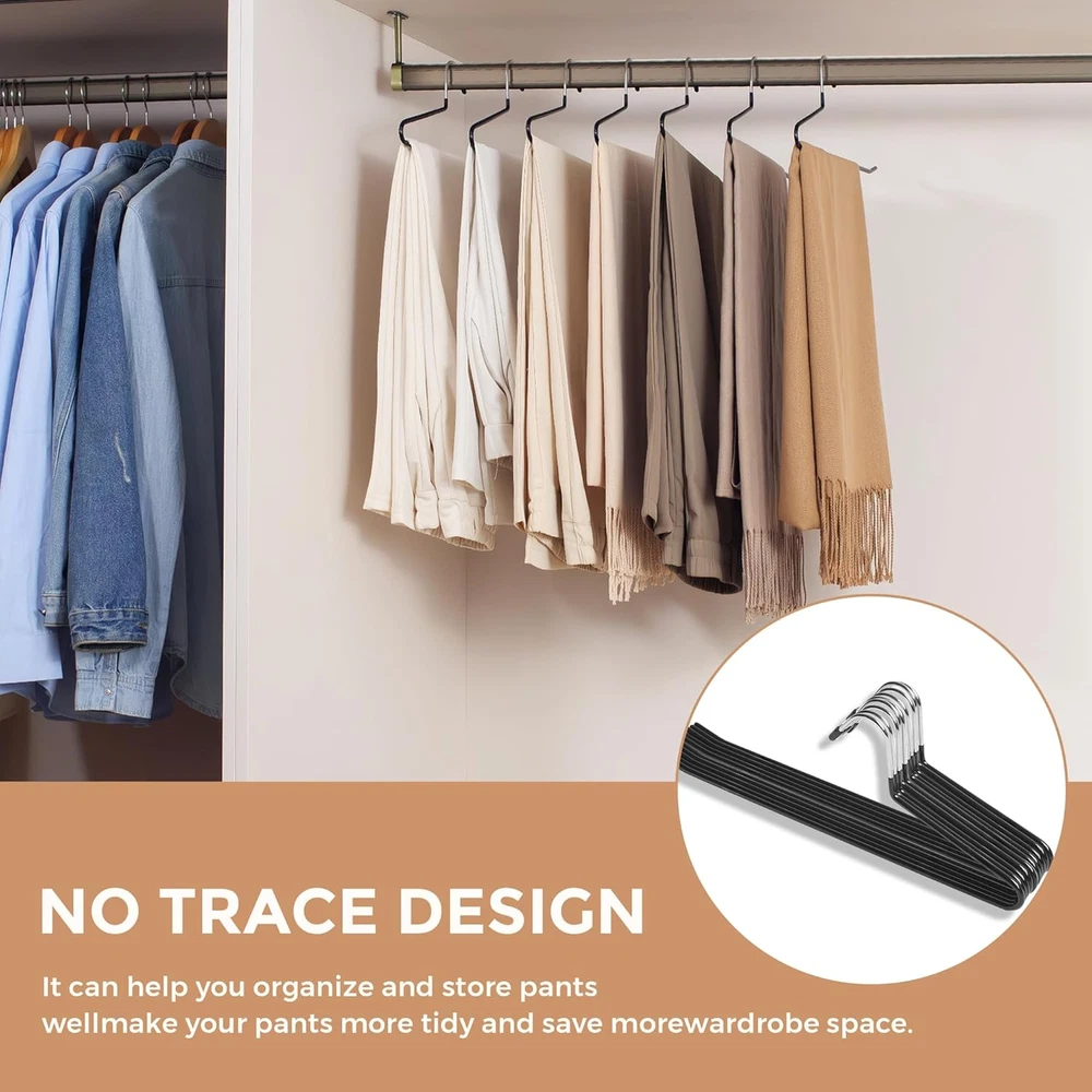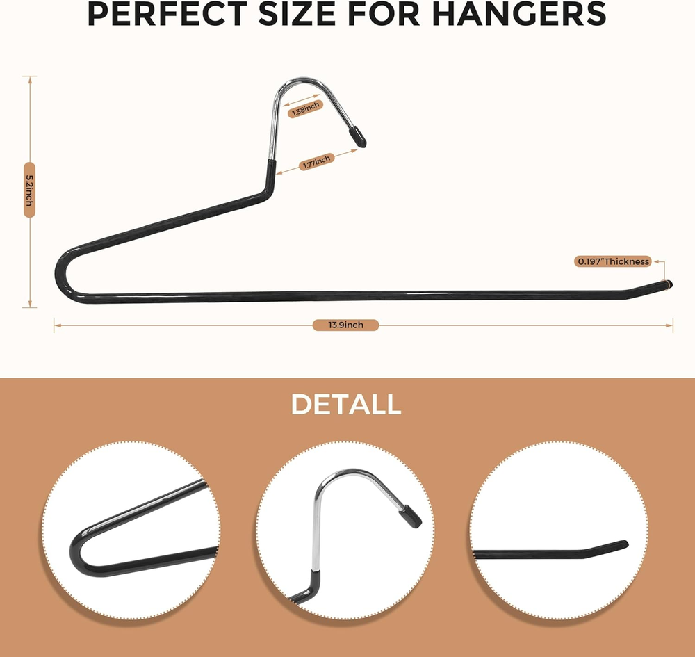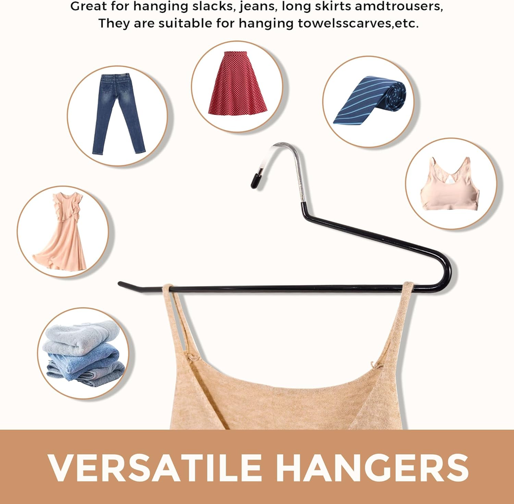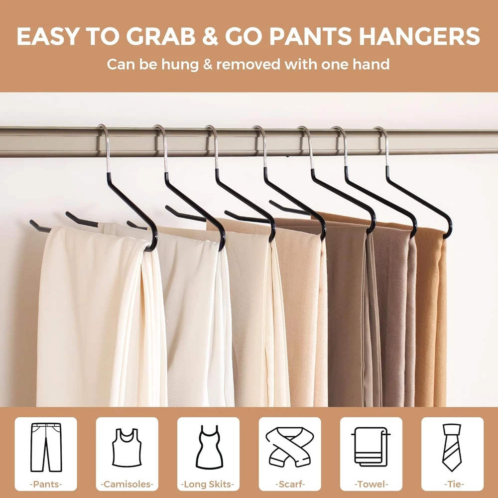 These hangers are a total game-changer for organizing my closet! The sturdy stainless steel holds heavy jeans and pants securely without bending, and the non-slip rubber coating keeps everything in place. Love how space-saving they are—my wardrobe looks so much neater now. The 20-pack is perfect for my whole denim collection, and the sleek black design blends in seamlessly. Definitely worth it for keeping clothes wrinkle-free and tidy!