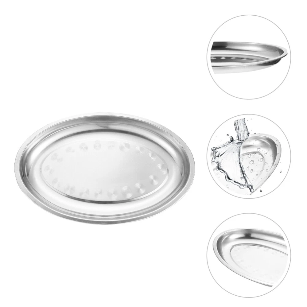 This stainless steel oval pan serving platter is a must-have for any stylish kitchen! Perfect for serving meals, appetizers, or desserts, its sleek design adds elegance to any table setting. Durable, easy to clean, and versatile—great for both everyday use and special occasions. A fantastic buy for the price!
