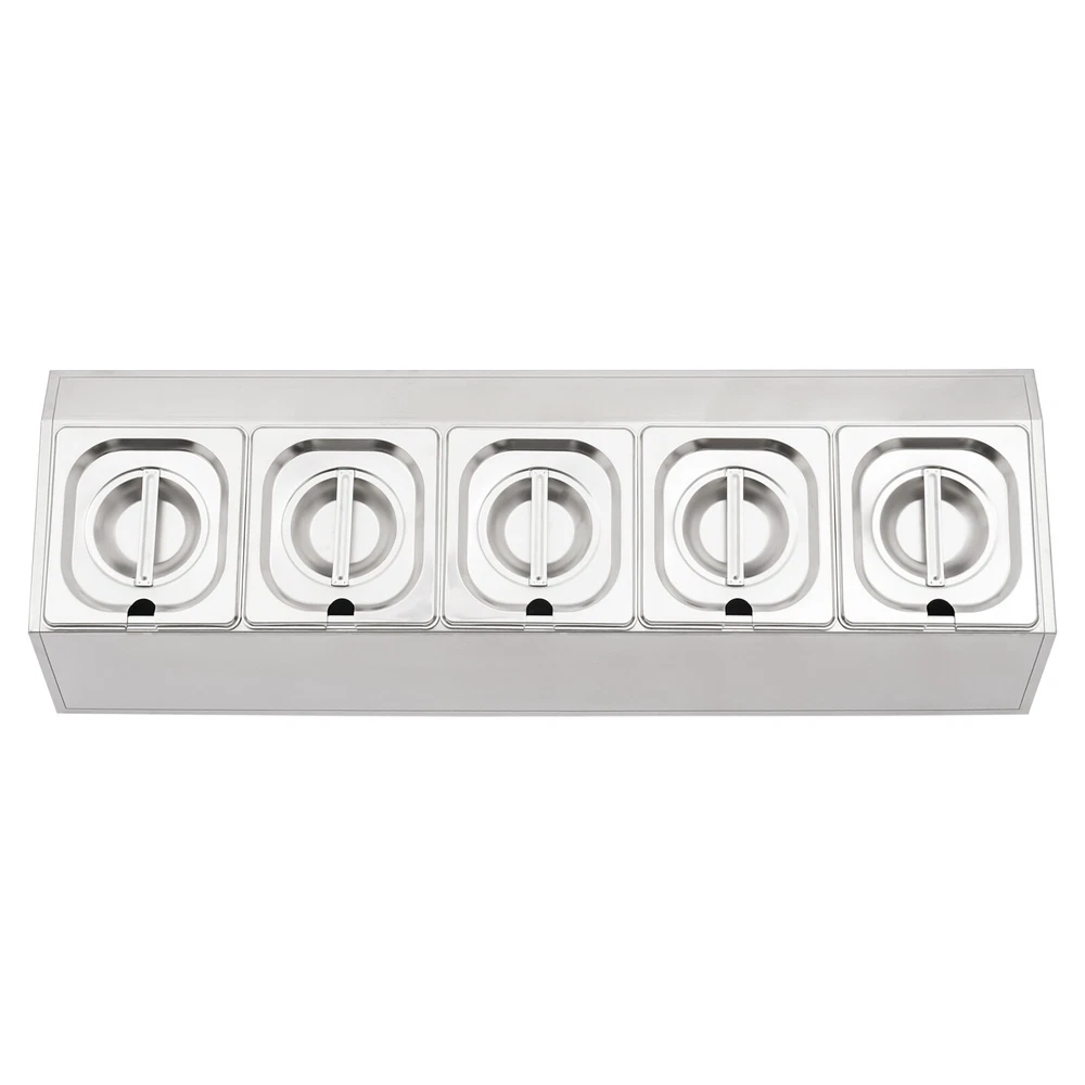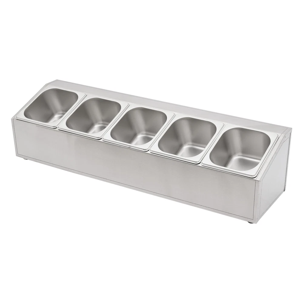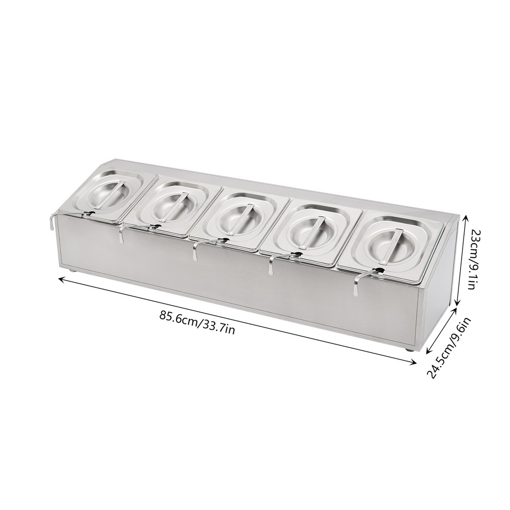 Spice Rack 5 Pans Stainless Steel Shelf Kitchens Seasoning Organizer Holder Description If your store is missing a practical and aesthetically pleasing spice rack shelf to help you organize and display your spices, then you can't miss this spice rack s helf . Made of high-quality stainless steel, this product has a large storage capacity that can hold up to 5 food trays. It will surely be your reliable kitchen helper to keep your countertops organized and your space tidy. Key Features Good Material: Premium stainless steel as well as the exquisite polishing process, make this product bright, wear-resistant , high-temperature resistant , safe to use, and less prone to rust and deformation, ensuring a long service life. Humanized Design: This product adopts the inclined design, which is clearer in sight and more convenient for picking up and placing items. In addition, the 5 pans are placed separately to effectively avoid cross flavors. Large Storage Capacity: This set contains 5 food pans, each with a capacity of about 0.9Qt, providing enough space for you to categorize your ingredients and seasonings. Good Stability: High-quality material and trapezoidal design make it have good stability, so you don't have to worry about shaking and tipping when you use it. Easy to Clean: The simple structure and smooth surface that does not easily adhere to stains, and detachable pans allow you to easily clean with water, a soft towel, and a dishwasher. Simple Installation: This product has a simple structure and complete accessories, you only need a few simple steps to install, which saves time and labor. Protective Packaging: The pearl cotton can better protect your product during transportation and make it delivered to you completely to the greatest extent. Good Customer Service: We stand behind all our guests and look forward to assisting you with your purchase. It is our pleasure to answer your confusion and questions. The end of the story between us is not "we sell and you buy". Details Convenient Spoons: All 5 spoons have hanging holes and curved handles for easy scooping of seasonings and storage to dry. Practical Lid: The lid prevents dust from getting into the pan and the handle on the top allows you to open and close it easily. Meanwhile, the seam fits the spoon very well, making it easy for you to place the spoon in the pan. Smooth Edge: The rounded and smooth edges not only add to the aesthetics of the product but also improve the safety of use. Application This product is suitable for organizing various ingredients and materials, including but not limited to seasonings, spices, sauces, jams, sweet soups, coffee beans, fruits, and vegetables. It can be widely used in homes, kitchens, restaurants, fruit stores, pantries, cafes, beverage stores, eateries, and more. Specification Color: Silver Style: Modern Shape: Trapezoidal Material: Stainless Steel Process: Polishing Assembly Required: Yes Is Dishwasher Safe: Yes Mounting Type: Freestanding Number of Pans: 5 Number of Spoons: 5 Each Pan Capacity: 0.85L/ 0.9Qt Gross Weight: 3.7kg/ 8.16 lbs Net Weight: 2.9kg/ 6.39 lbs Package Size: 86*24.5*22 cm/ 33.86*9.65*8.66 in Product Size: 85.6*24.5*23 cm/ 33.7*9.6*9.1 in Package Included 1* Spice Rack Shelf 5* Pans 5* Lids 5* Spoons Notes Please allow the slight color difference caused by the shooting light and the 1-3 cm error due to manual measurement, and make sure you do not mind before ordering. Payment Delivery details Terms of sales About us Contact us Payment We accept ebay payment 。 Fees such as import duties, taxes are not included in the item price or shipping costs. These charges are the buyer's responsibility. Delivery details Shipping: 2-9 working days to: USA Terms of sales We maintain high standards of excellence and strive for hundred percent customer satisfaction. Feedback is very important to us. We hope that you contact us immediately before you give neutral or negative feedback, so that we can address your concerns. It is impossible to address issues if we do not know about them! About us Your satis faction is our ultimate goal. We work hard to earn your trust and future business. Our certified technicians have tested each item before shipping. The unit comes with 1 year limited warranty on all manufacturing defects. a) If you receive a defective item, you may return it or ask for a discount. Please contact us within 14 days after you receive the package. b) What you returned must be intact and in its original packaging as re? u. Customer is responsible for shipping costs of the returned item. c) We will cover the cost of shipping back t with the shipping rate indicated in the registration page. We will send you a new unit or refund the full payment you paid. Thank you. Contact us Business Hour Business Hour: Monday To Friday: 8:30 AM to 5:00 PM (Beijing China time) Due to time zones, our reply to your questions may not be immediately. But within above working time, we will reply your email within 24 hours. If it's non-workdays, please kindly be patient and wait till Monday. Please contact us with ebay message. Please feel free to contact us if you have any questions. Monday To Friday: 8:30 AM to 5:00 PM (Beijing China time) Due to time zones, our reply to your questions may not be immediately. But within above working time, we will reply your email within 24 hours. If it's non-workdays, please kindly be patient and wait till Monday. Please contact us with ebay message. Please feel free to contact us if you have any questions.