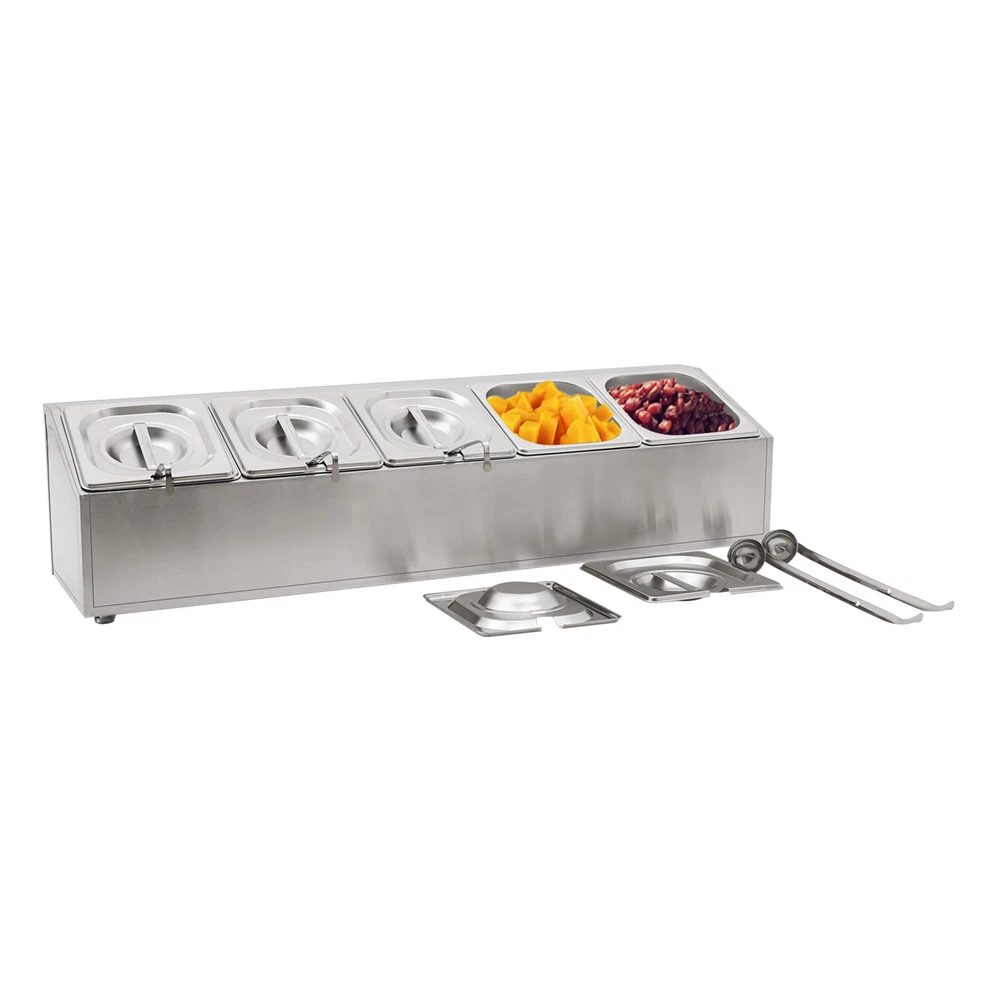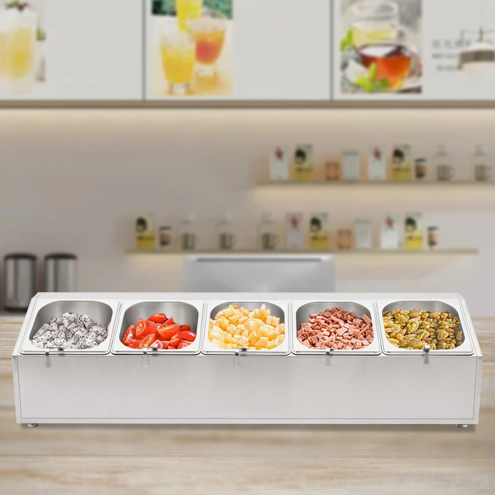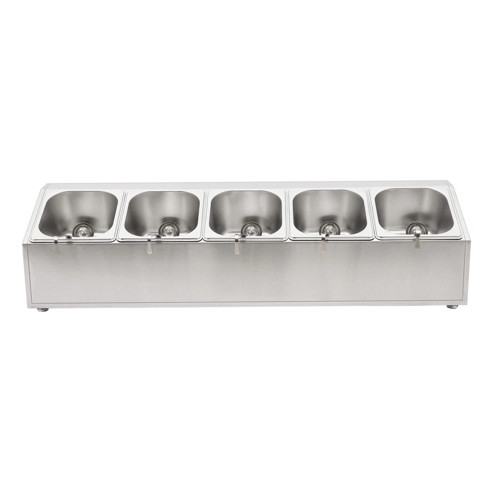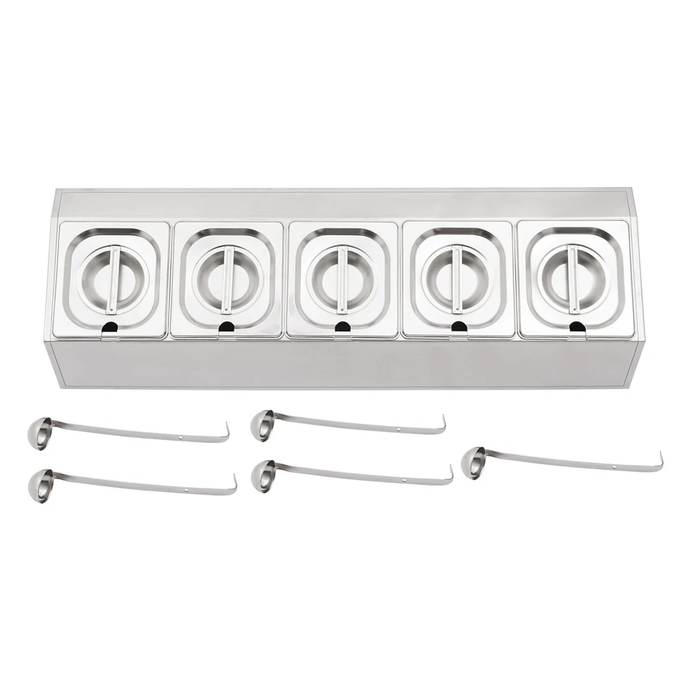 Spice Rack 5 Pans Stainless Steel Shelf Kitchens Seasoning Organizer Holder Description If your store is missing a practical and aesthetically pleasing spice rack shelf to help you organize and display your spices, then you can't miss this spice rack s helf . Made of high-quality stainless steel, this product has a large storage capacity that can hold up to 5 food trays. It will surely be your reliable kitchen helper to keep your countertops organized and your space tidy. Key Features Good Material: Premium stainless steel as well as the exquisite polishing process, make this product bright, wear-resistant , high-temperature resistant , safe to use, and less prone to rust and deformation, ensuring a long service life. Humanized Design: This product adopts the inclined design, which is clearer in sight and more convenient for picking up and placing items. In addition, the 5 pans are placed separately to effectively avoid cross flavors. Large Storage Capacity: This set contains 5 food pans, each with a capacity of about 0.9Qt, providing enough space for you to categorize your ingredients and seasonings. Good Stability: High-quality material and trapezoidal design make it have good stability, so you don't have to worry about shaking and tipping when you use it. Easy to Clean: The simple structure and smooth surface that does not easily adhere to stains, and detachable pans allow you to easily clean with water, a soft towel, and a dishwasher. Simple Installation: This product has a simple structure and complete accessories, you only need a few simple steps to install, which saves time and labor. Protective Packaging: The pearl cotton can better protect your product during transportation and make it delivered to you completely to the greatest extent. Good Customer Service: We stand behind all our guests and look forward to assisting you with your purchase. It is our pleasure to answer your confusion and questions. The end of the story between us is not "we sell and you buy". Details Convenient Spoons: All 5 spoons have hanging holes and curved handles for easy scooping of seasonings and storage to dry. Practical Lid: The lid prevents dust from getting into the pan and the handle on the top allows you to open and close it easily. Meanwhile, the seam fits the spoon very well, making it easy for you to place the spoon in the pan. Smooth Edge: The rounded and smooth edges not only add to the aesthetics of the product but also improve the safety of use. Application This product is suitable for organizing various ingredients and materials, including but not limited to seasonings, spices, sauces, jams, sweet soups, coffee beans, fruits, and vegetables. It can be widely used in homes, kitchens, restaurants, fruit stores, pantries, cafes, beverage stores, eateries, and more. Specification Color: Silver Style: Modern Shape: Trapezoidal Material: Stainless Steel Process: Polishing Assembly Required: Yes Is Dishwasher Safe: Yes Mounting Type: Freestanding Number of Pans: 5 Number of Spoons: 5 Each Pan Capacity: 0.85L/ 0.9Qt Gross Weight: 3.7kg/ 8.16 lbs Net Weight: 2.9kg/ 6.39 lbs Package Size: 86*24.5*22 cm/ 33.86*9.65*8.66 in Product Size: 85.6*24.5*23 cm/ 33.7*9.6*9.1 in Package Included 1* Spice Rack Shelf 5* Pans 5* Lids 5* Spoons Notes Please allow the slight color difference caused by the shooting light and the 1-3 cm error due to manual measurement, and make sure you do not mind before ordering. Payment Delivery details Terms of sales About us Contact us Payment We accept ebay payment 。 Fees such as import duties, taxes are not included in the item price or shipping costs. These charges are the buyer's responsibility. Delivery details Shipping: 2-9 working days to: USA Terms of sales We maintain high standards of excellence and strive for hundred percent customer satisfaction. Feedback is very important to us. We hope that you contact us immediately before you give neutral or negative feedback, so that we can address your concerns. It is impossible to address issues if we do not know about them! About us Your satis faction is our ultimate goal. We work hard to earn your trust and future business. Our certified technicians have tested each item before shipping. The unit comes with 1 year limited warranty on all manufacturing defects. a) If you receive a defective item, you may return it or ask for a discount. Please contact us within 14 days after you receive the package. b) What you returned must be intact and in its original packaging as re? u. Customer is responsible for shipping costs of the returned item. c) We will cover the cost of shipping back t with the shipping rate indicated in the registration page. We will send you a new unit or refund the full payment you paid. Thank you. Contact us Business Hour Business Hour: Monday To Friday: 8:30 AM to 5:00 PM (Beijing China time) Due to time zones, our reply to your questions may not be immediately. But within above working time, we will reply your email within 24 hours. If it's non-workdays, please kindly be patient and wait till Monday. Please contact us with ebay message. Please feel free to contact us if you have any questions. Monday To Friday: 8:30 AM to 5:00 PM (Beijing China time) Due to time zones, our reply to your questions may not be immediately. But within above working time, we will reply your email within 24 hours. If it's non-workdays, please kindly be patient and wait till Monday. Please contact us with ebay message. Please feel free to contact us if you have any questions.