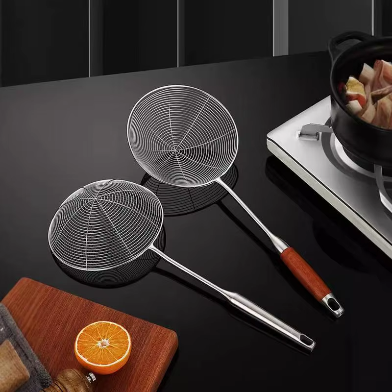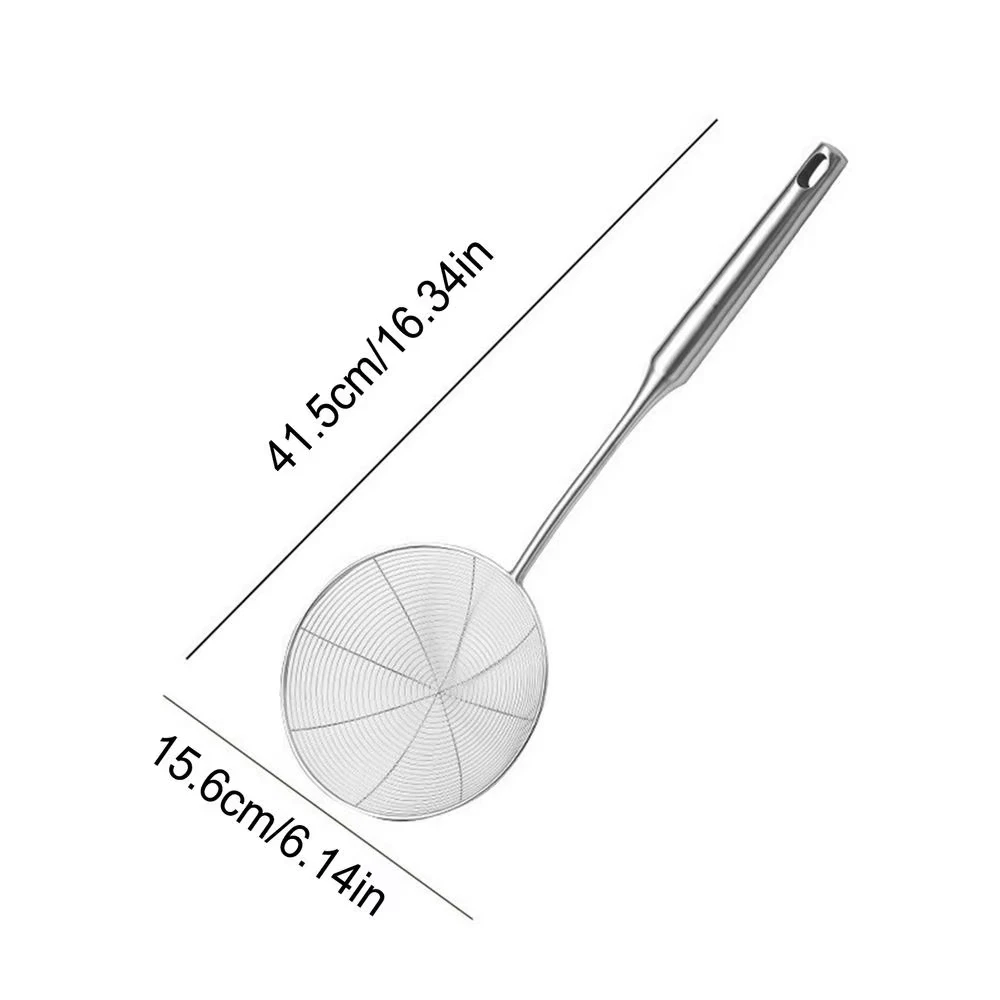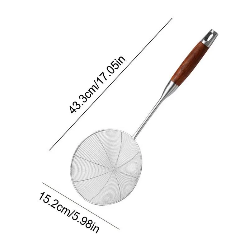 Bullet Points: 1.Great Handle Comfort: The ergonomic handle design of our Spider Strainer allows for a comfortable grip, even during extended use. Enjoy easy cooking with no hand fatigue 2.Dependable Material: Crafted with excellent stainless steel materials, this Spider Strainer provides dependable and sturdy use for your kitchen needs, making it perfect for long-term use 3.Convenient to Suspend: Equipped with a practical suspending ring, the Spider Strainer can be easily hung on the wall for space-saving storage and quick accessibility. Say goodbye to cluttered kitchen drawers 4.Simple Cleaning: With its simple design, this Spider Strainer is very easy to maintain. Hand-wash it with warm water and neutral detergent, or effortlessly put it in the dishwasher for easy cleaning 5.Broad Use: This Spider Strainer with floating foam is perfect for straining noodles, juice, and coarse grains. Its versatility makes it a must-have tool for any kitchen Our Wire Mesh Spider Strainer is a must-have addition to your kitchen gadgets! Designed with a comfortable grip and practical suspending ring, it's suitable for long-term use. Easy to clean and perfect for straining coarse grains. Improve your cooking experience with this practical tool! Specification: Product material: Wood + stainless steel Product weight: Wood: 200g All steel: 180g Product size: Wood: about 43.3x15.2cm/17.05x5.98 inches All steel: about 41.5x15.6cm/16.34x6.14 inches Product List: 1 * Spider Strainer Notes: Due to different lighting and screen settings, the product color may be slightly different from the picture. Due to the difference in manual measurement, please allow a 1-3cm difference in size.