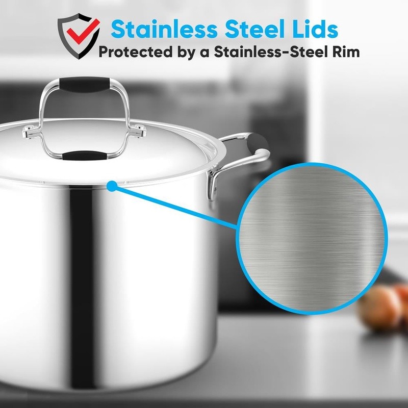 You may also like Lightweight 7 Piece Non-Stick Cookware Set Dishwasher Safe Easy Clean Aluminum 26.42 USD 27.81 USD Free shipping 5% off 15-Piece Non Stick Cookware Set Colorful Heat Resistant Lacquer Dishwasher Safe 126.62 USD 133.28 USD Free shipping 5% off Ceramic Non-Stick Frypan Set Eco-Friendly Cookware 8 10.5 Inch Thermo-Spot New 39.02 USD 41.07 USD Free shipping 5% off Lightweight 7 Piece Non-Stick Aluminum Cookware Set Green Sage Dishwasher Safe 26.42 USD 27.81 USD Free shipping 5% off See-Through Tempered Glass Lids, Protected by a Stainless Steel Rim, Oven Safe, Sturdy and Durable, Fits 9. 45'' -inches Pot, Dishwasher Safe, Stain-Resistant & Easy-to-Clean, Dutch Oven Pot Lid, Max Temperature: 500° Fahrenheit (260° Celsius), Construction Material: Tempered Glass, Cooking Pot Lid Size (L x W x H): 6. 3’’ x 6. 3’’ x 3. 15’’ - inches, Weight: 1. 21 lbs. WORKS WITH MODEL NCSSS12: This Nutrichef Lid for Stockpot works with NCSSS12 Cookware Set that comes in 12-piece pots and pans including sauté pan, saucepan, stockpot, steamer insert, frying pans, lids. SUPERIOR QUALITY. Made of high-quality SUS304 stainless steel (18/10 stainless steel) construction material with a stainless-steel rim. It can handle a maximum temperature of 350° Fahrenheit (177° Celsius) ERGONOMIC HANDLE: Features ergonomic stainless-steel handles for comfortable handling & cooking. Offers a stylish & modern design adding an elegant touch that complements your existing cookware's. DISHWASHER SAFE: This sturdy and durable replacement lid is stain-resistant & super easy to clean. Just rinse under water or run through the dishwasher. FITS 9. 5'' POT: This stainless-steel lid fits pots with a 9. 5''-inches inner size including the 3. 4 qt sauté pan, steamer insert, and 8 qt stockpot. It effectively distributes & retains heat for fast and even cooking all around. You may also like 28pc Ratchet Socket Wrench Set 1/4 Drive 12 Metric Sockets 14 Bit Wear Resistant 30.9 USD 32.53 USD Free shipping 5% off Adjustable 4-Tier Rolling Snack Cart Metal Storage Utility Kitchen Organizer New 60.85 USD 64.05 USD Free shipping 5% off Cordless Electric Spin Scrubber 400RPM Dual Speed 8 Brush Heads Home Cleaning US 76.55 USD 80.58 USD Free shipping 5% off Spiced Blackberry High Quality Soy Wax Candle Indoor Unique Crackle Aroma 600g 44.88 USD 47.24 USD Free shipping 5% off 9ft Outdoor Patio Umbrella Market Shade UV Resistant Crank Tilt Aluminum Frame 80.97 USD 85.23 USD Free shipping 5% off Shiatsu Foot Massager W/ Heat Deep Kneading Relaxing Massage Portable Vibrating 33.24 USD 34.99 USD Free shipping 5% off Magnetic Spice Storage Rack Black Fridge Organizers Metal 4 Pack for Kitchen 24.92 USD 26.23 USD Free shipping 5% off 4 Pack Exotic Spice Blend Liquid Marinade Gluten Free No Trans Fat 16 Fl Oz New 22.2 USD 23.37 USD Free shipping 5% off 3-in-1 EMF Meter Detector RF EF MF Magnetic Field Reader Radiation Tester New 54.46 USD 57.33 USD Free shipping 5% off 6 Person Instant Cabin Tent Easy Setup Dark Rest Technology Skylights Gear Loft 146.66 USD 154.38 USD Free shipping 5% off Wet Cat Food Salmon Brown Rice Vitamin A Taurine High Protein 3 Oz Cans 24 Pack 47.31 USD 49.8 USD Free shipping 5% off 12 Pcs Stoneware Dinnerware Set Dinner Plates Salad Plates Bowls Durable Brown 34.91 USD 36.75 USD Free shipping 5% off