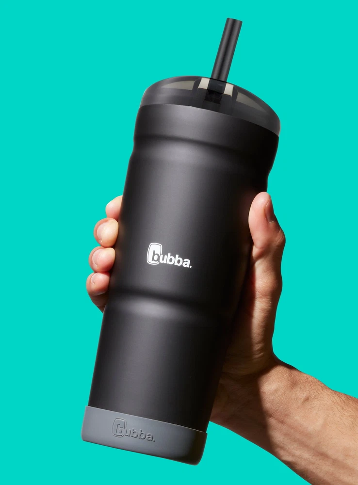 Whether you're hanging out poolside or at the tailgate, Stainless Steel Tumblers with an easy-to-use bumper make it perfect for any occasion. Simply place the removable bumper on the bottom for a skid-proof grip and a fun pop of color. Rubberized finishes add a matte effect to make the bottle look and feel soft to the touch. The 24-oz. portable size makes it a great fit for most cup holders so you can take it with you throughout the day. Vacuum-insulated stainless steel keeps your drinks cold for 18 hours and hot for 6 hours so you have more time to enjoy the moment. BPA-free, the lid, straw, and bumper are top-rack dishwasher-safe and the body is hand wash only for easy cleaning. Memories are made every day and bubba is always ready for whatever fun may come your way. REMOVABLE BUMPER: Adds a pop of color and a skid-proof bottom PORTABLE: Fits most cup holders, making it easier to take with you throughout the day FOR THE LONG HAUL: Vacuum-insulated stainless steel keeps drinks cold up to 18 hours or hot up to 6 hours, without sweating DRINK UP: Easy-to-clean lid can be used with or without plastic straw KEEP IT CLEAN: BPA-free; lid, straw, and bumper are top-rack dishwasher-safe, body is hand wash only